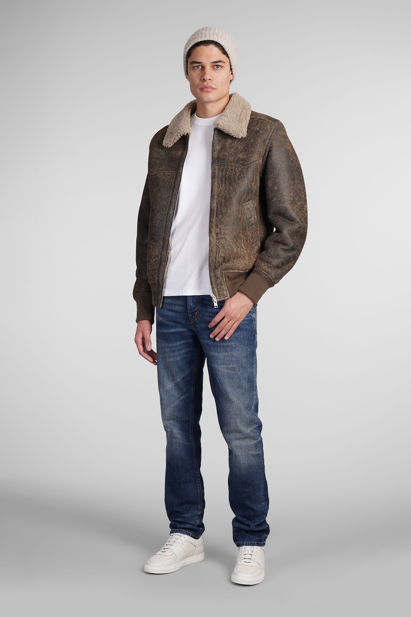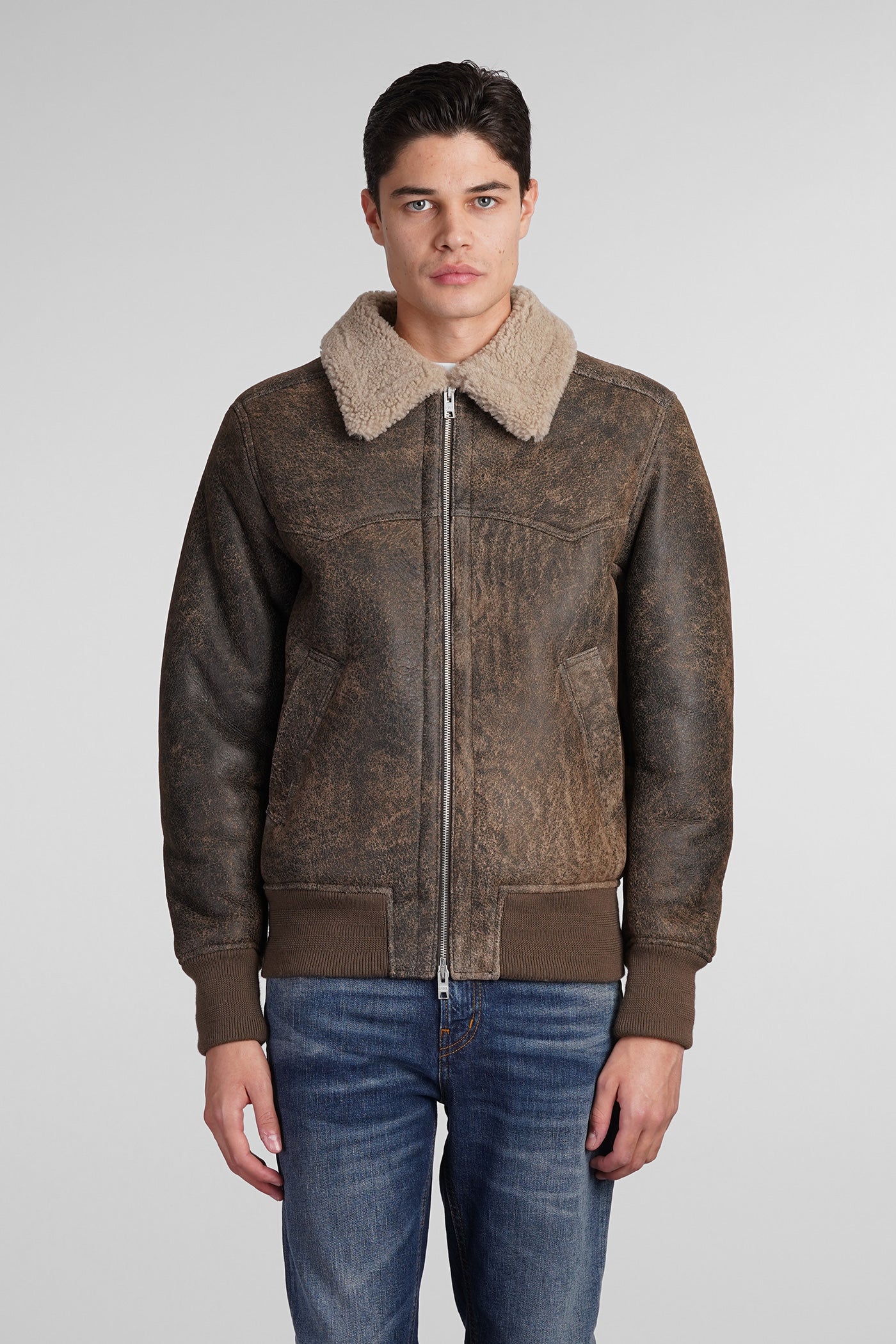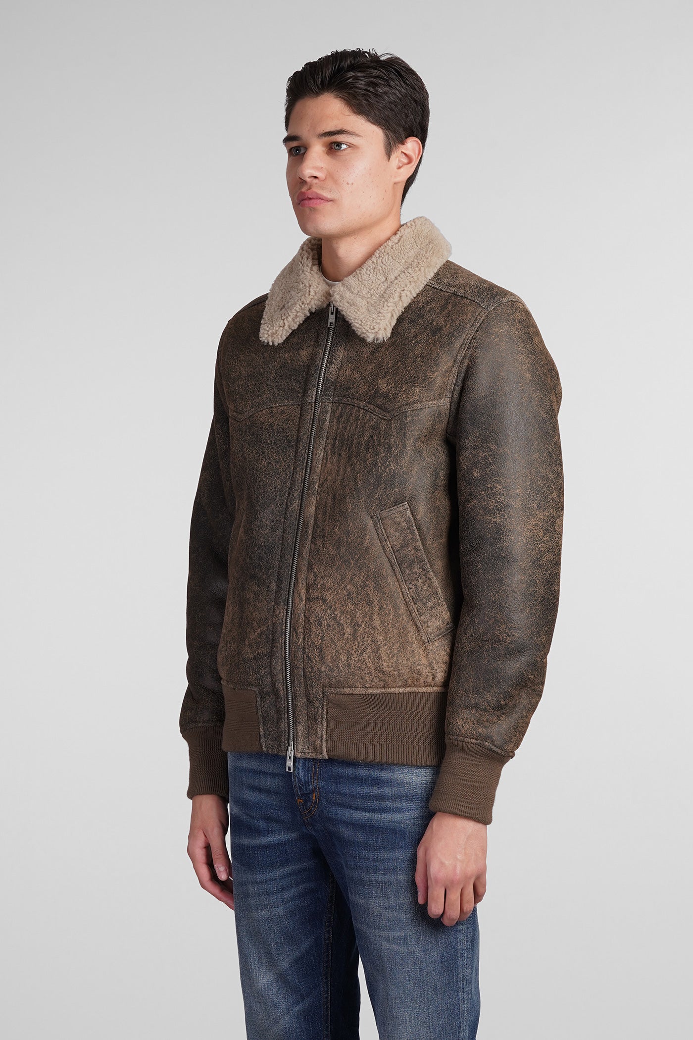 Shearling in brown leather