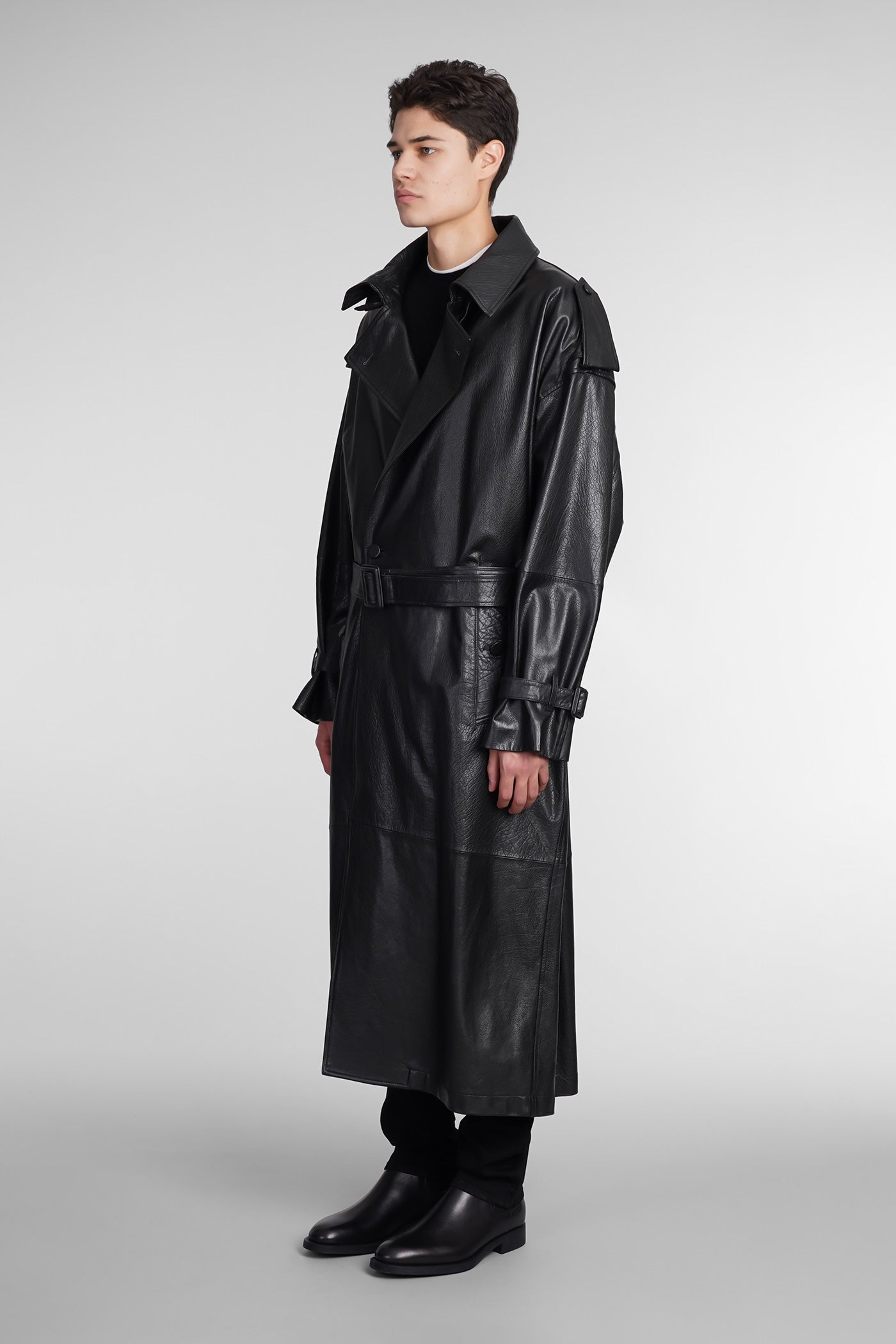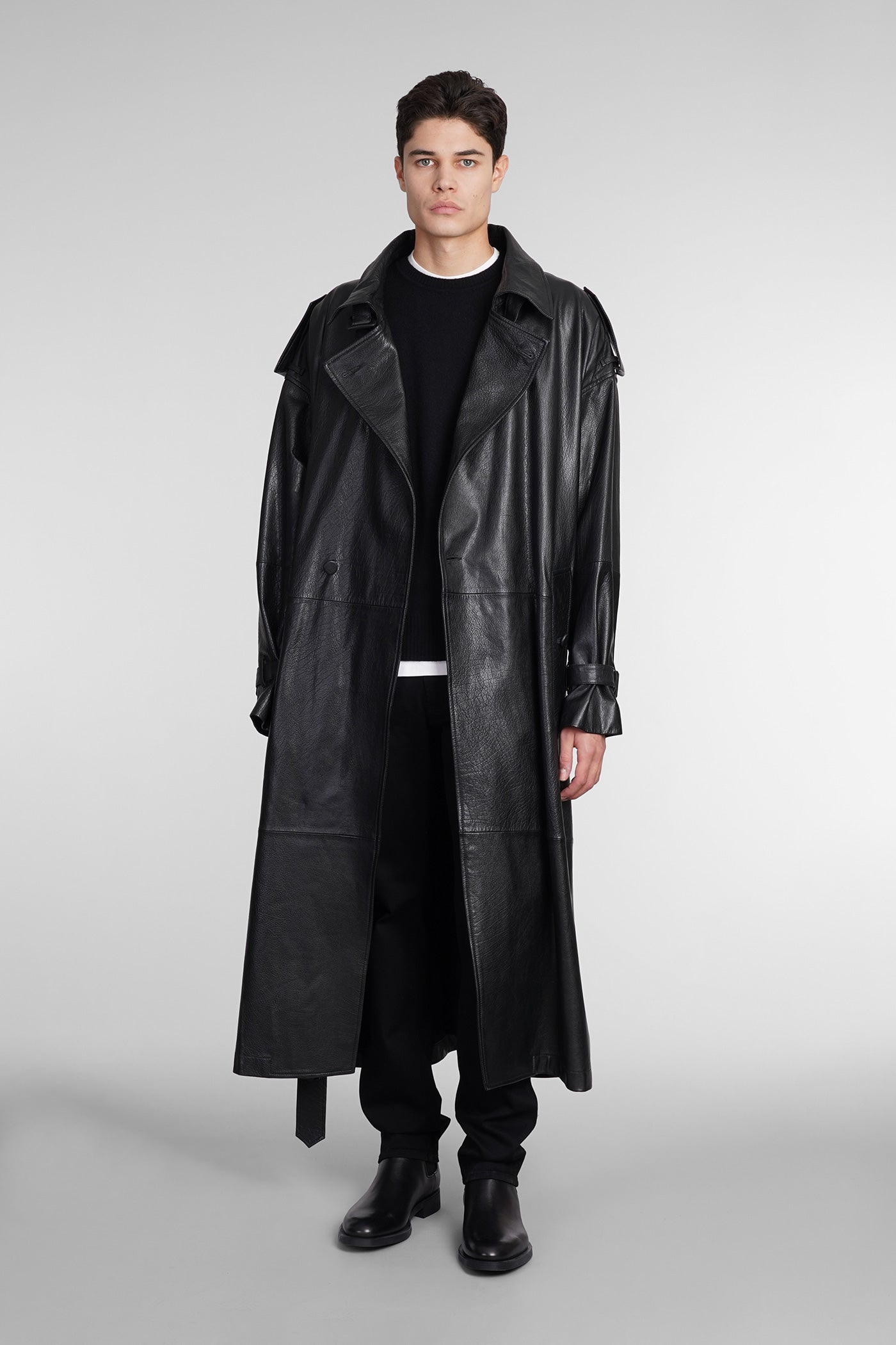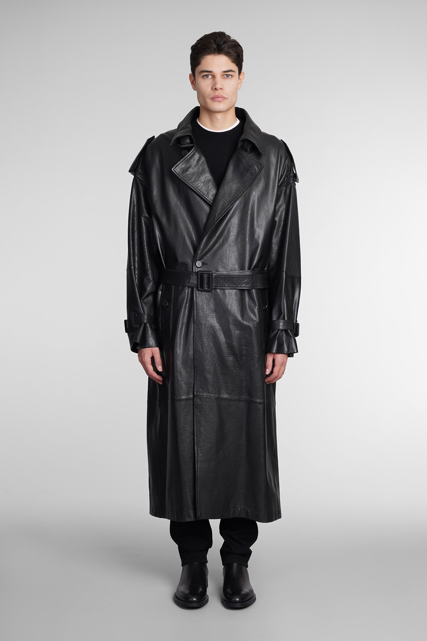 Coat in black leather