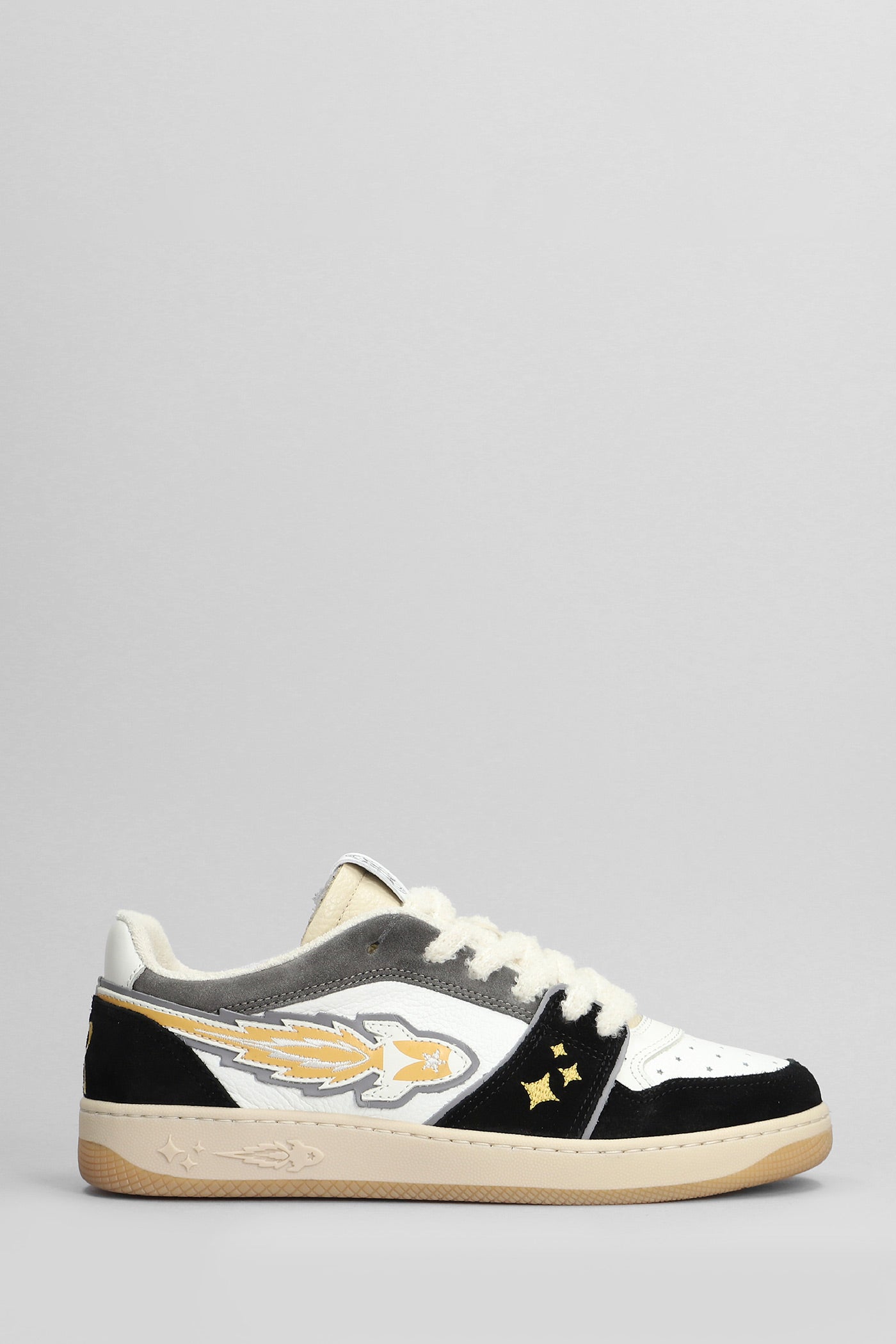 Egg Rocket Sneakers in black suede and leather