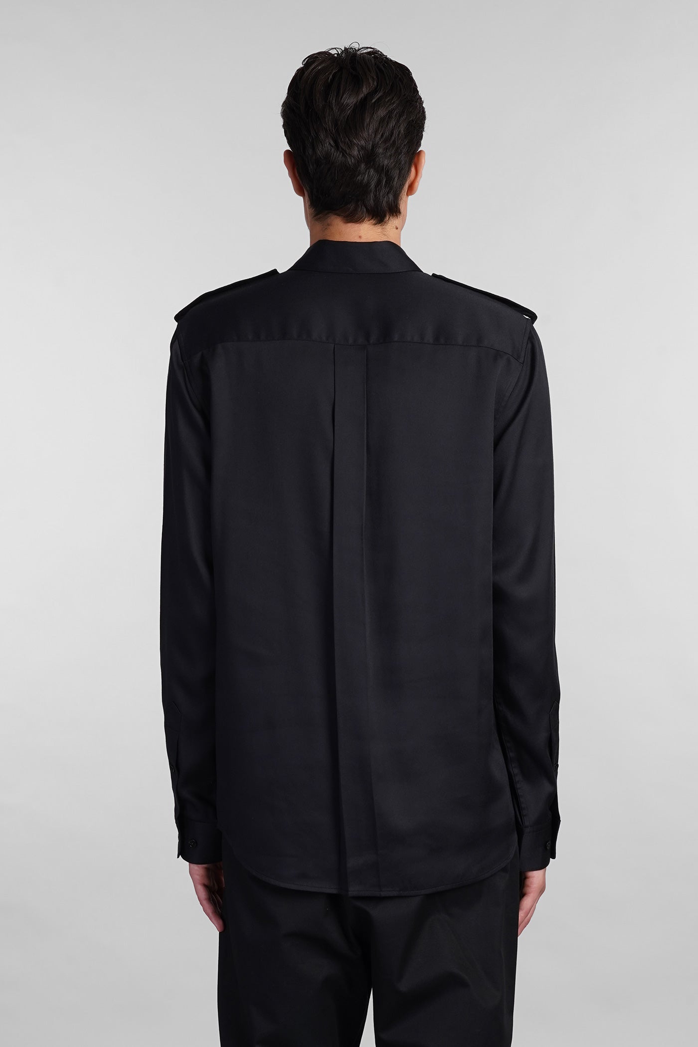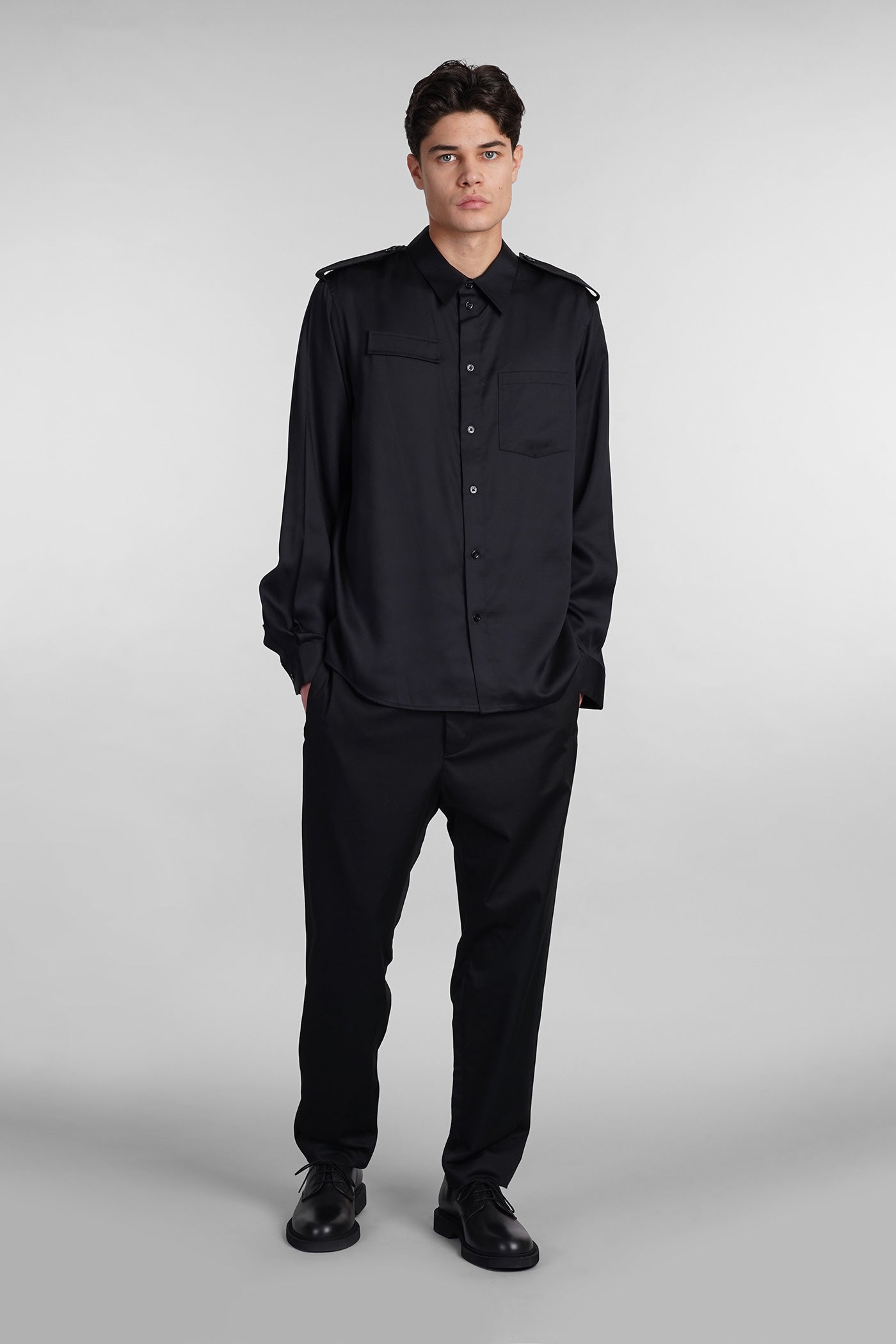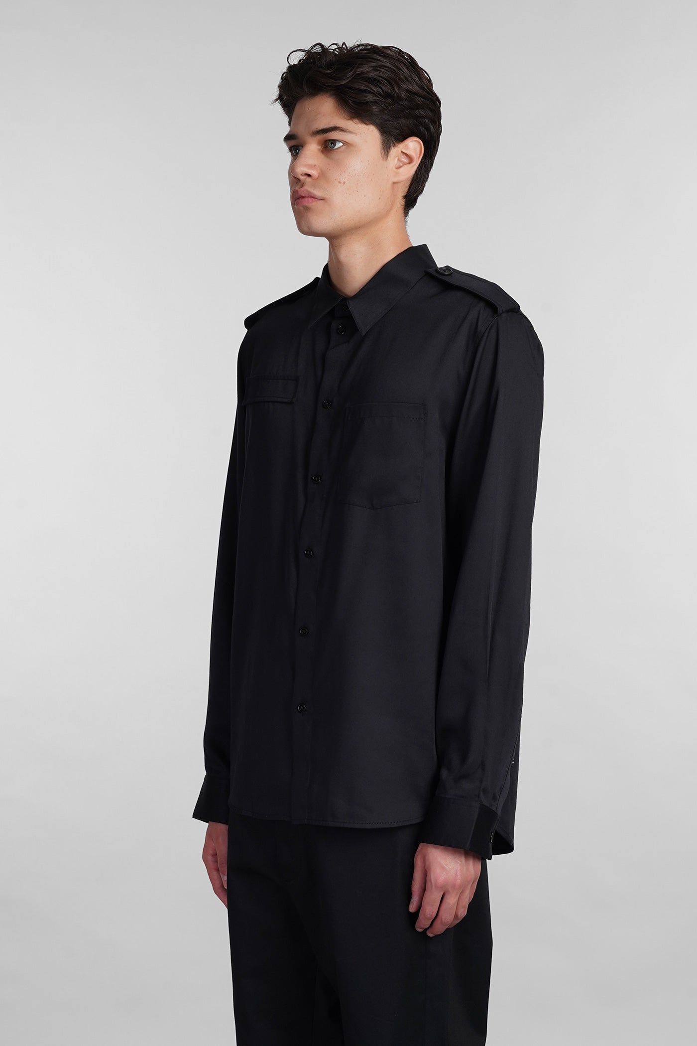 Shirt in black wool and polyester