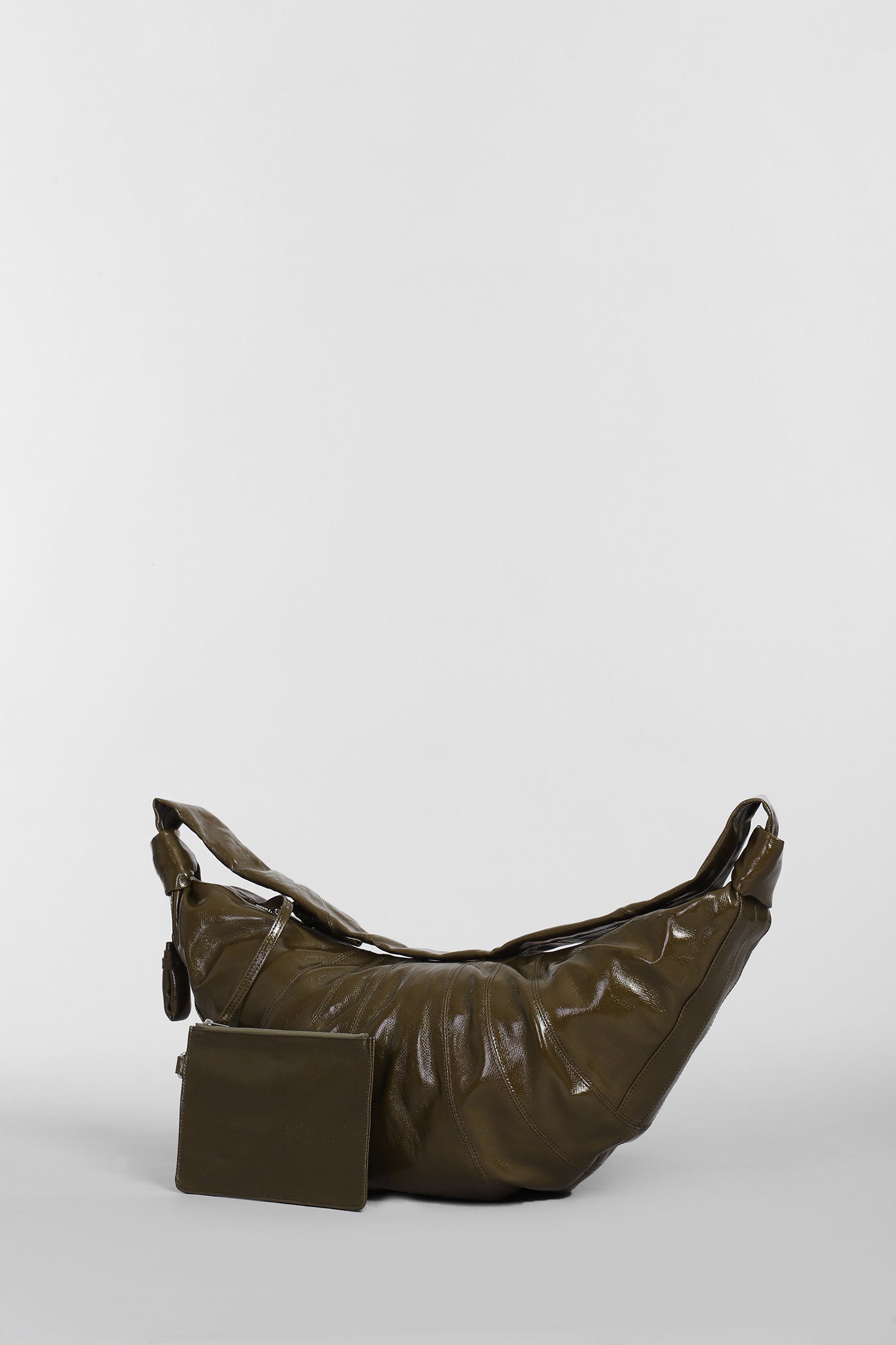 Large croissant Shoulder bag in green cotton