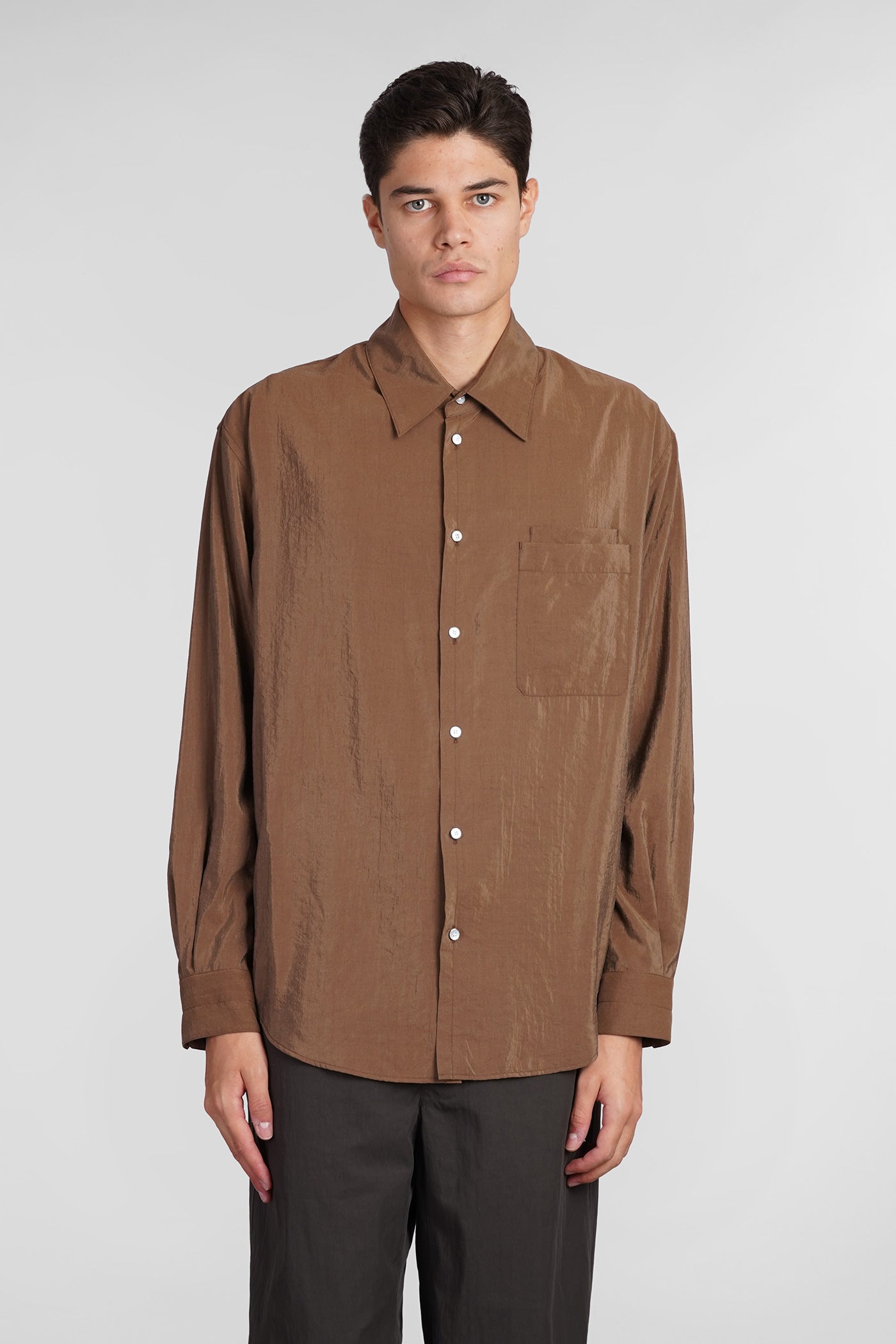Shirt in brown silk