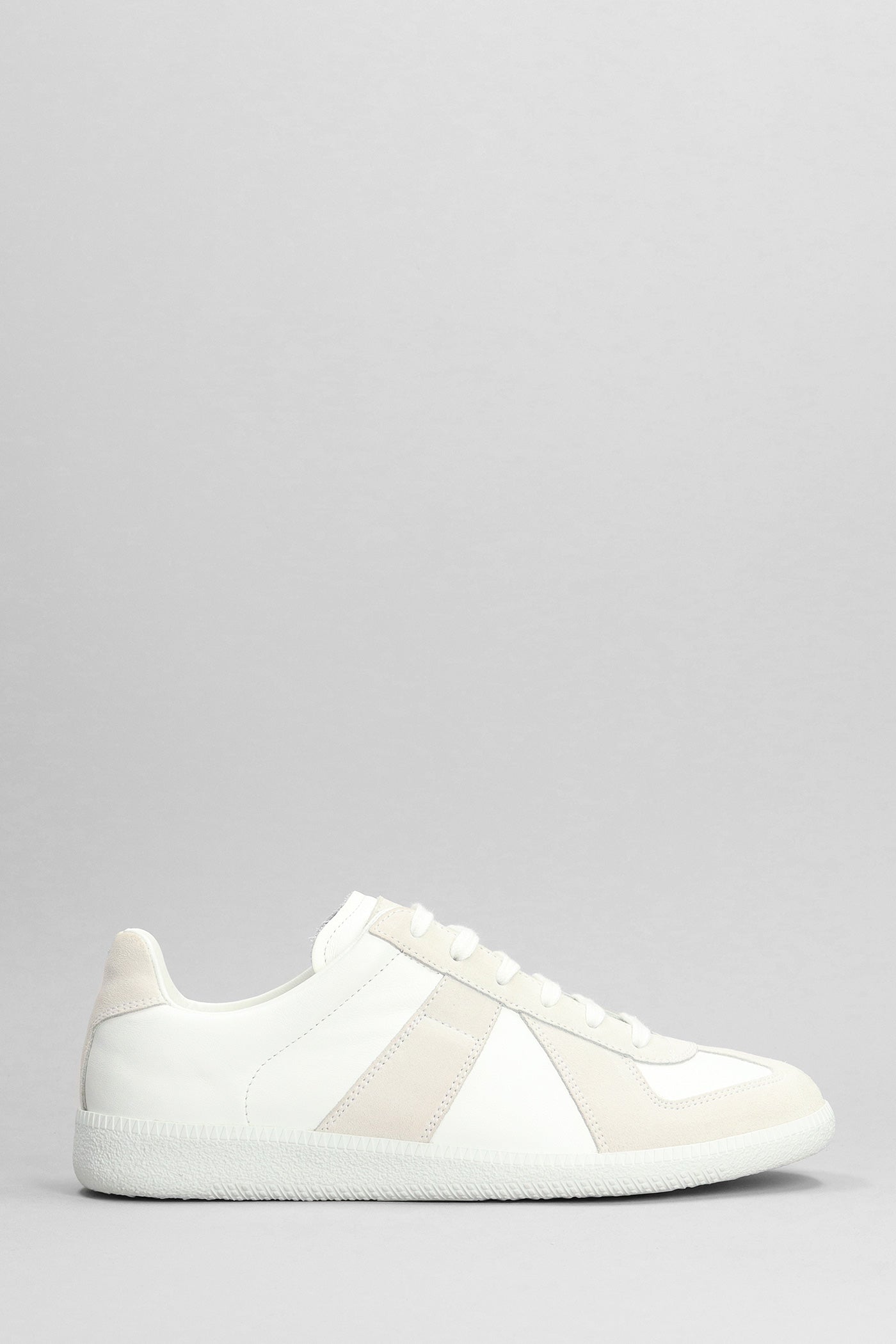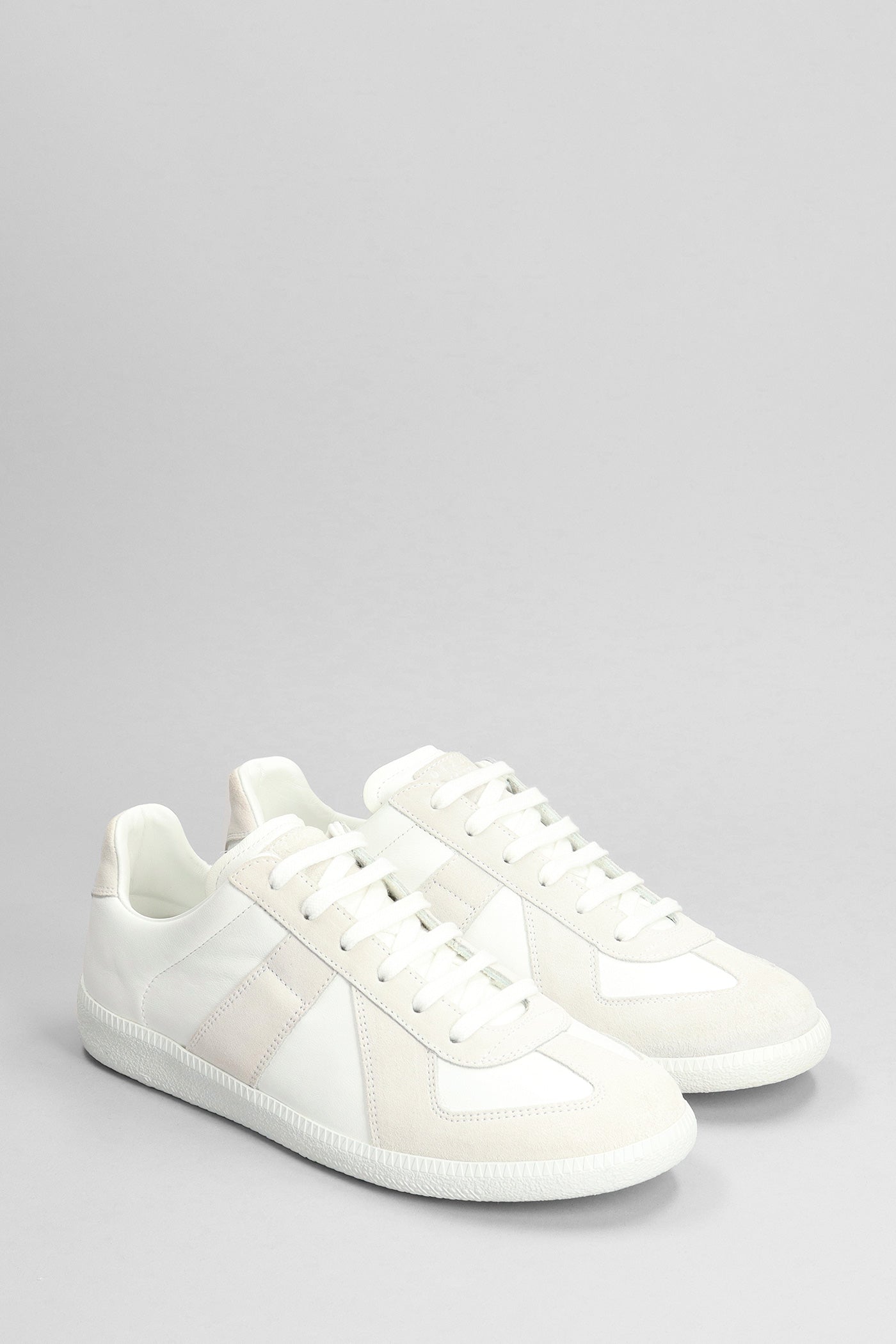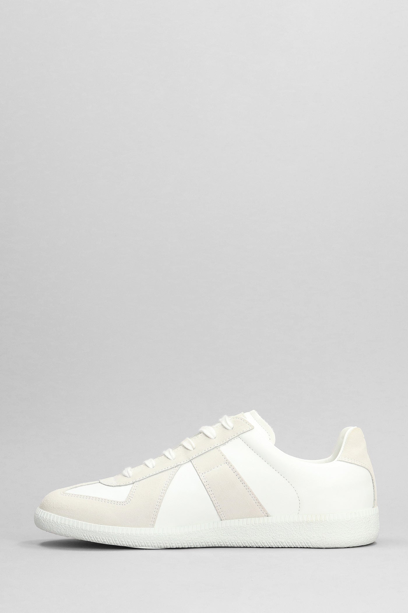 Sneakers in white suede and leather
