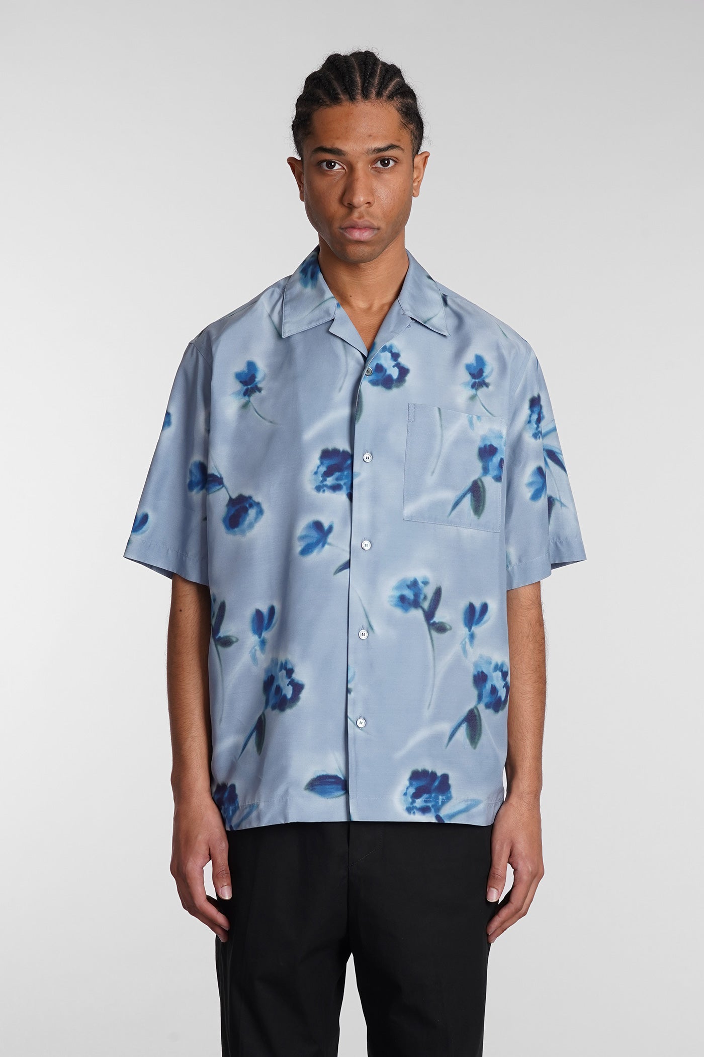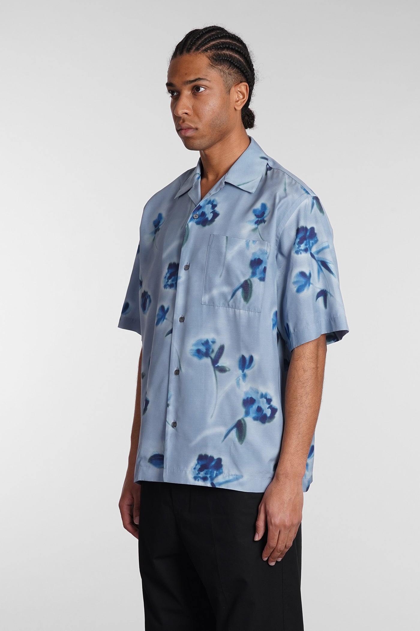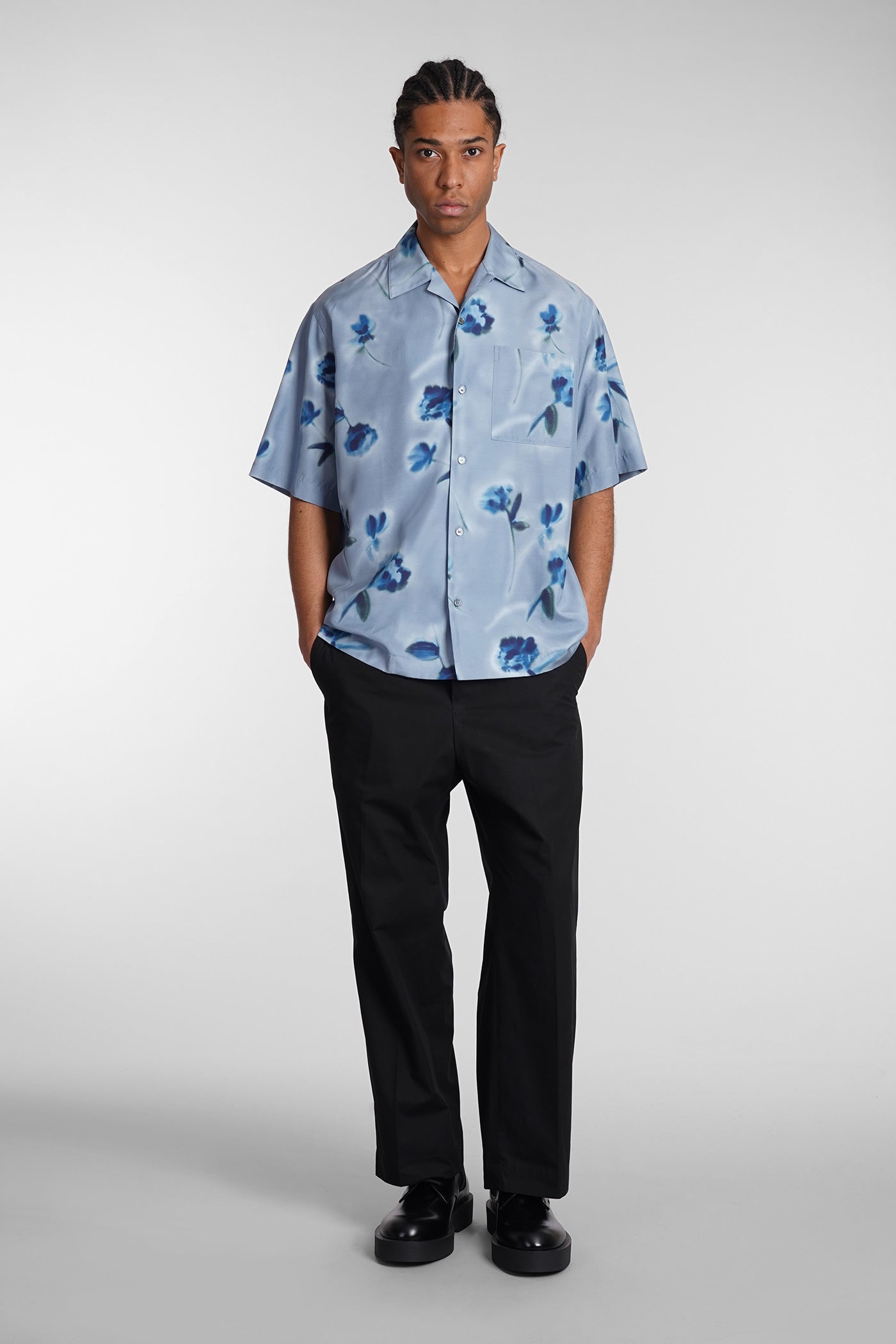 Shirt in cyan viscose