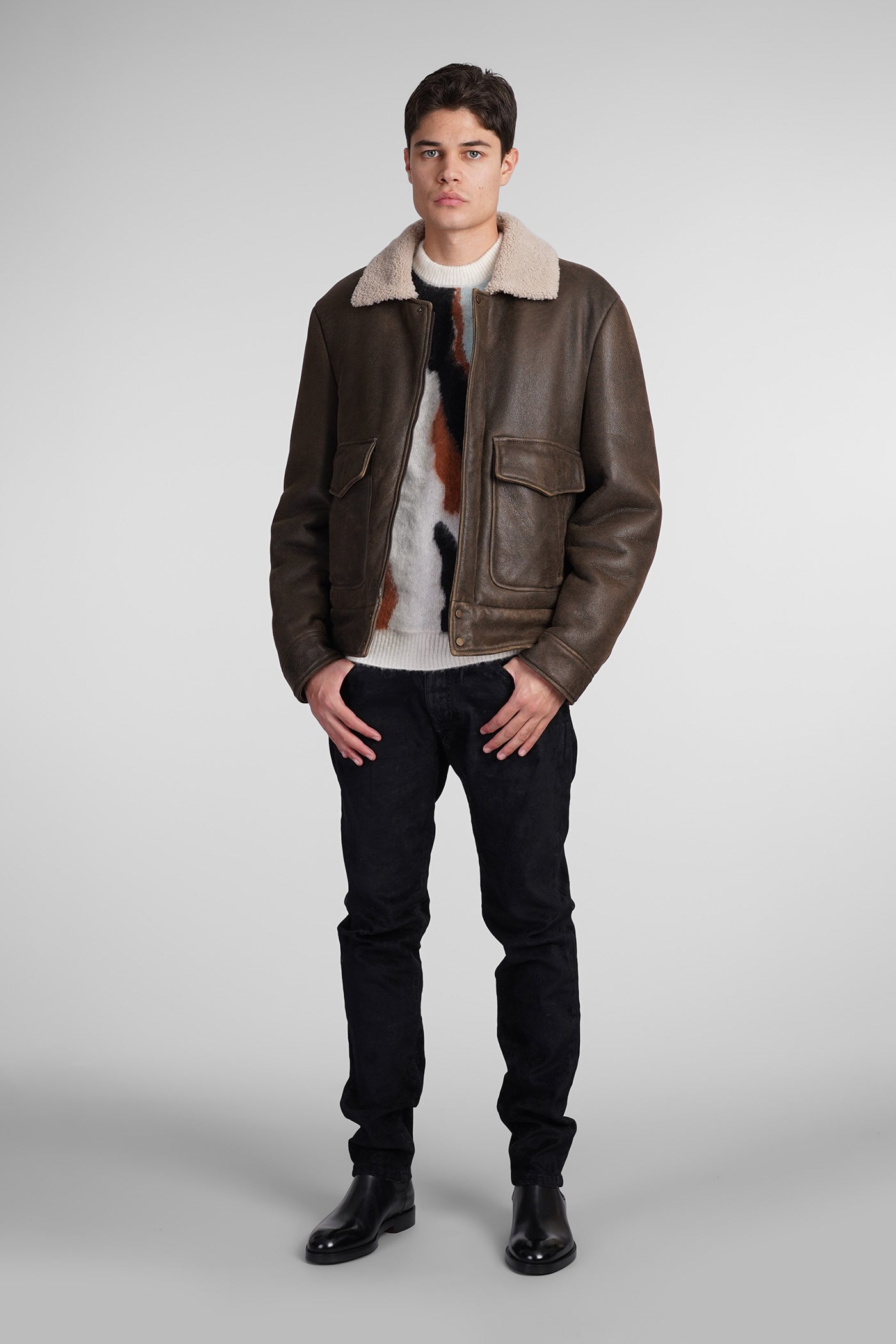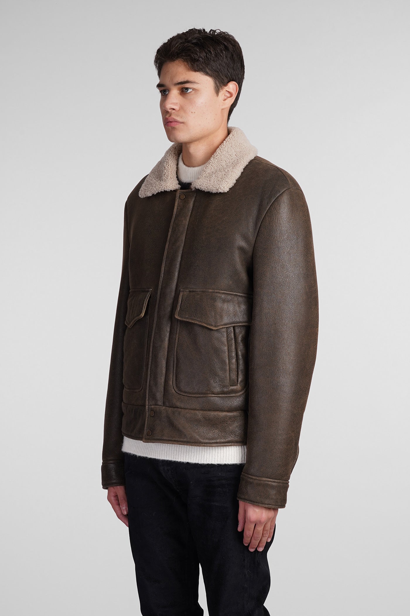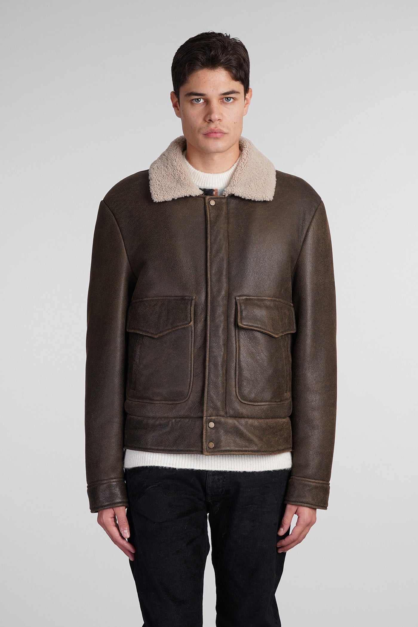 Shearling in brown leather