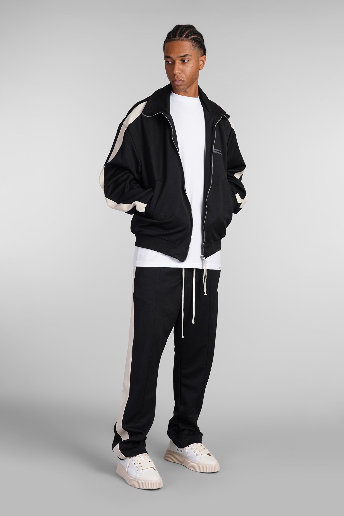Teknit stripe Pants in black polyester