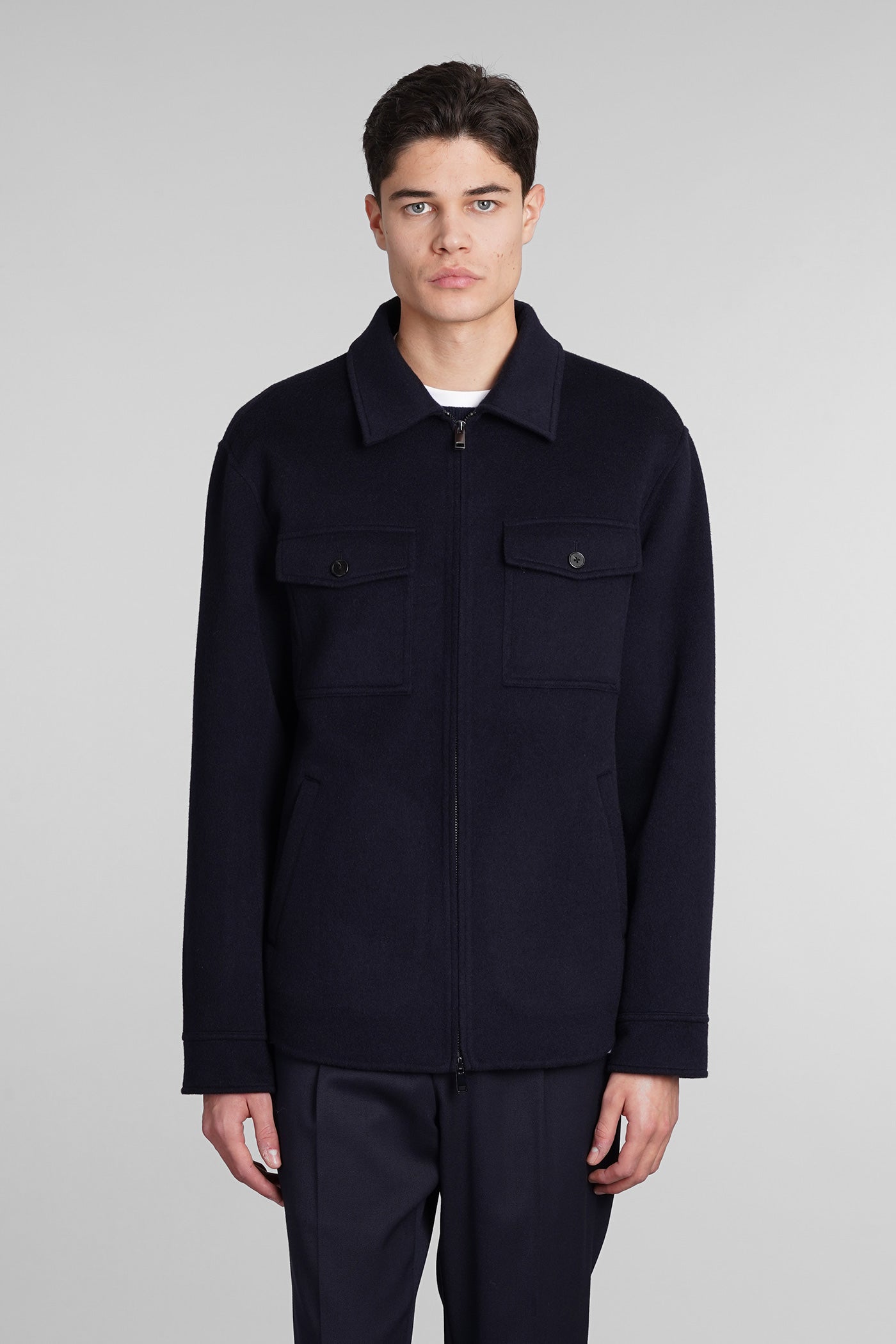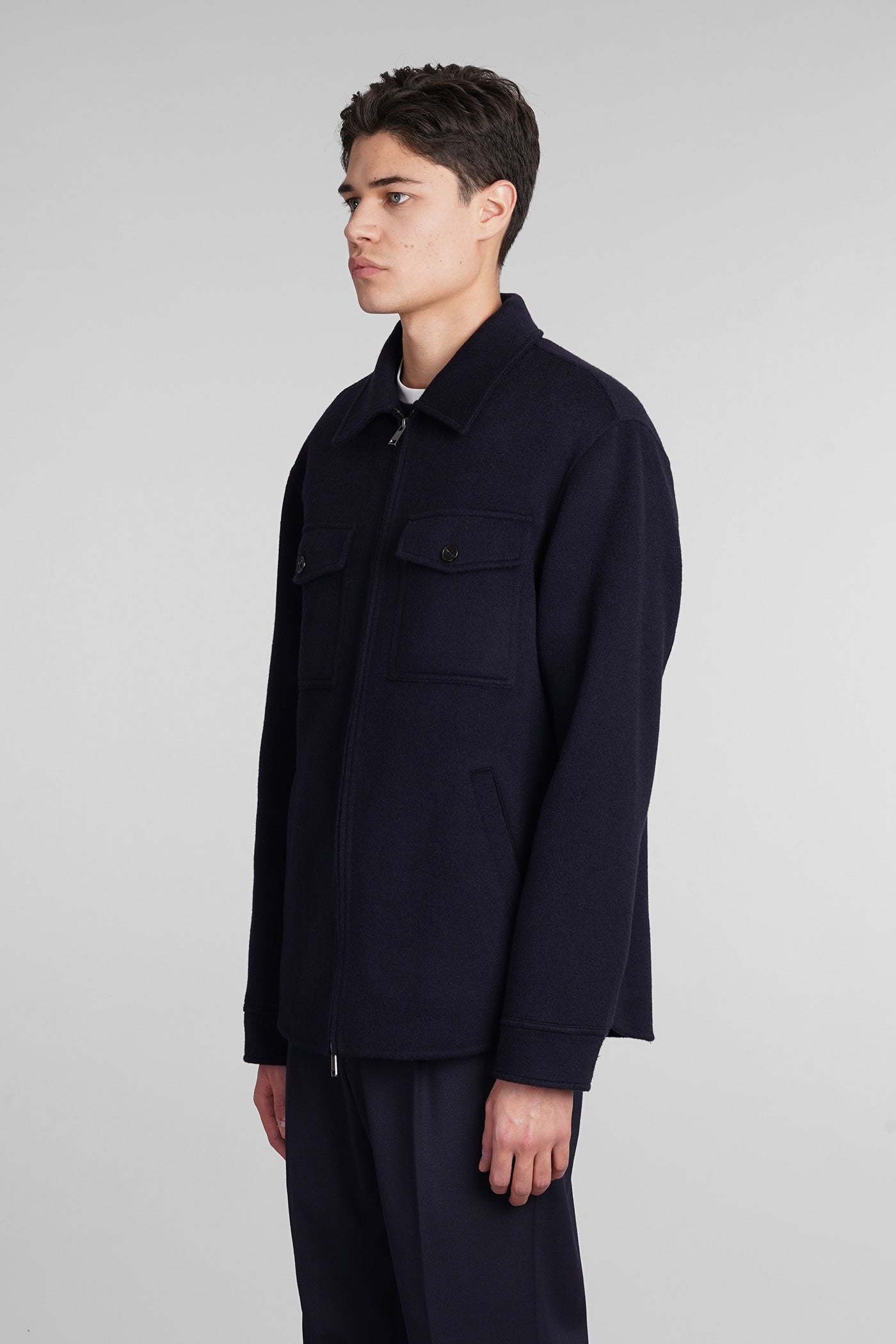 Casual jacket in blue wool