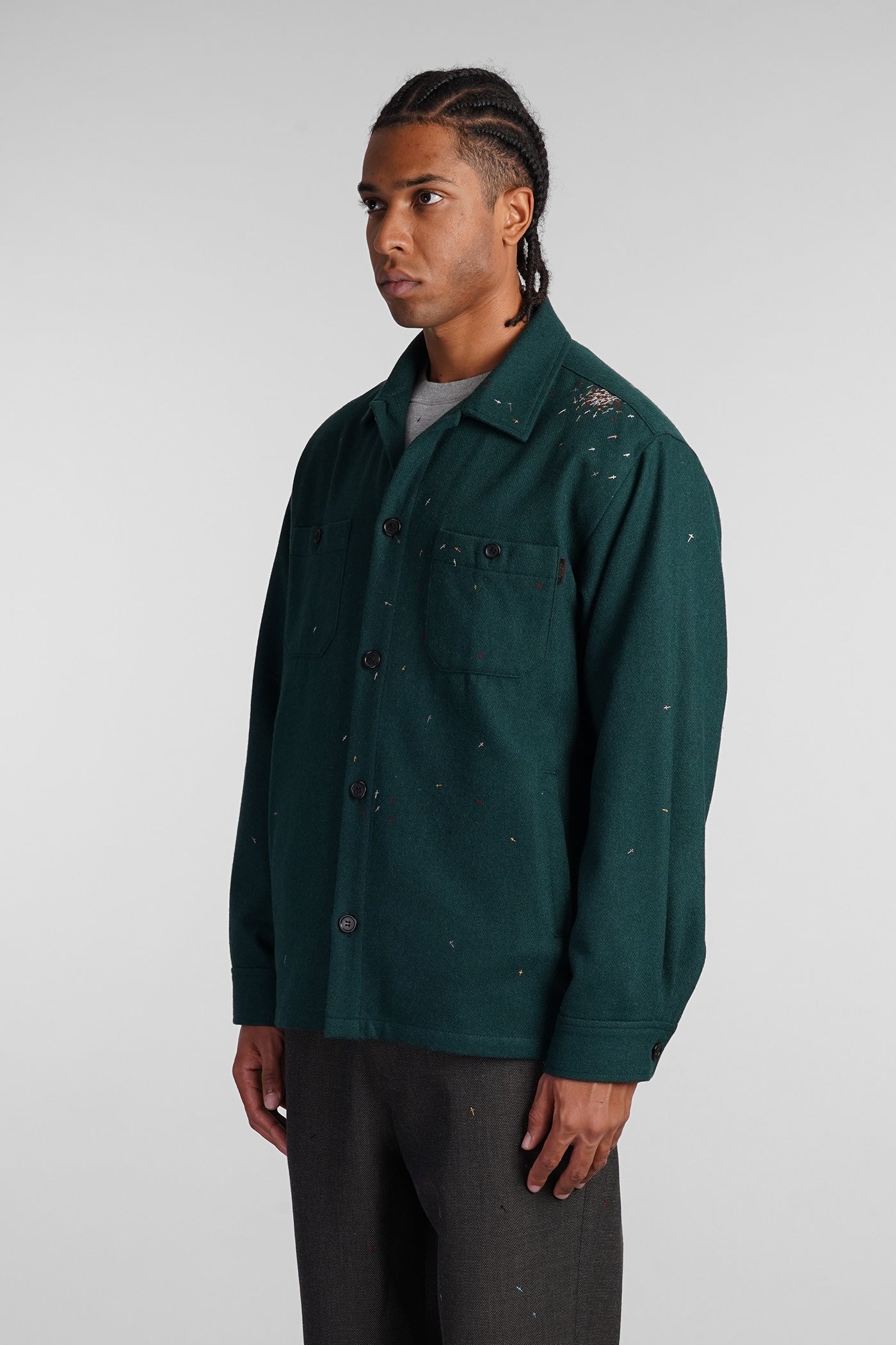 Casual jacket in green wool