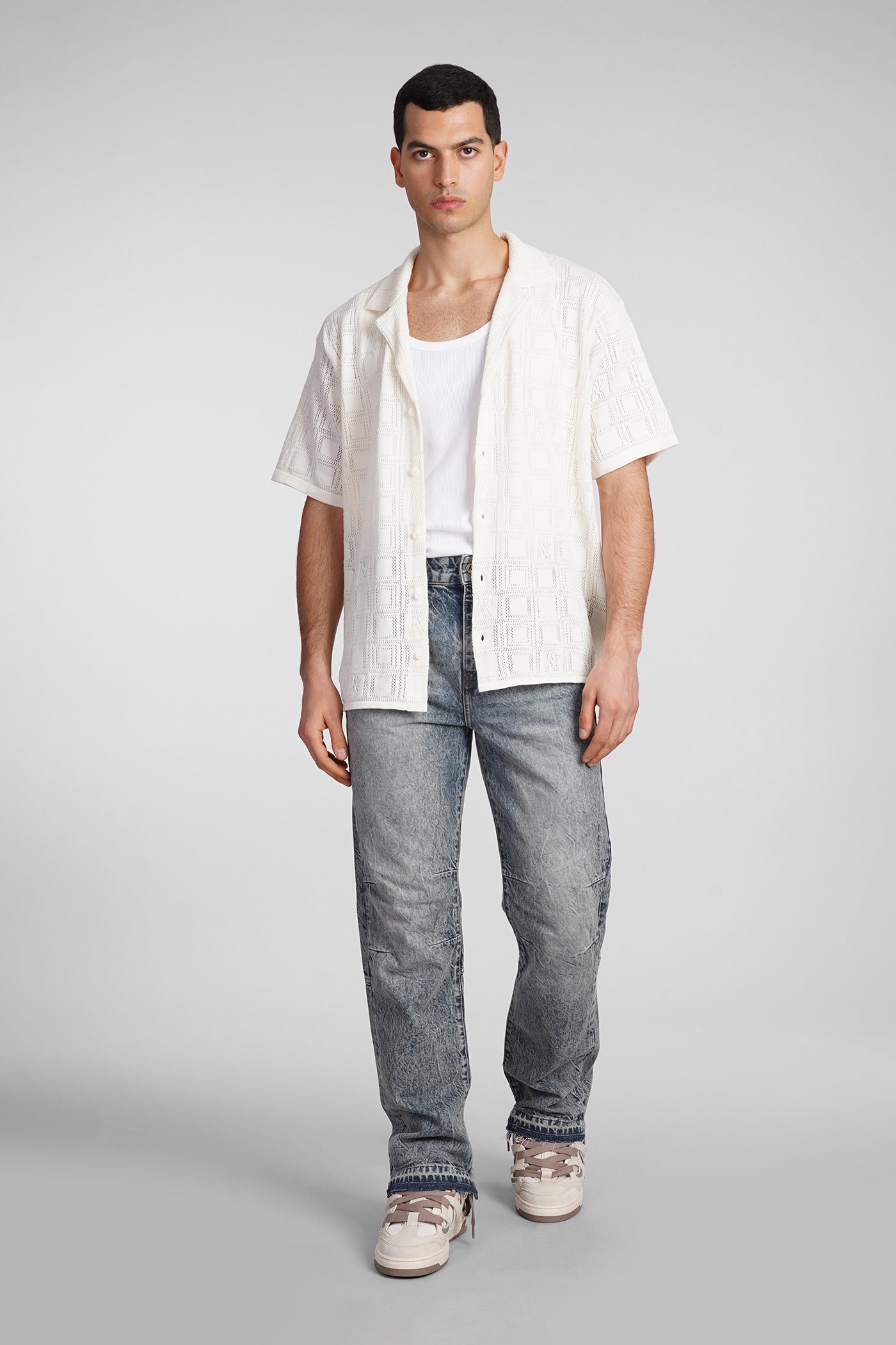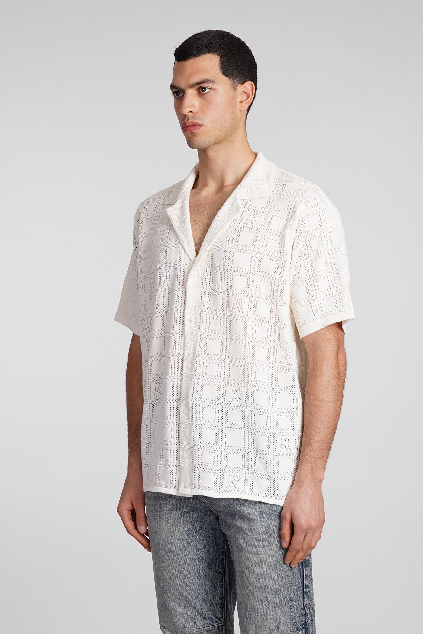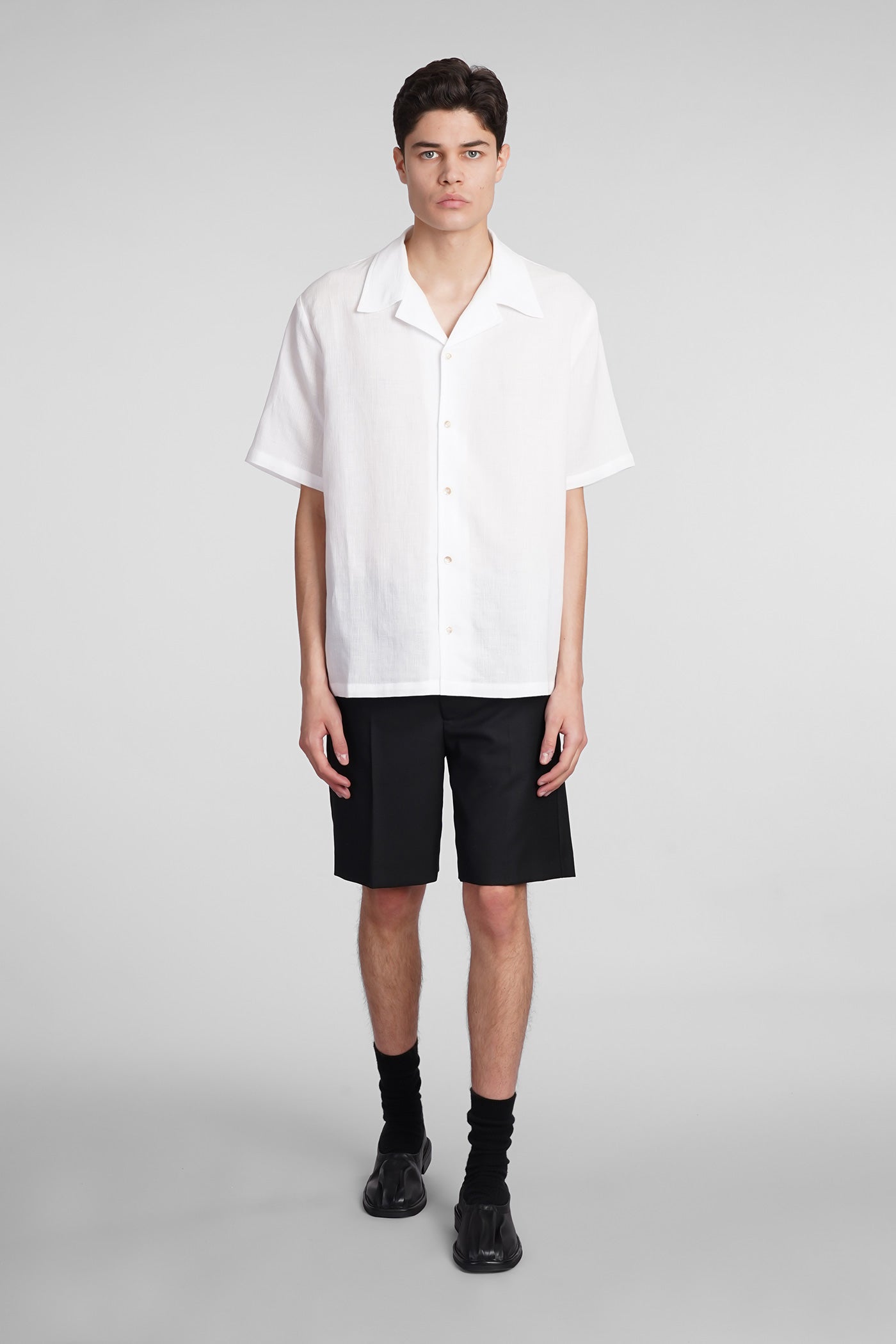 Shirt in white cotton and linen