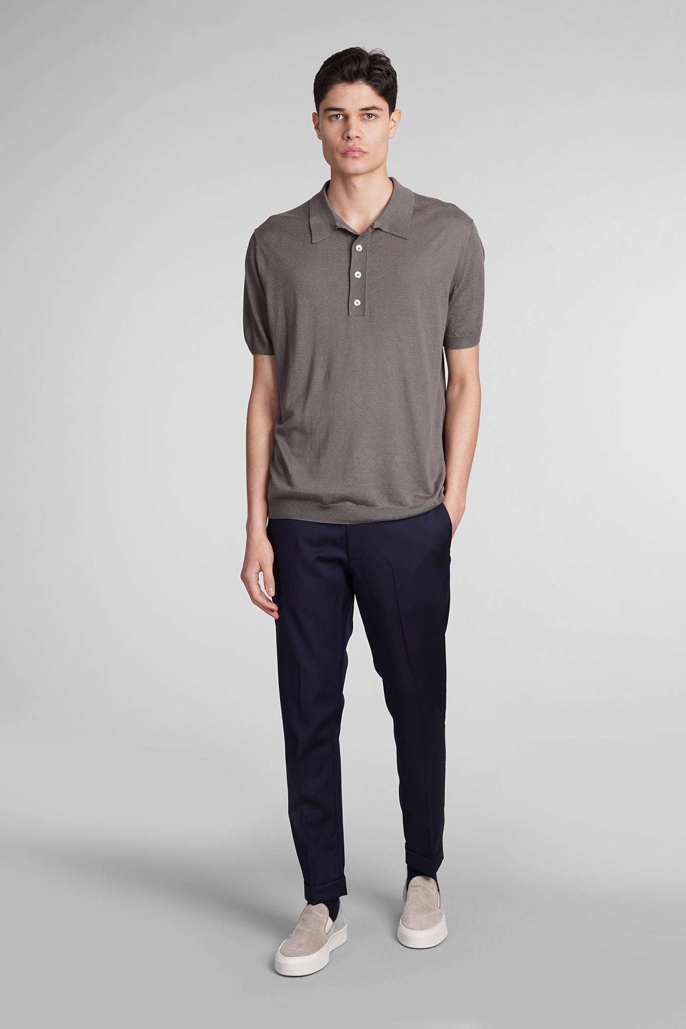 K148 Polo in grey Silk and Linen