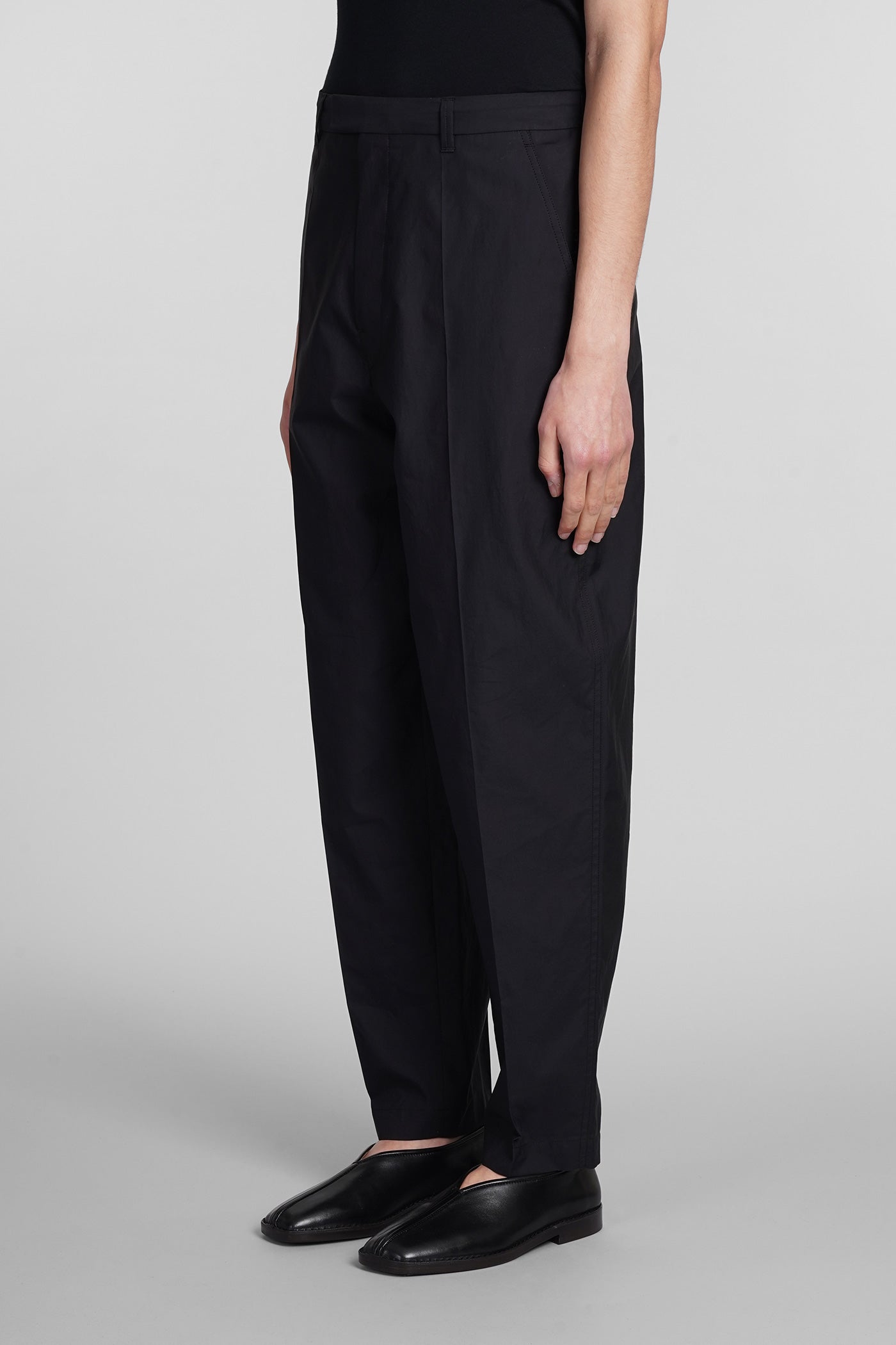 Drawstring long Pants in black cotton
