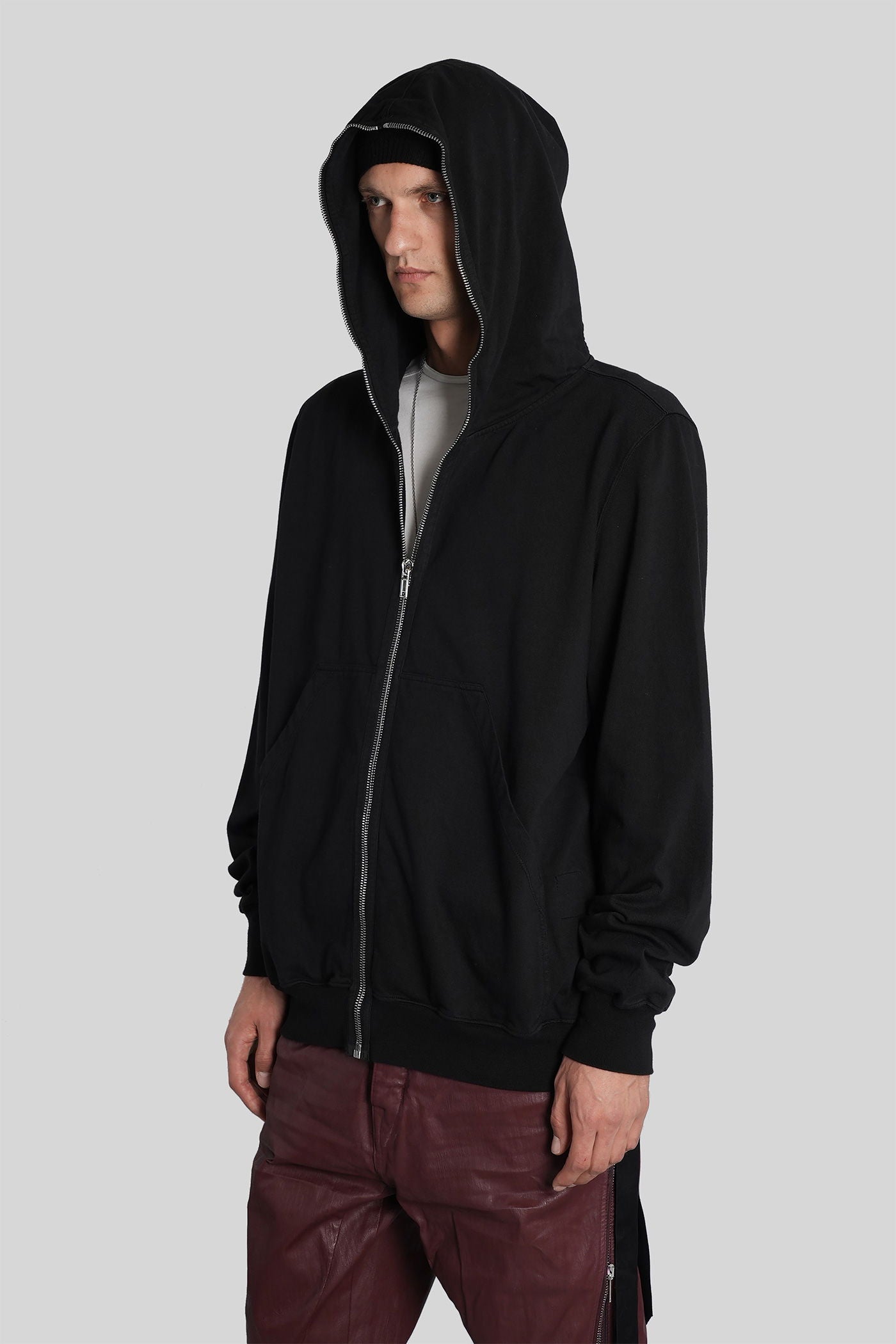 Jumbo gimp hoodie Sweatshirt in black cotton