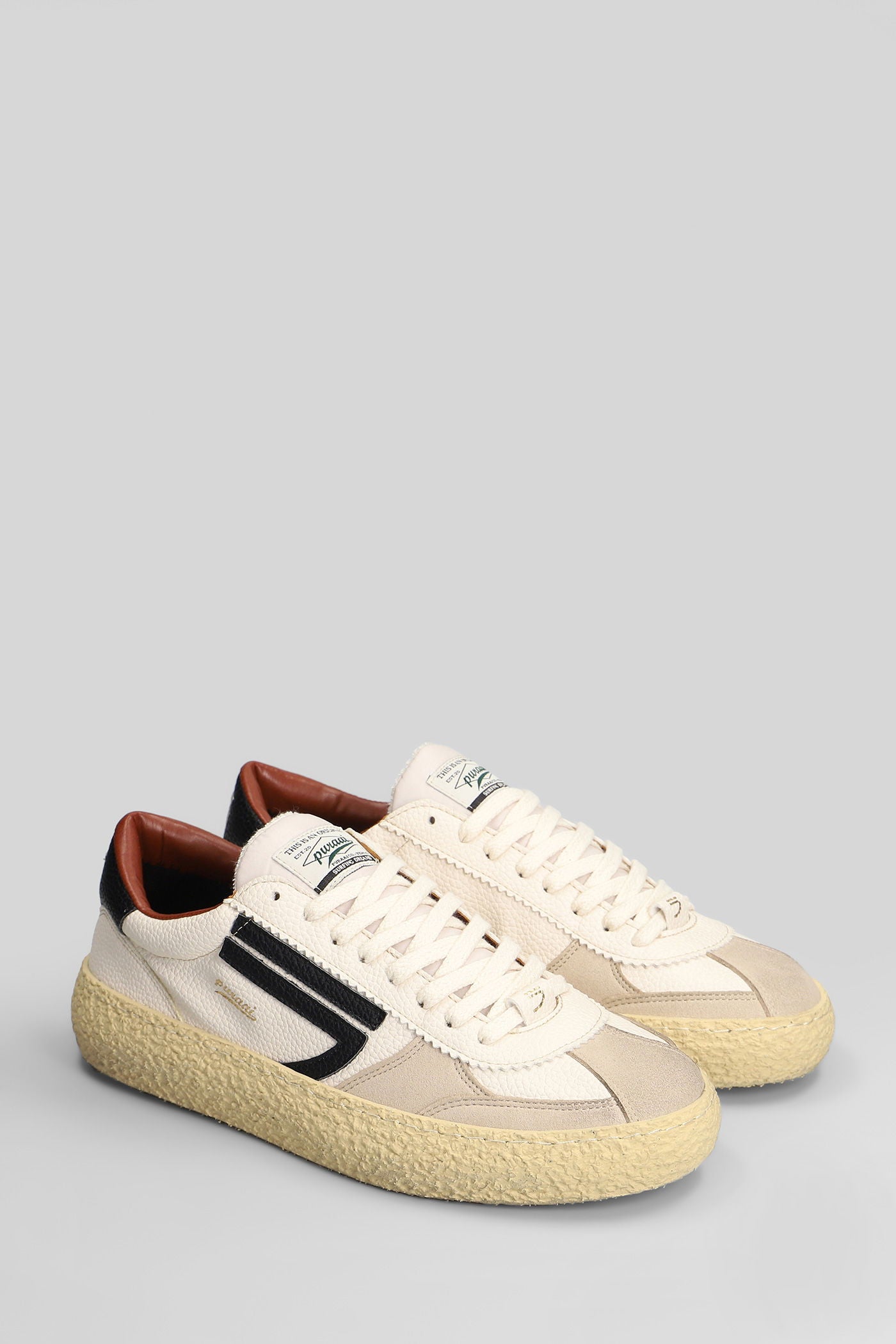 Sneakers in beige leather