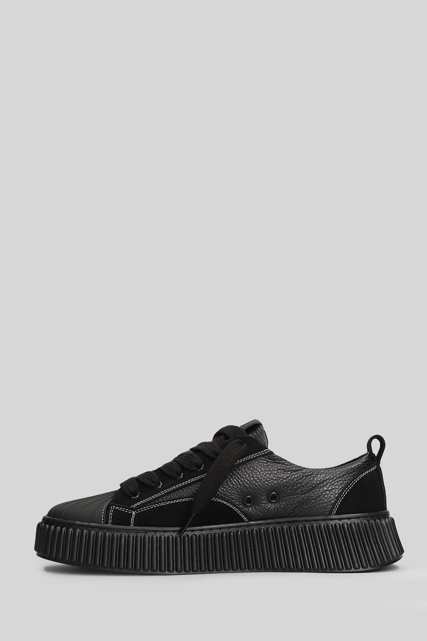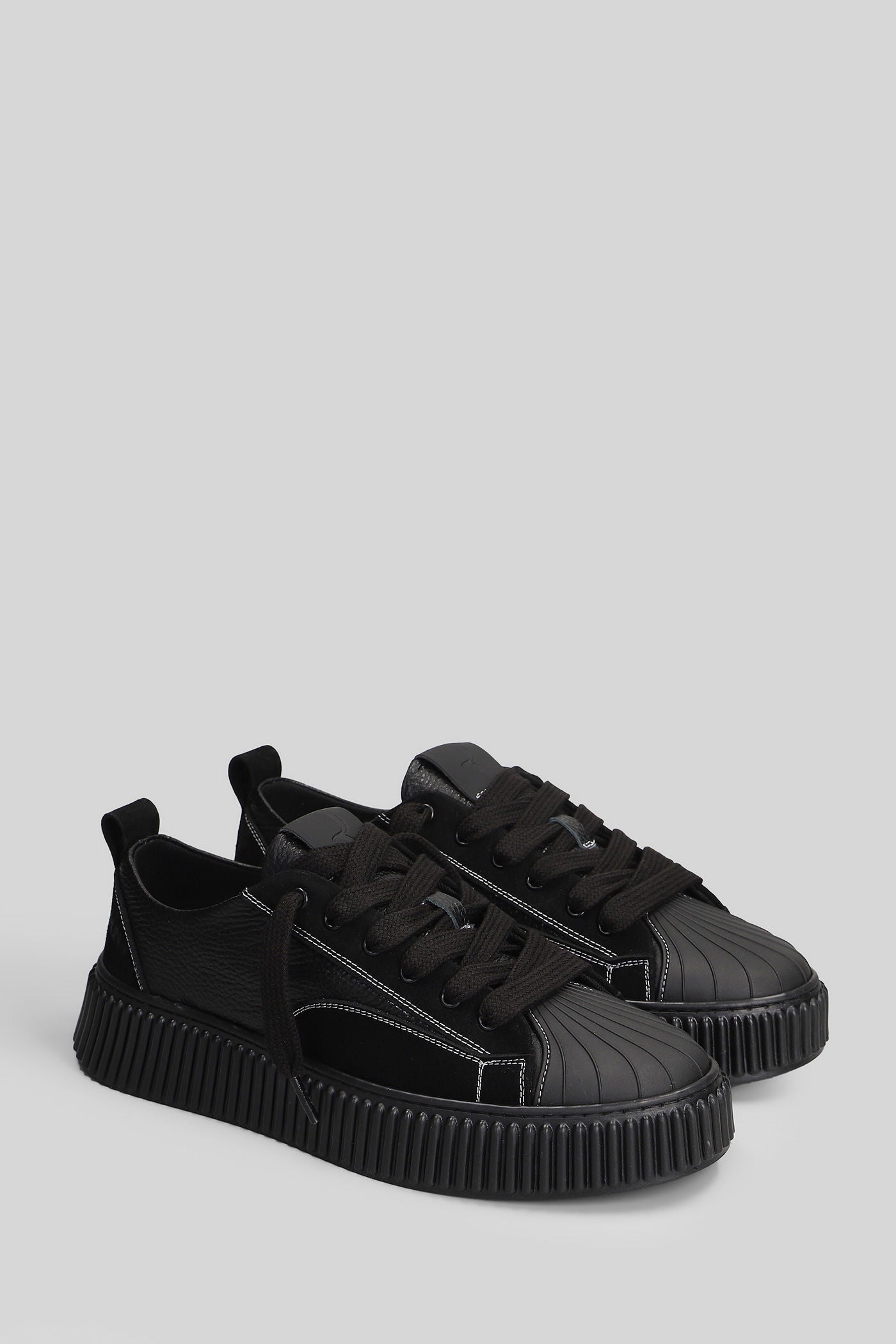 Leather Top Sneakers in black leather