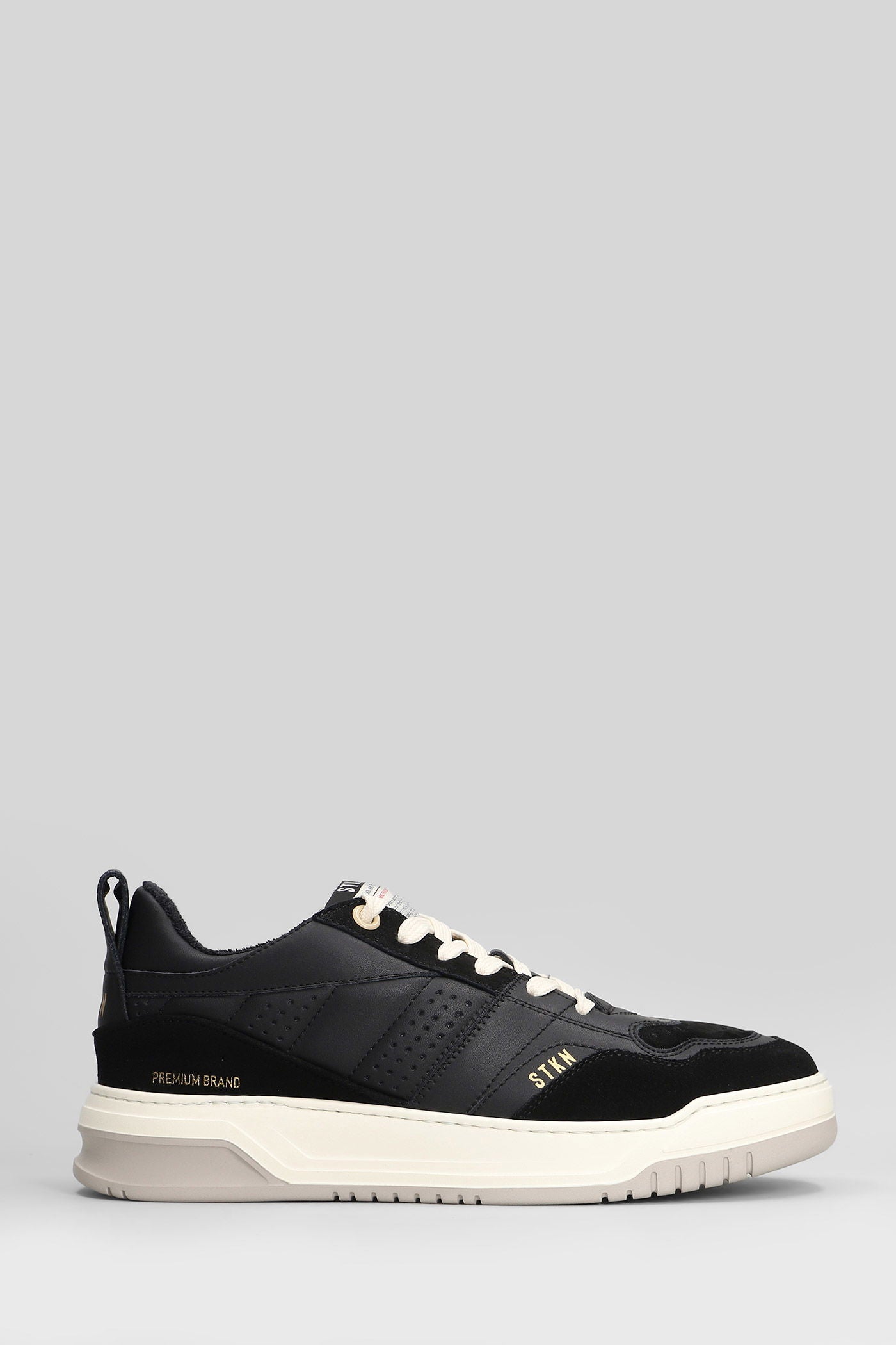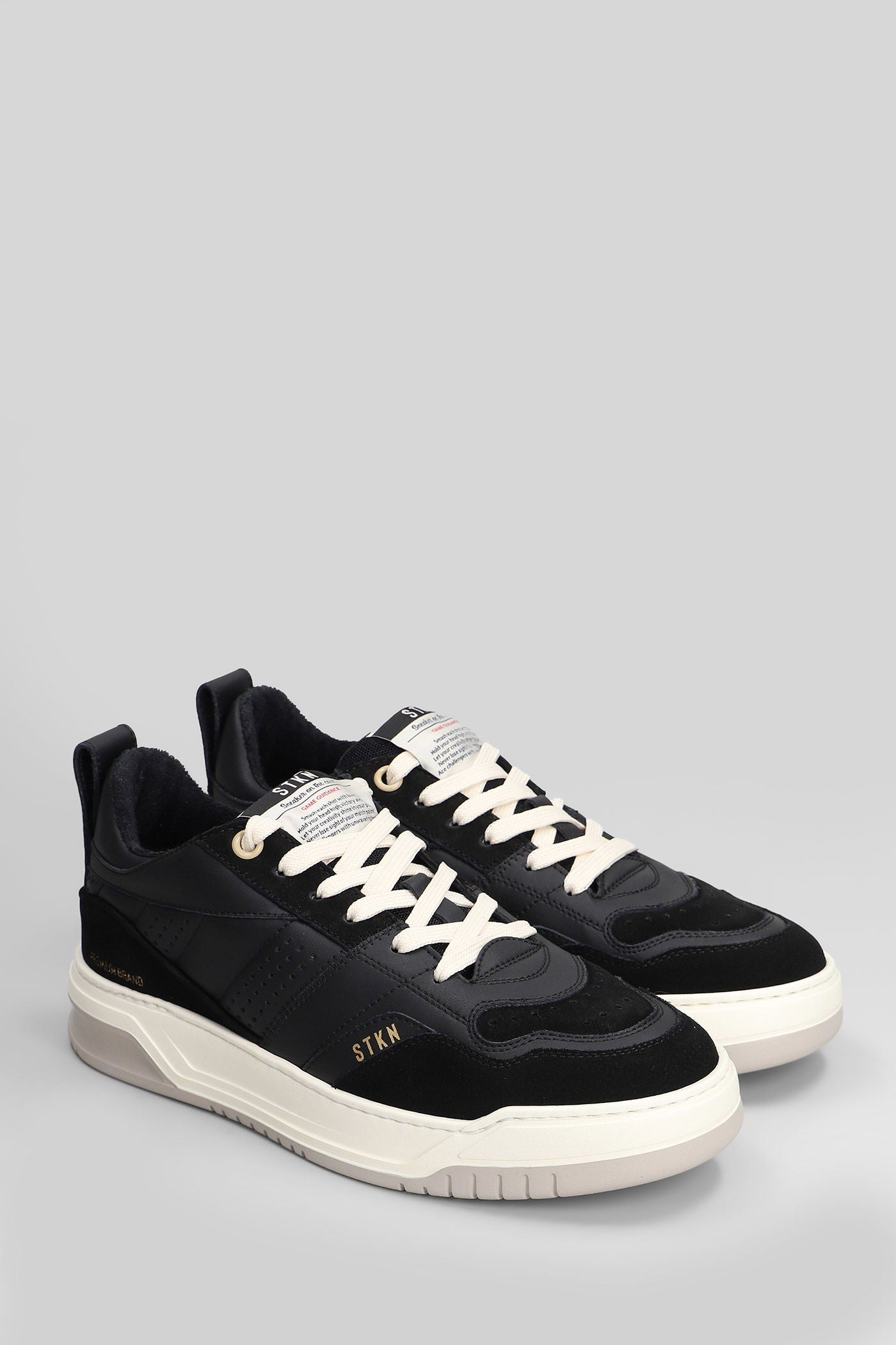 Sneakers in black suede and leather