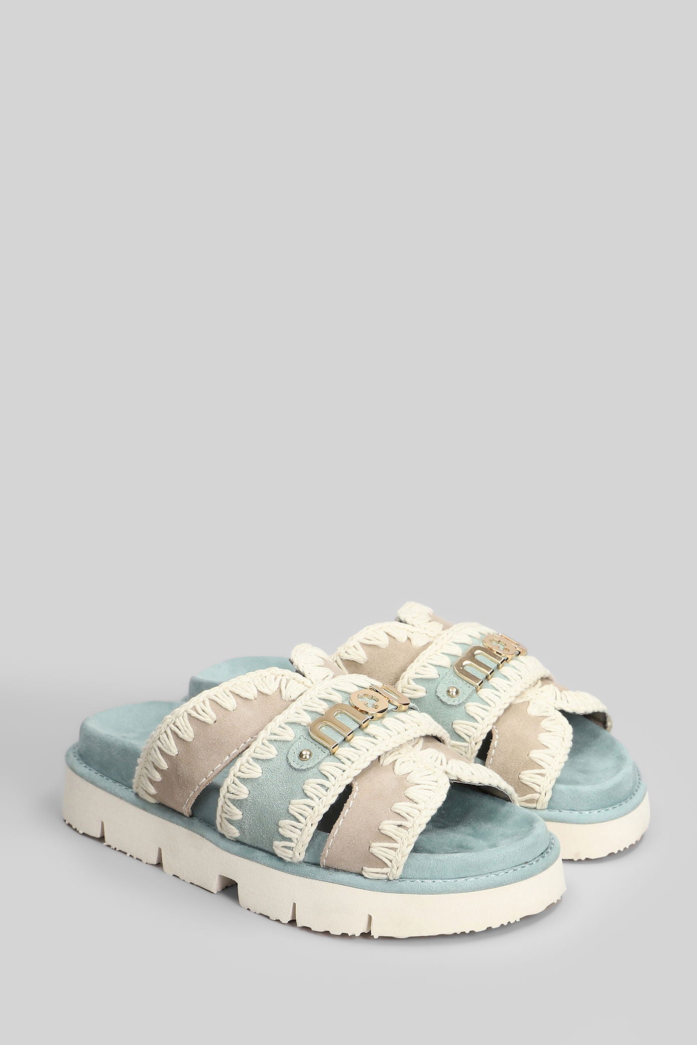 Bio Sandal Flats in cyan suede