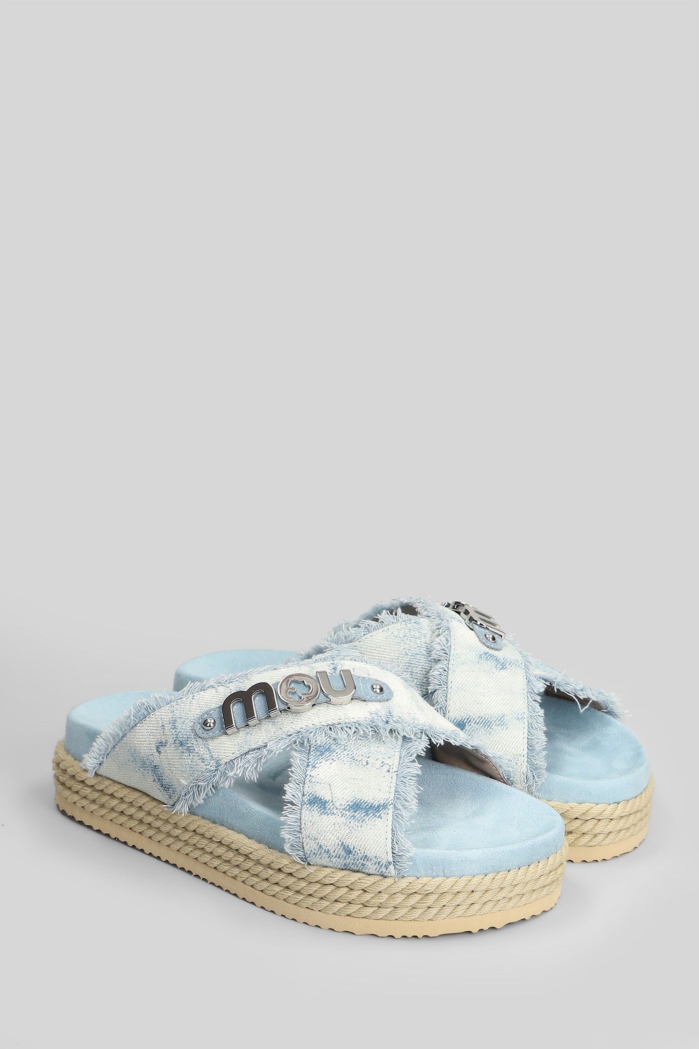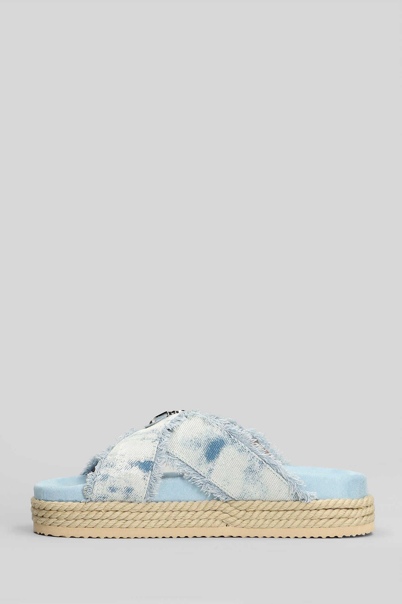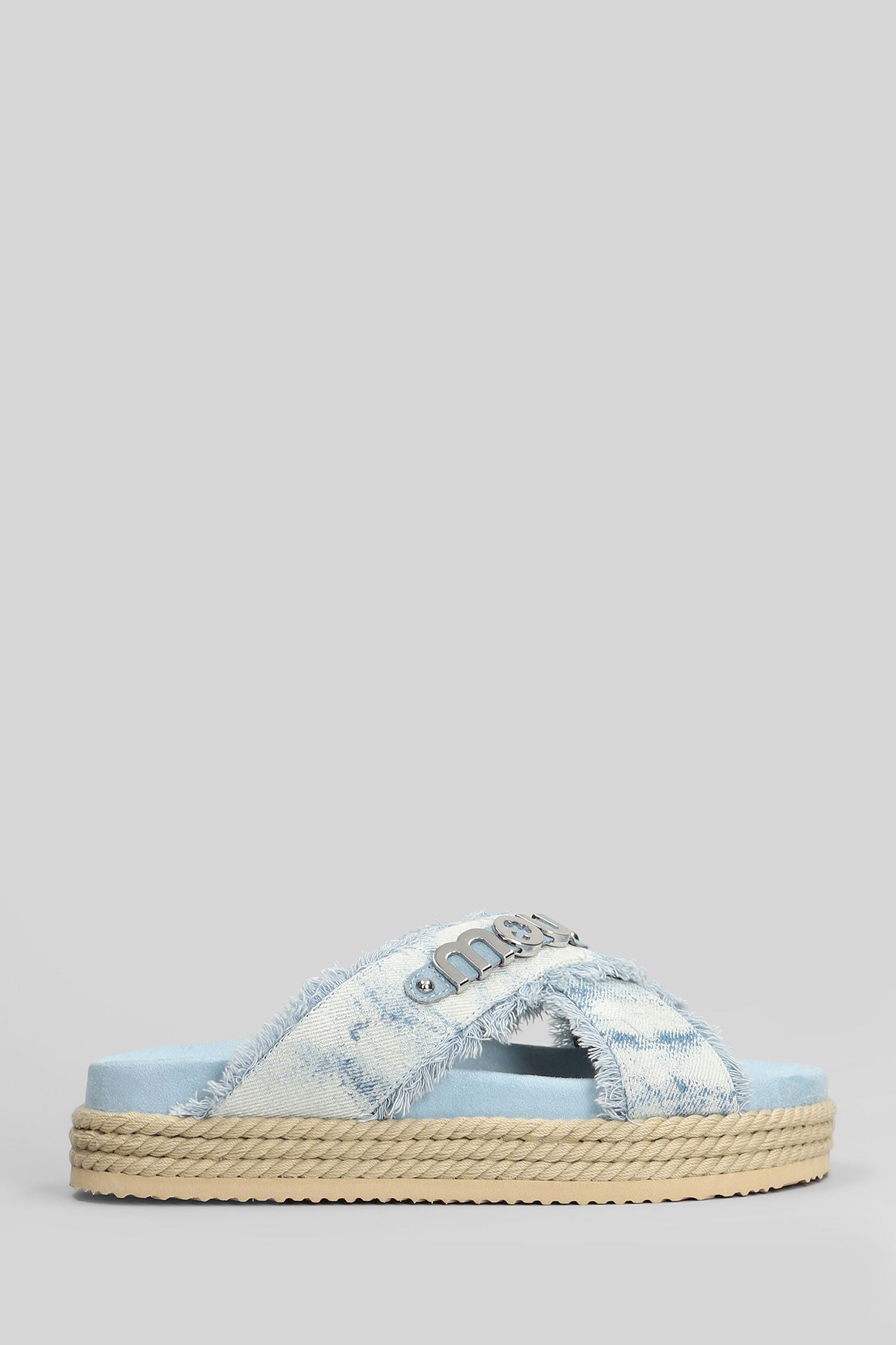 Criss-cross Flats in cyan denim