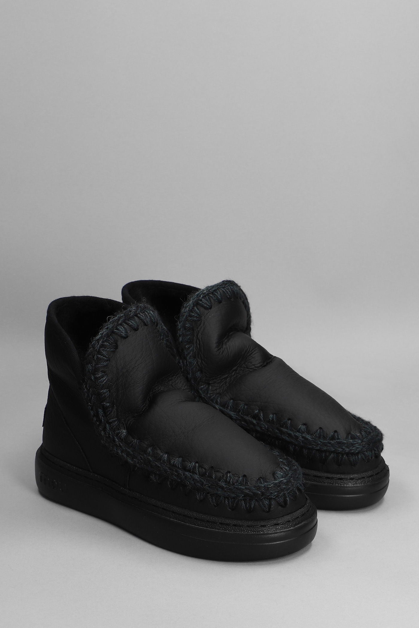 Eskimo sneaker bold low heels Ankle boots in black leather