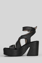 Rafia Platform Sandals in black raffia