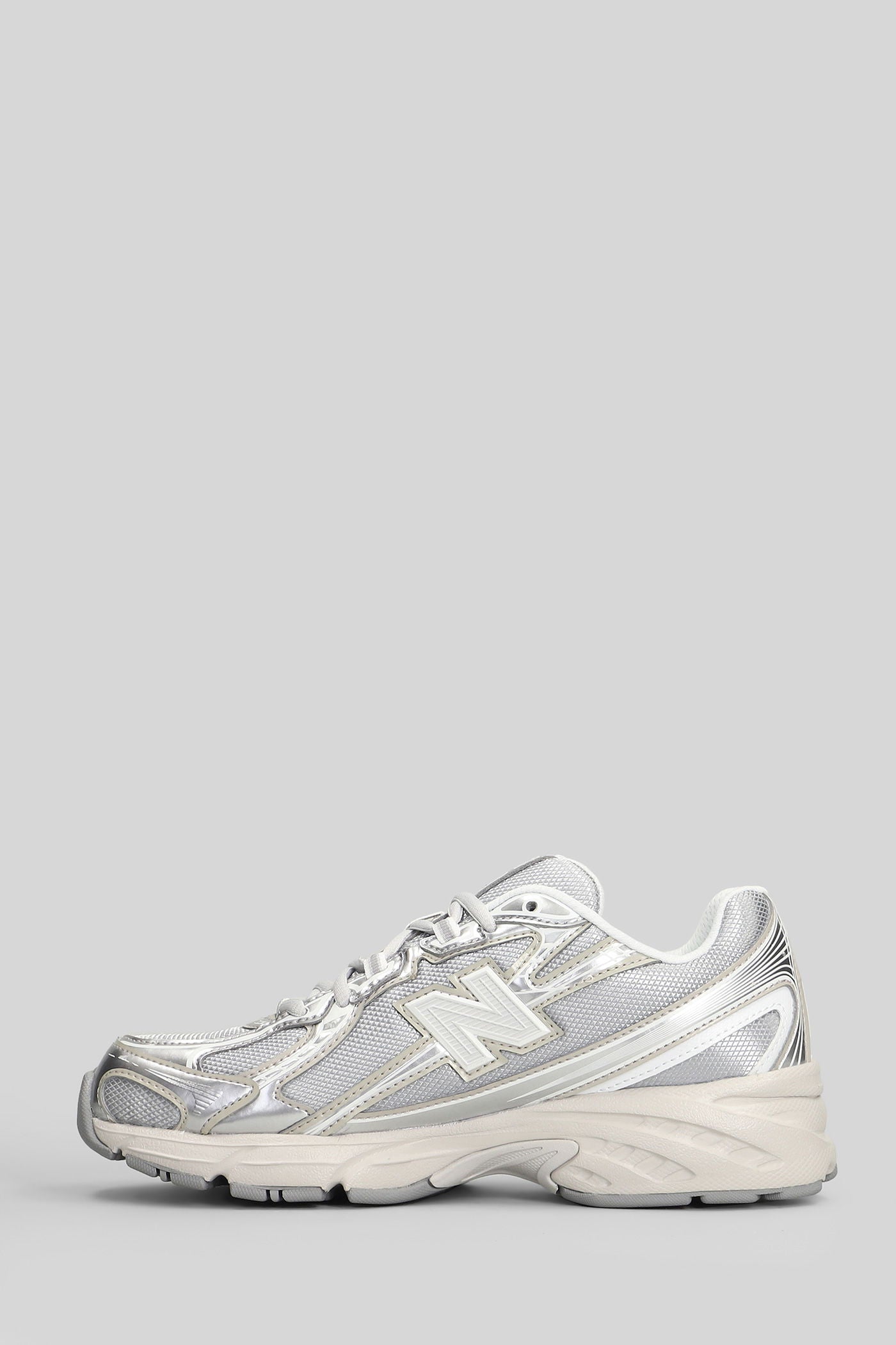 740 Sneakers in silver leather and fabric
