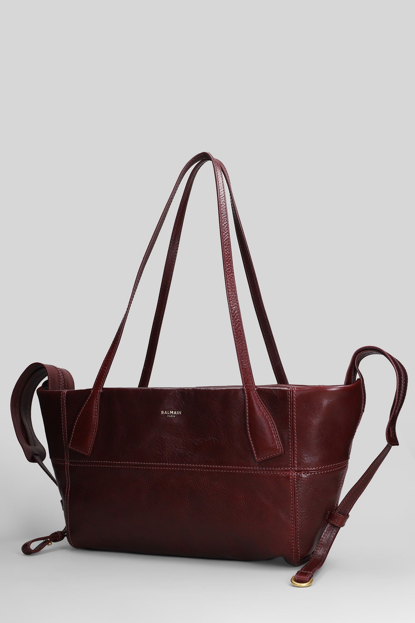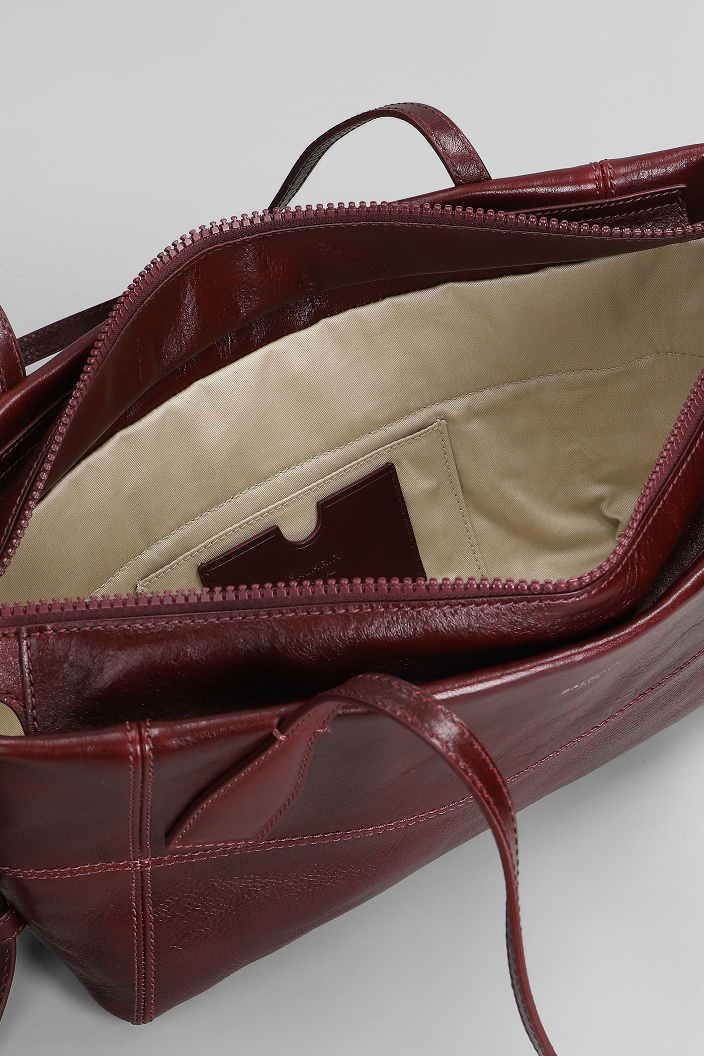Track zip small Tote in bordeaux leather