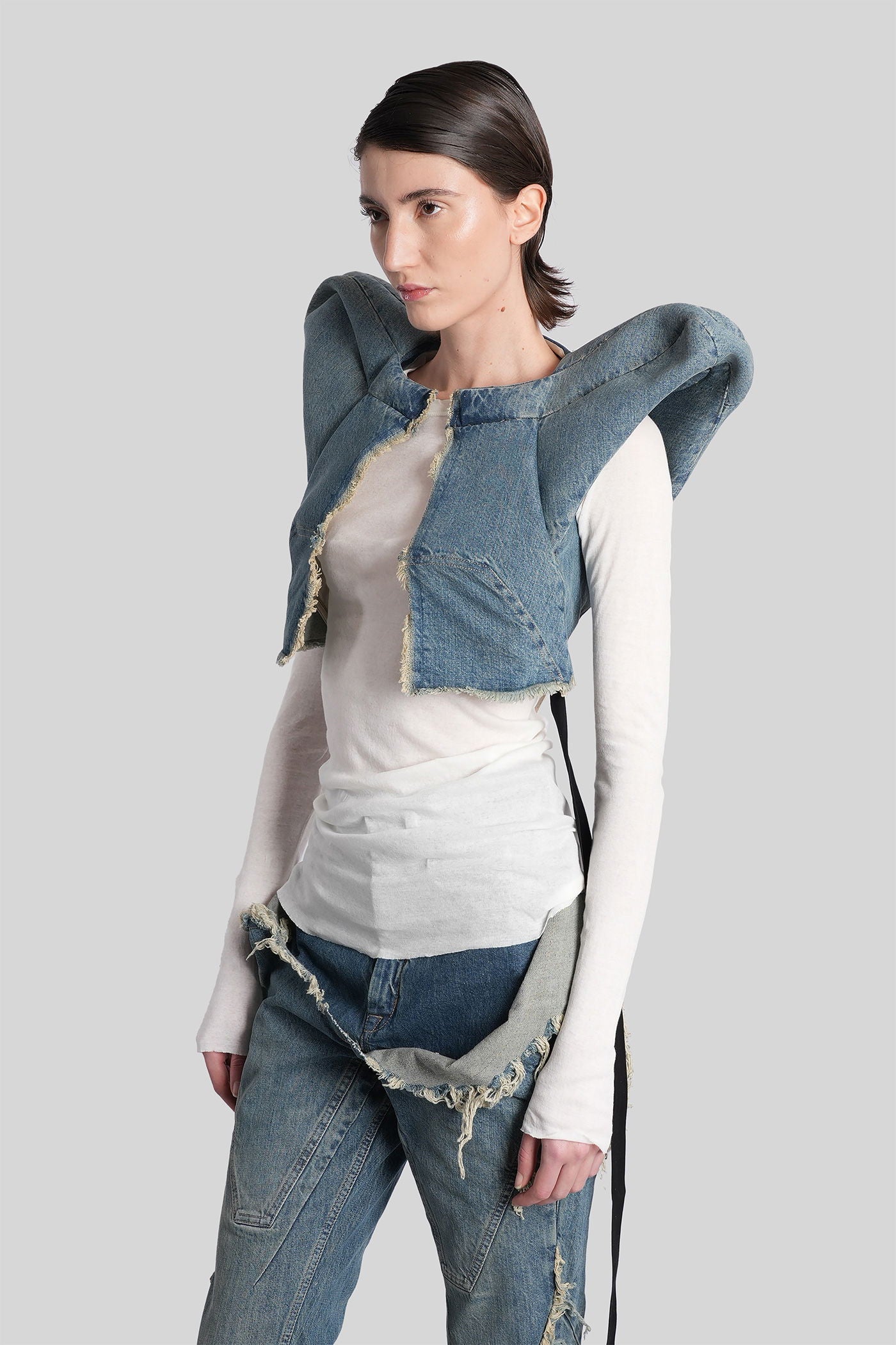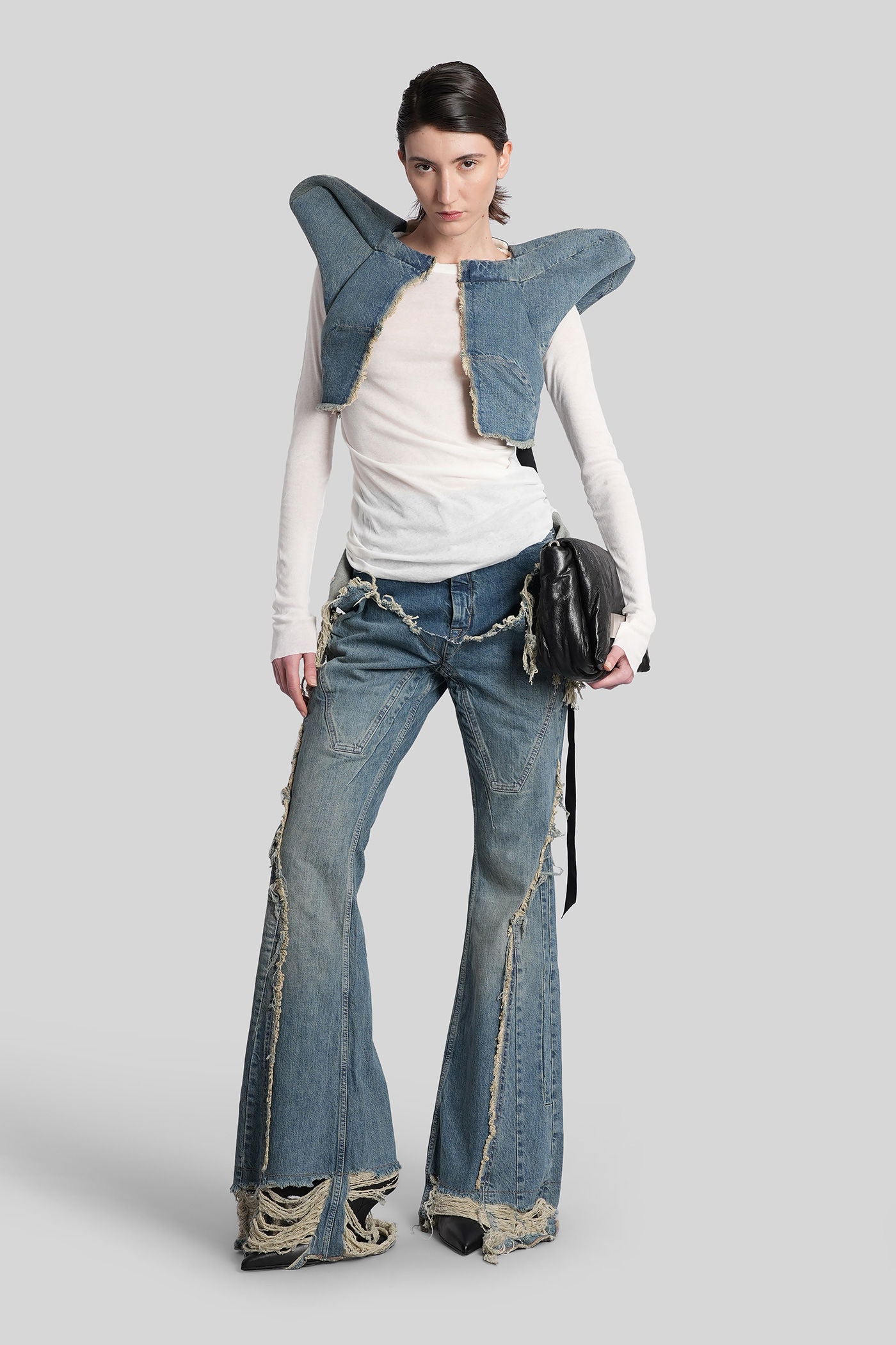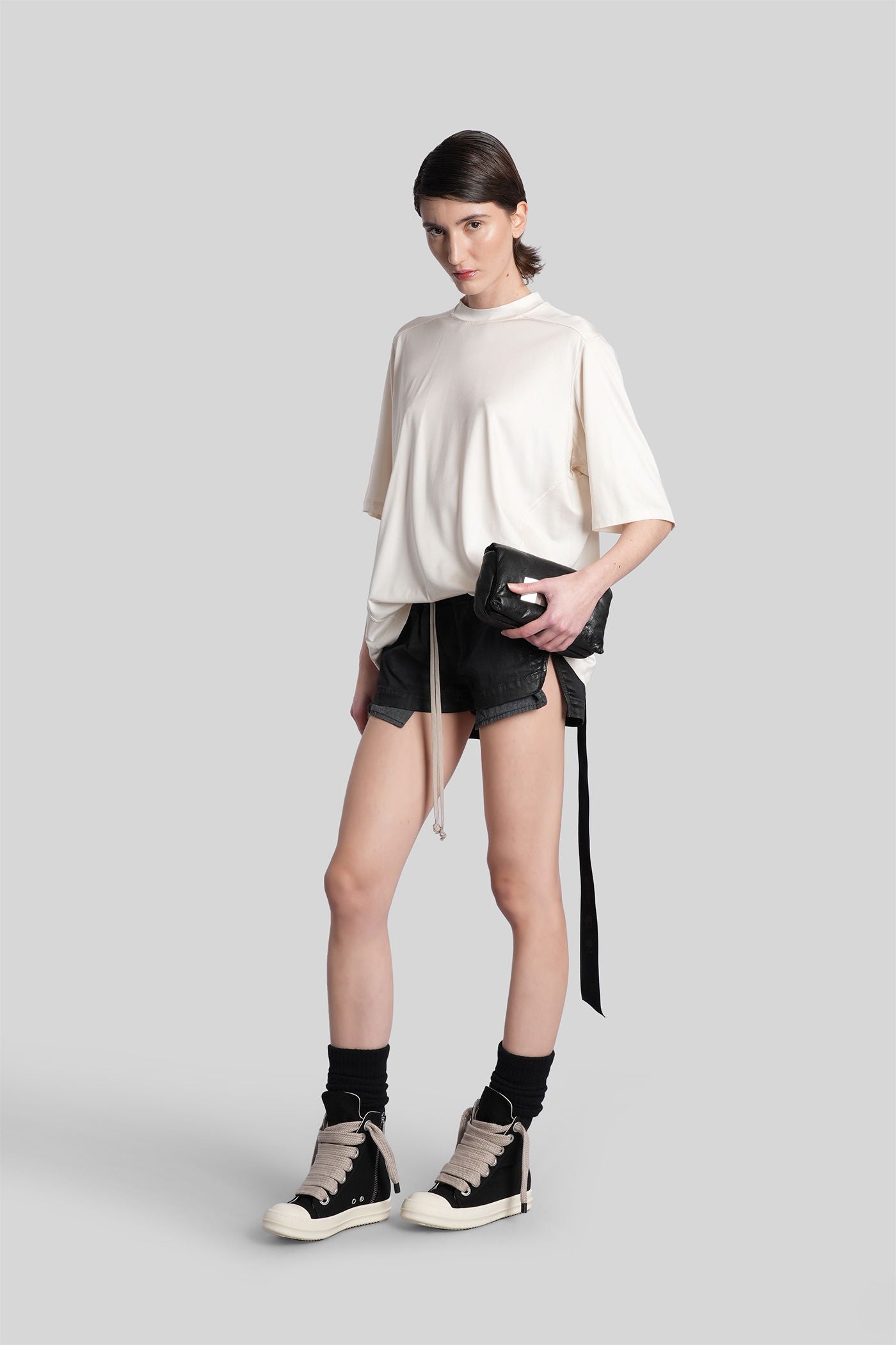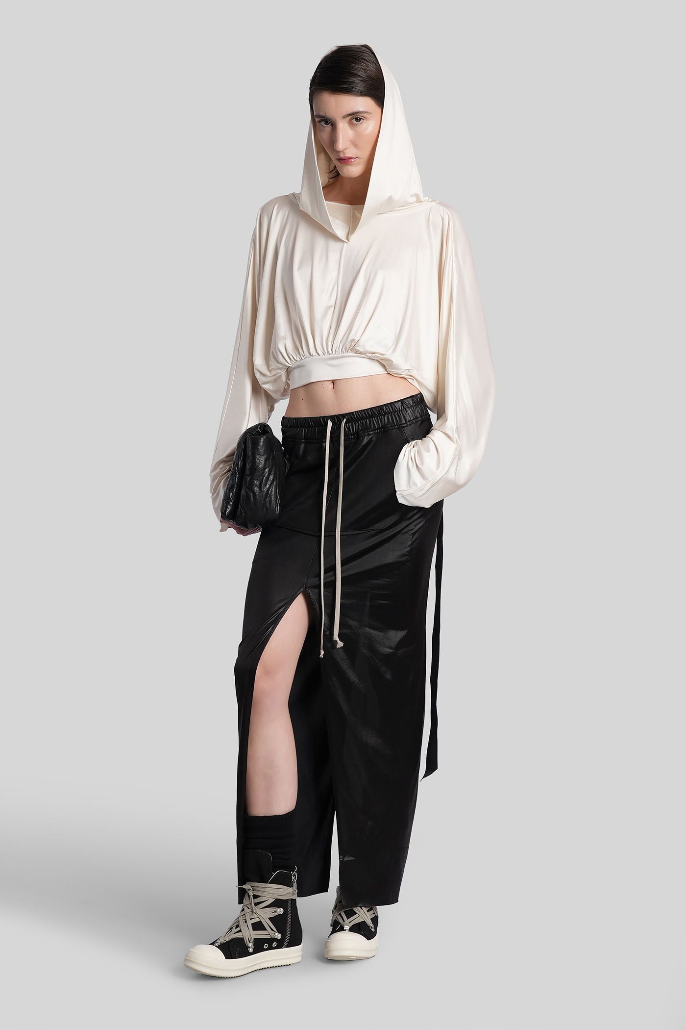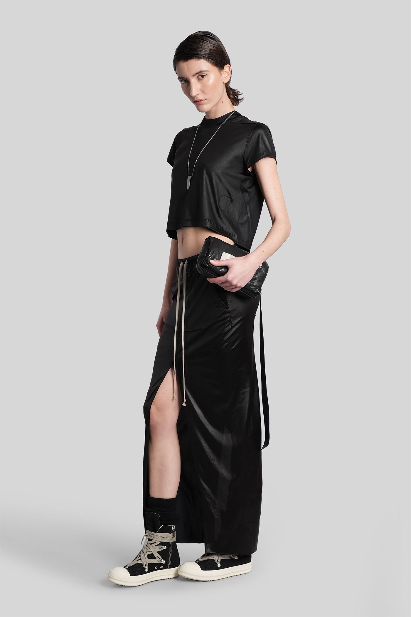 Rick Owens DRKSHDW è l’eco sovversiva e sperimentale del mondo Rick Owens. Nato come linea secondaria nel 2005, DRKSHDW reinterpreta l’estetica iconica del brand—decostruita, brutalista e profondamente personale—in una visione più accessibile e urbana. Silhouette allungate, proporzioni asimmetriche e una palette monocromatica sono elementi chiave di una collezione che esplora la tensione tra lusso e utilità.