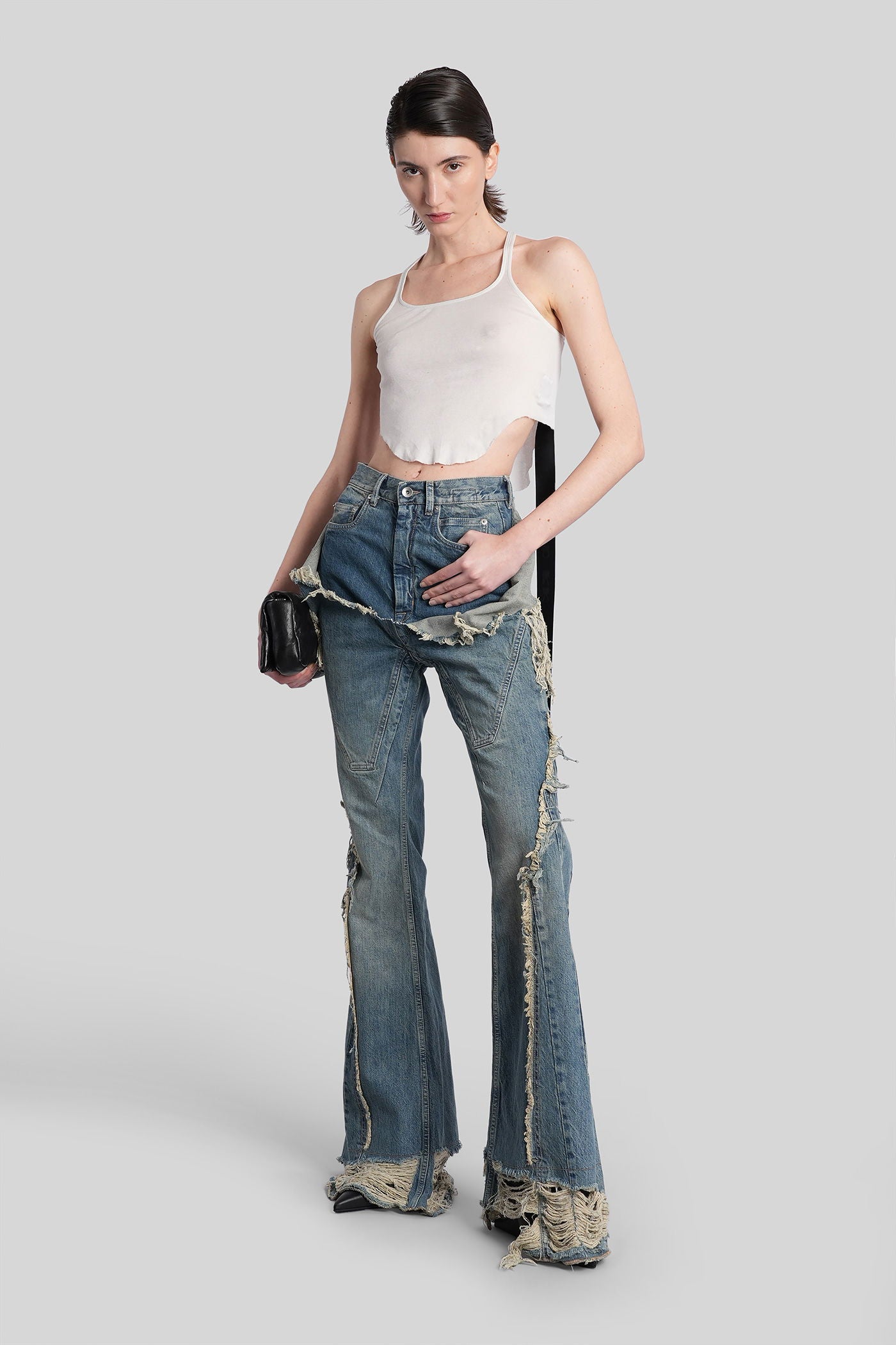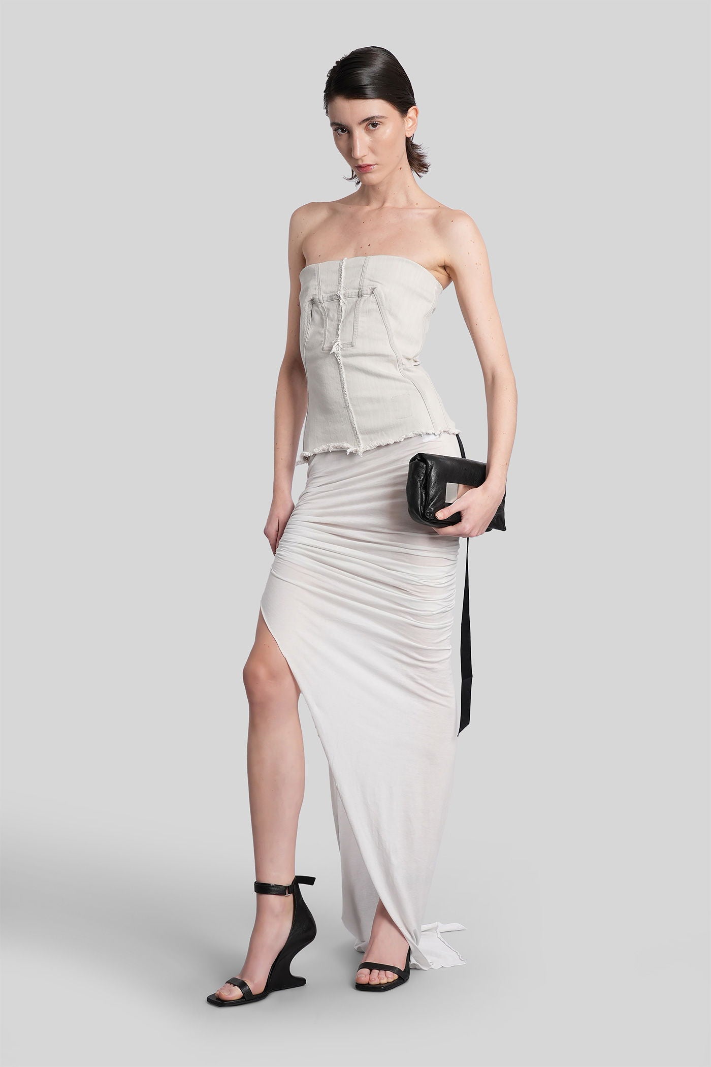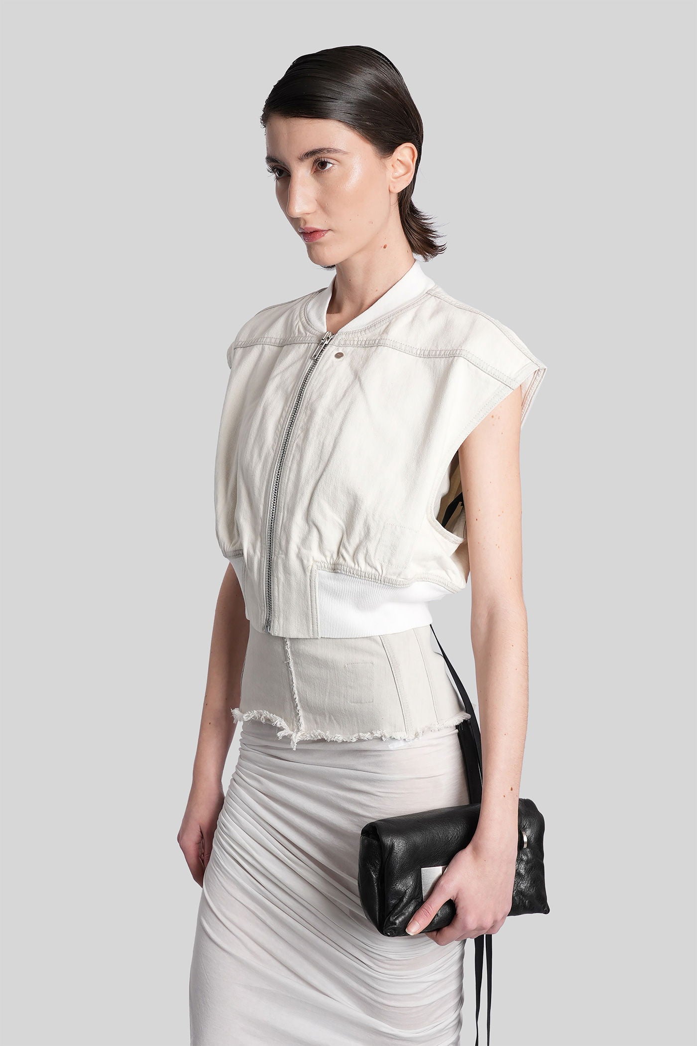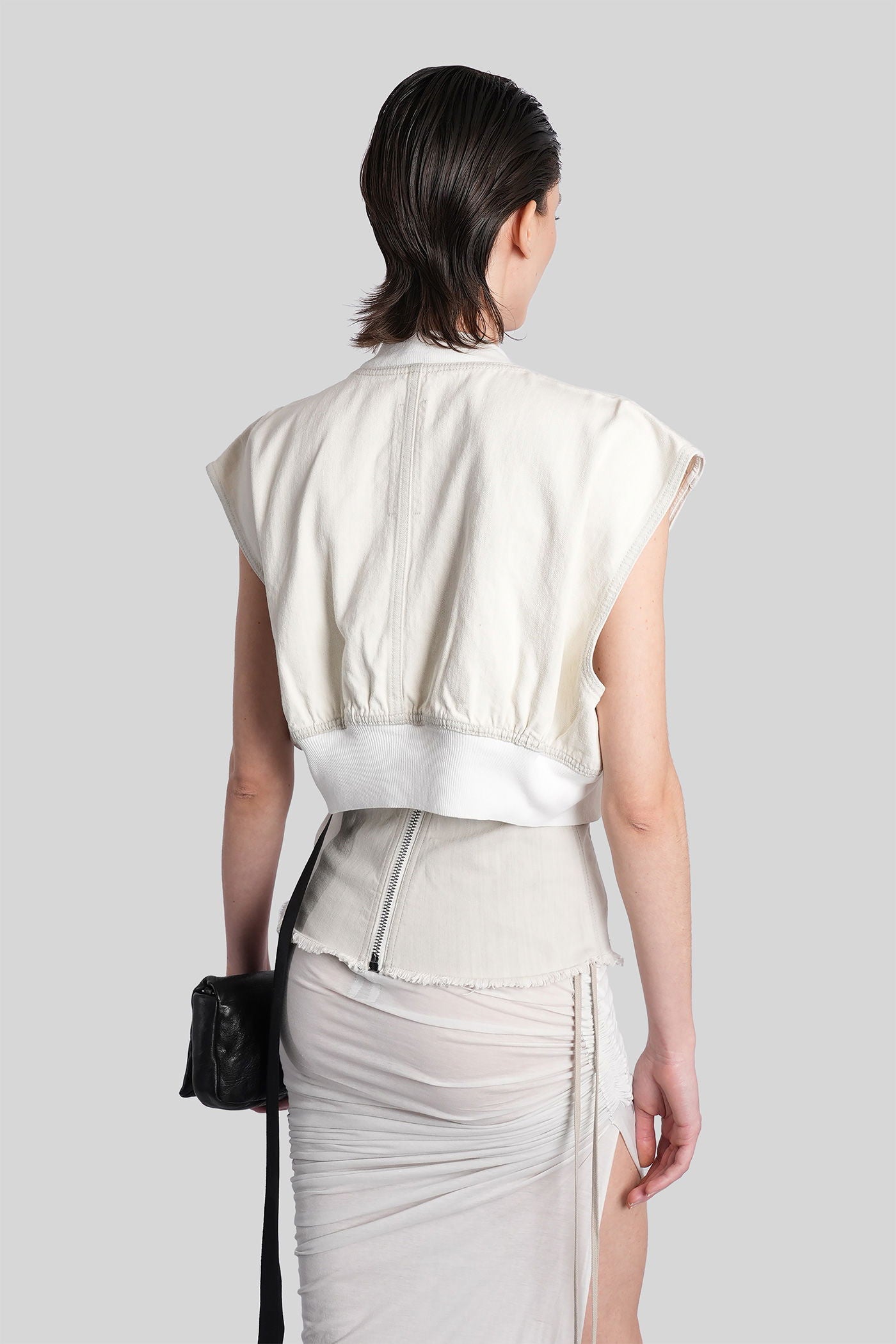 Rick Owens DRKSHDW è l’eco sovversiva e sperimentale del mondo Rick Owens. Nato come linea secondaria nel 2005, DRKSHDW reinterpreta l’estetica iconica del brand—decostruita, brutalista e profondamente personale—in una visione più accessibile e urbana. Silhouette allungate, proporzioni asimmetriche e una palette monocromatica sono elementi chiave di una collezione che esplora la tensione tra lusso e utilità.