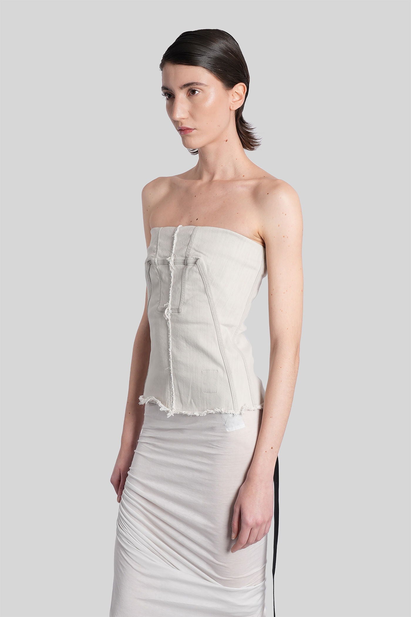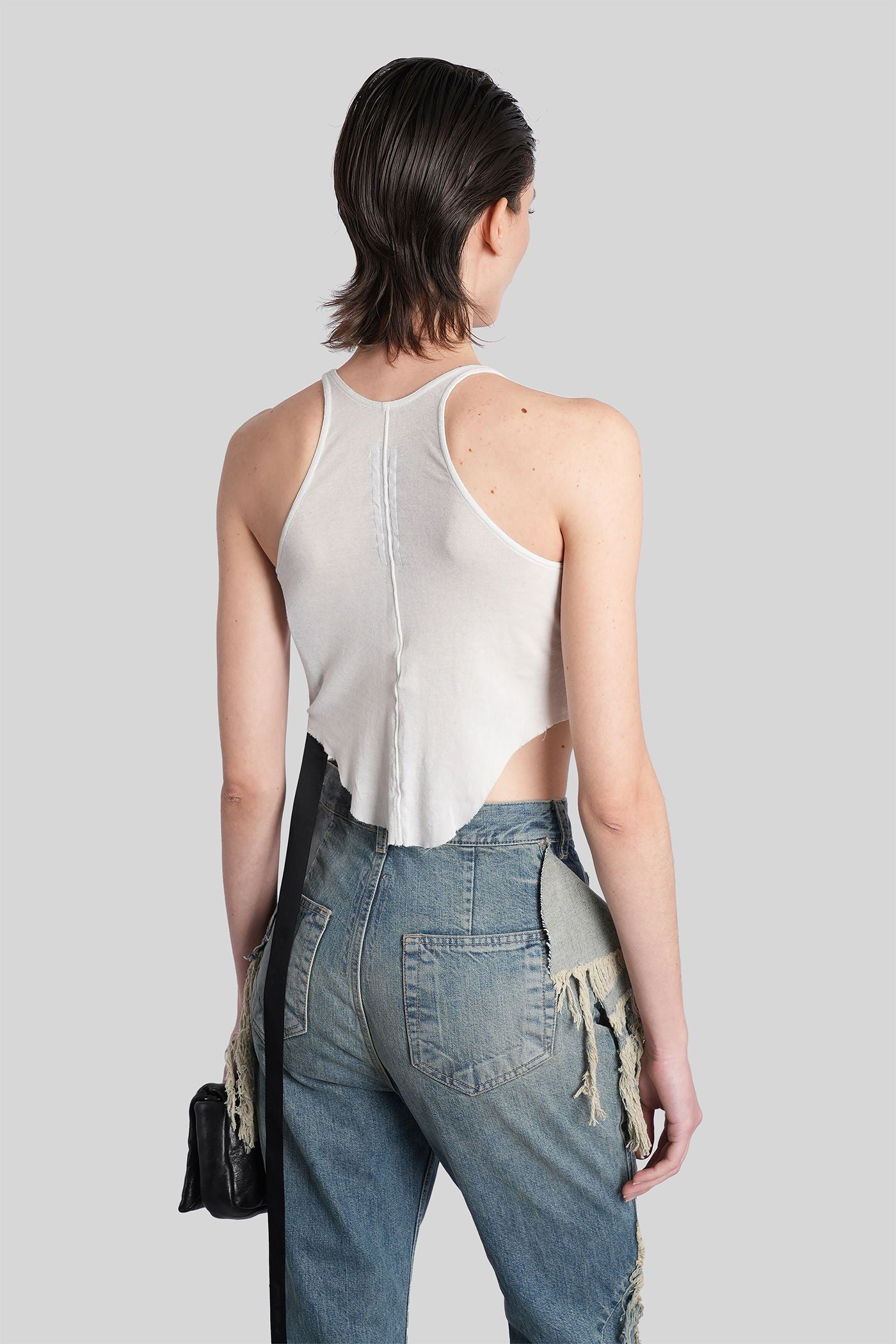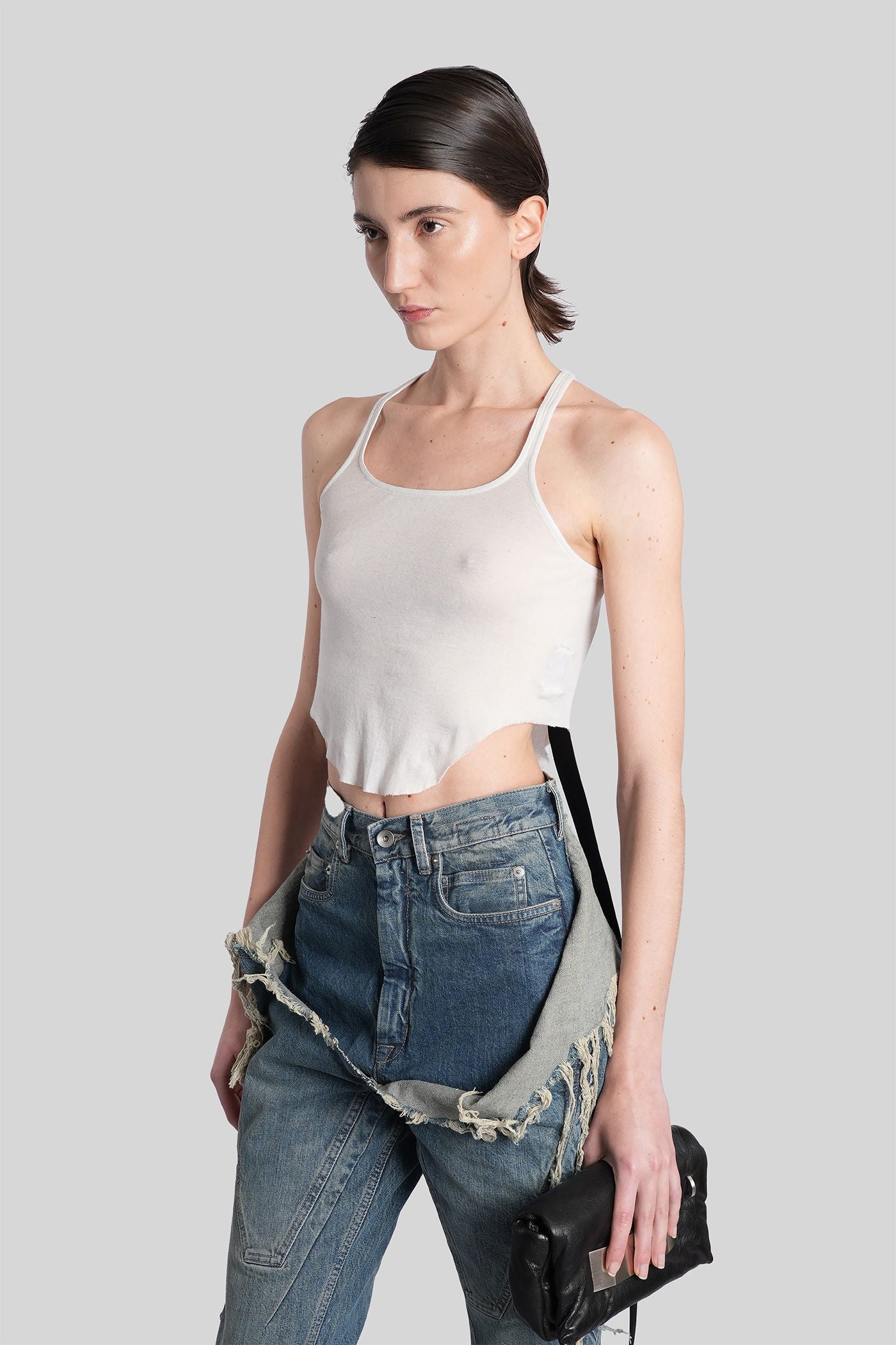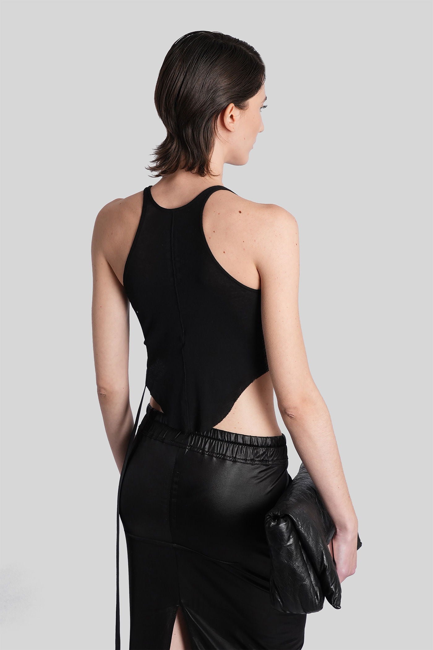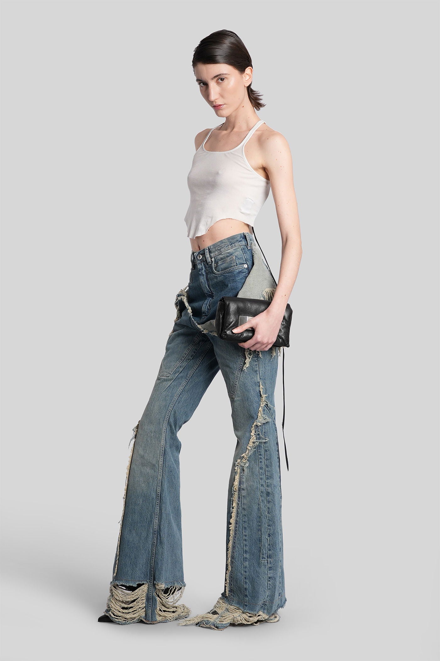 Rick Owens DRKSHDW è l’eco sovversiva e sperimentale del mondo Rick Owens. Nato come linea secondaria nel 2005, DRKSHDW reinterpreta l’estetica iconica del brand—decostruita, brutalista e profondamente personale—in una visione più accessibile e urbana. Silhouette allungate, proporzioni asimmetriche e una palette monocromatica sono elementi chiave di una collezione che esplora la tensione tra lusso e utilità.