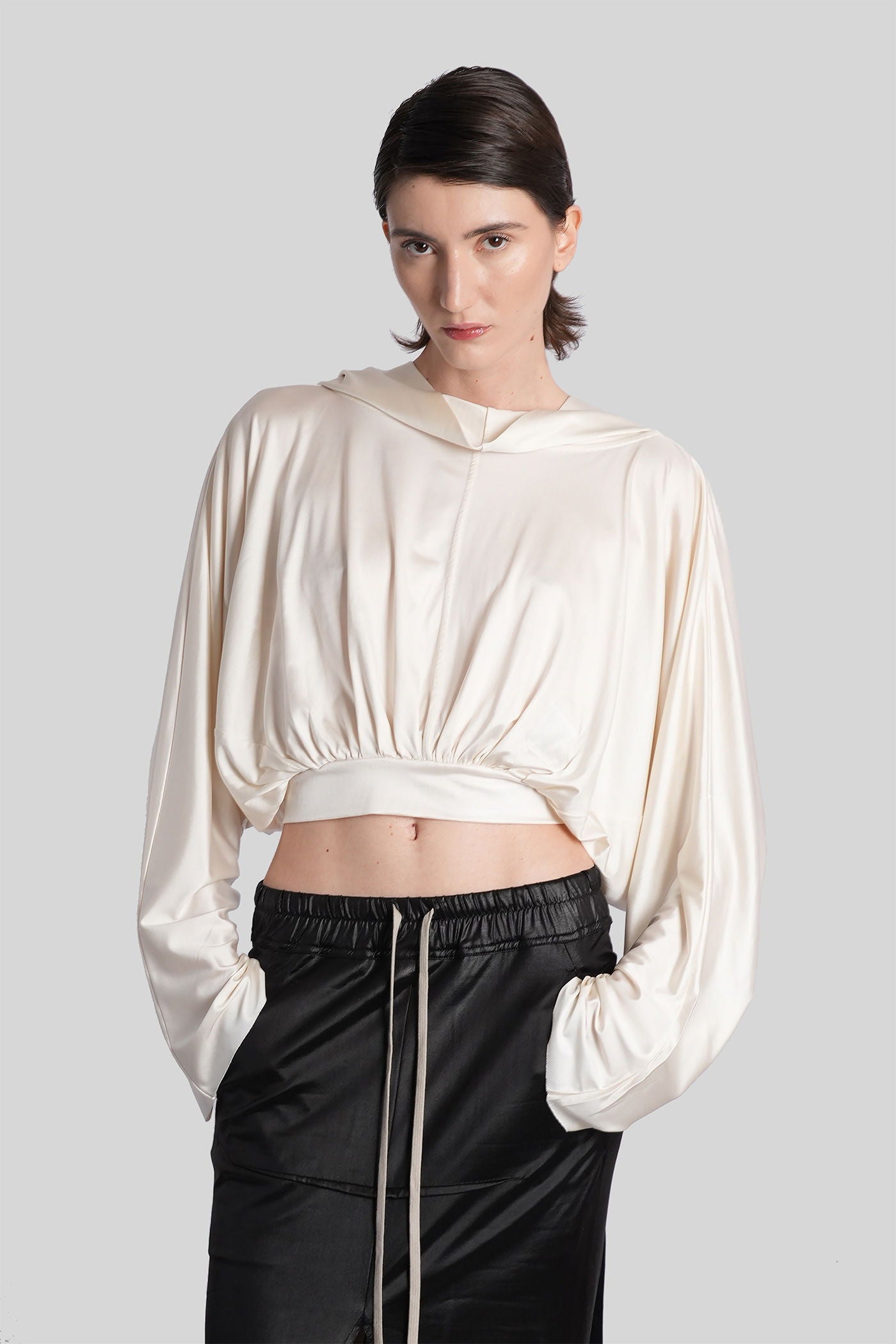 Cropped hooded top Topwear in beige acetate