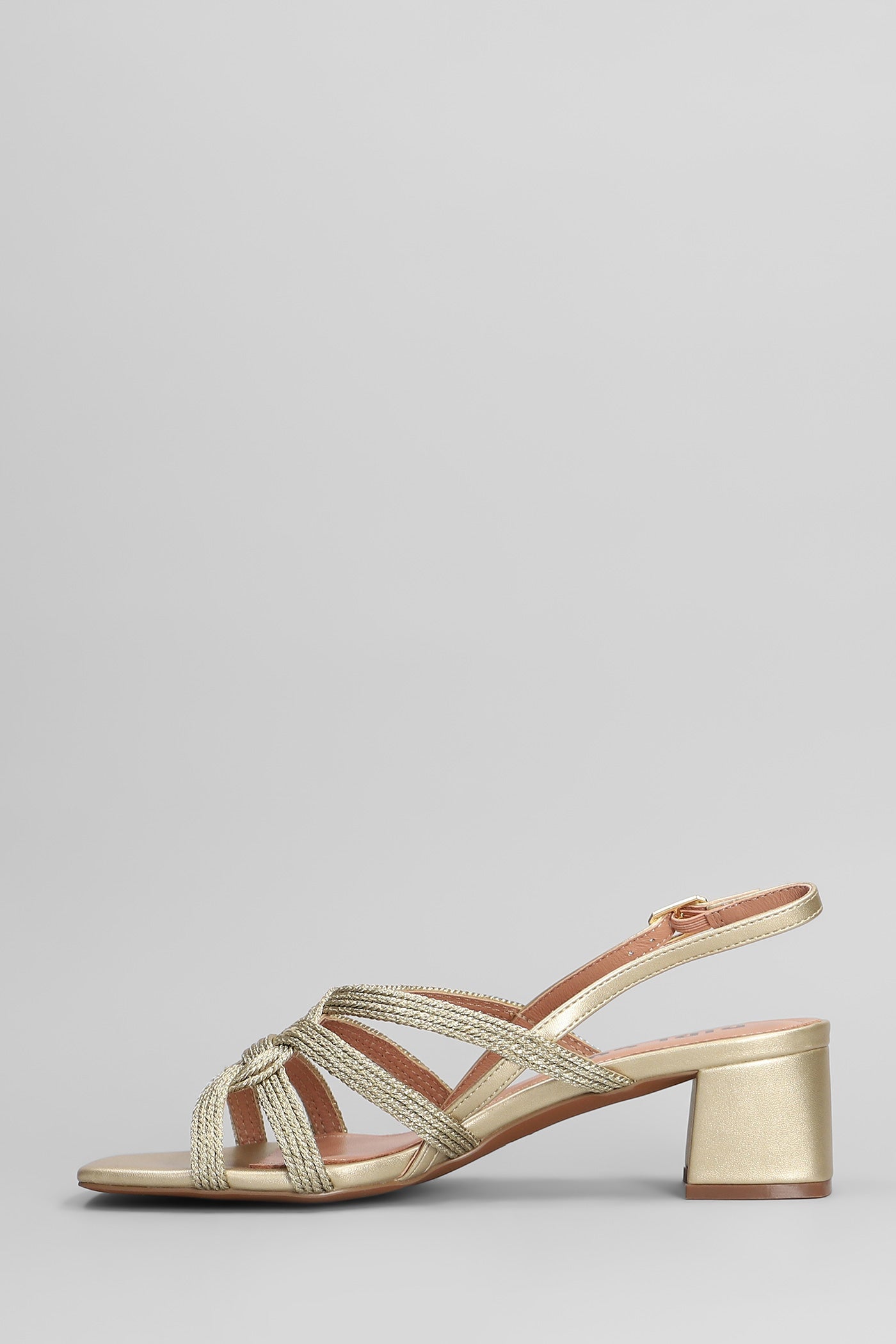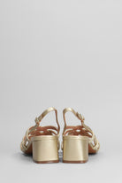 Elea Sandals in gold leather and fabric