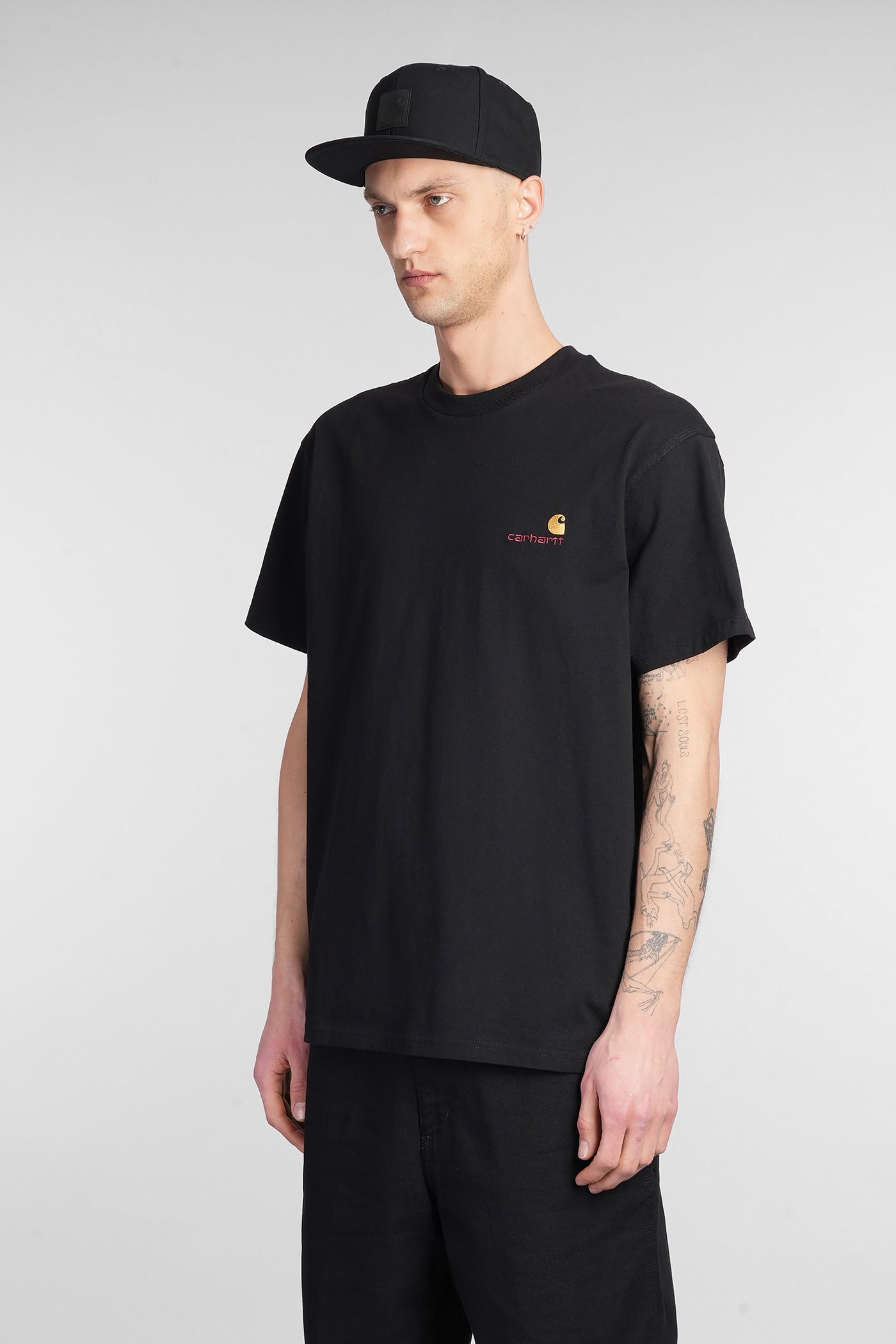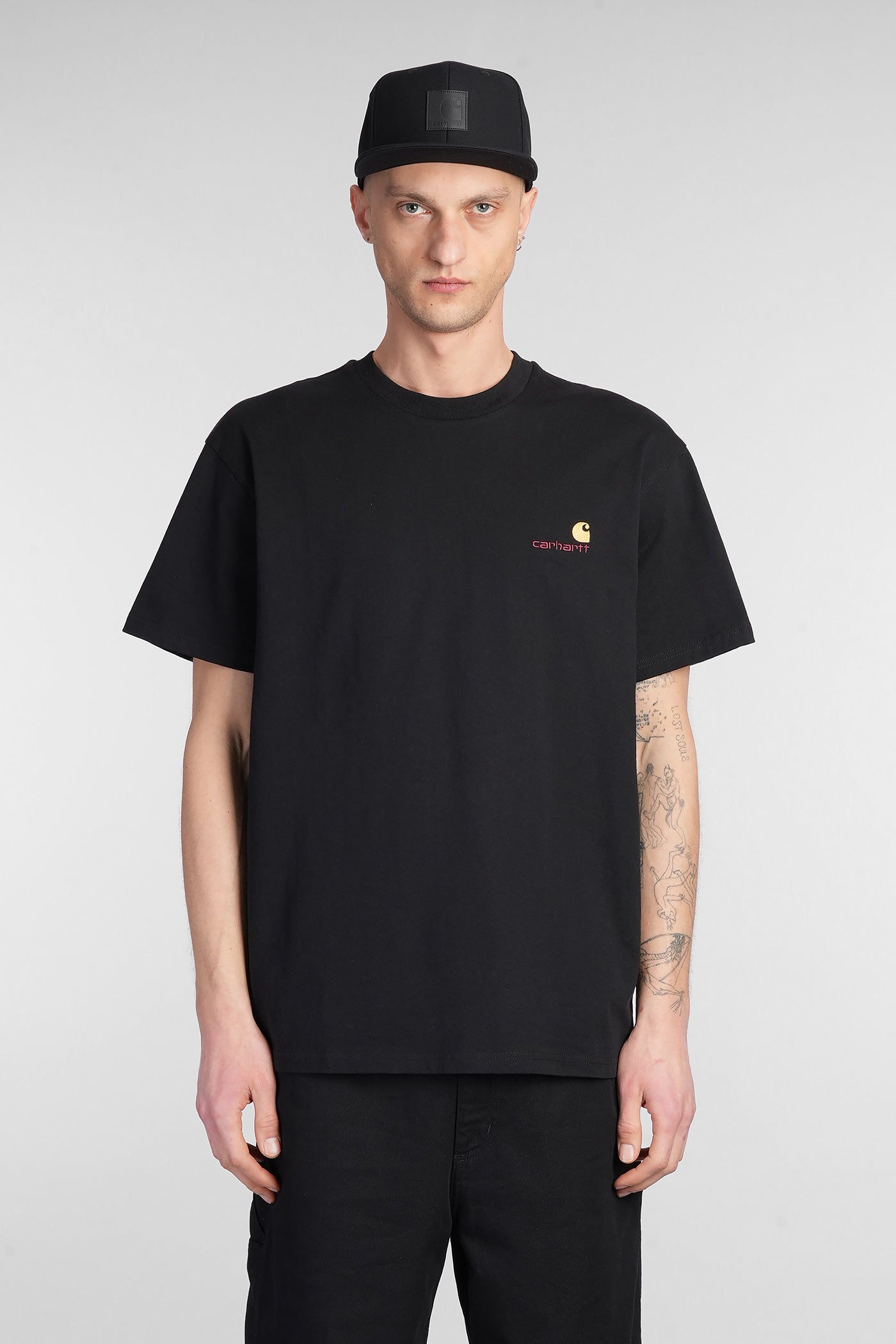 S-S American Script T-Shirt in black cotton