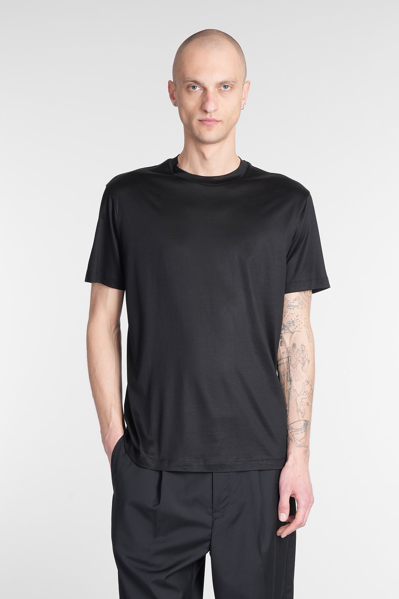T-Shirt in black wool and polyester
