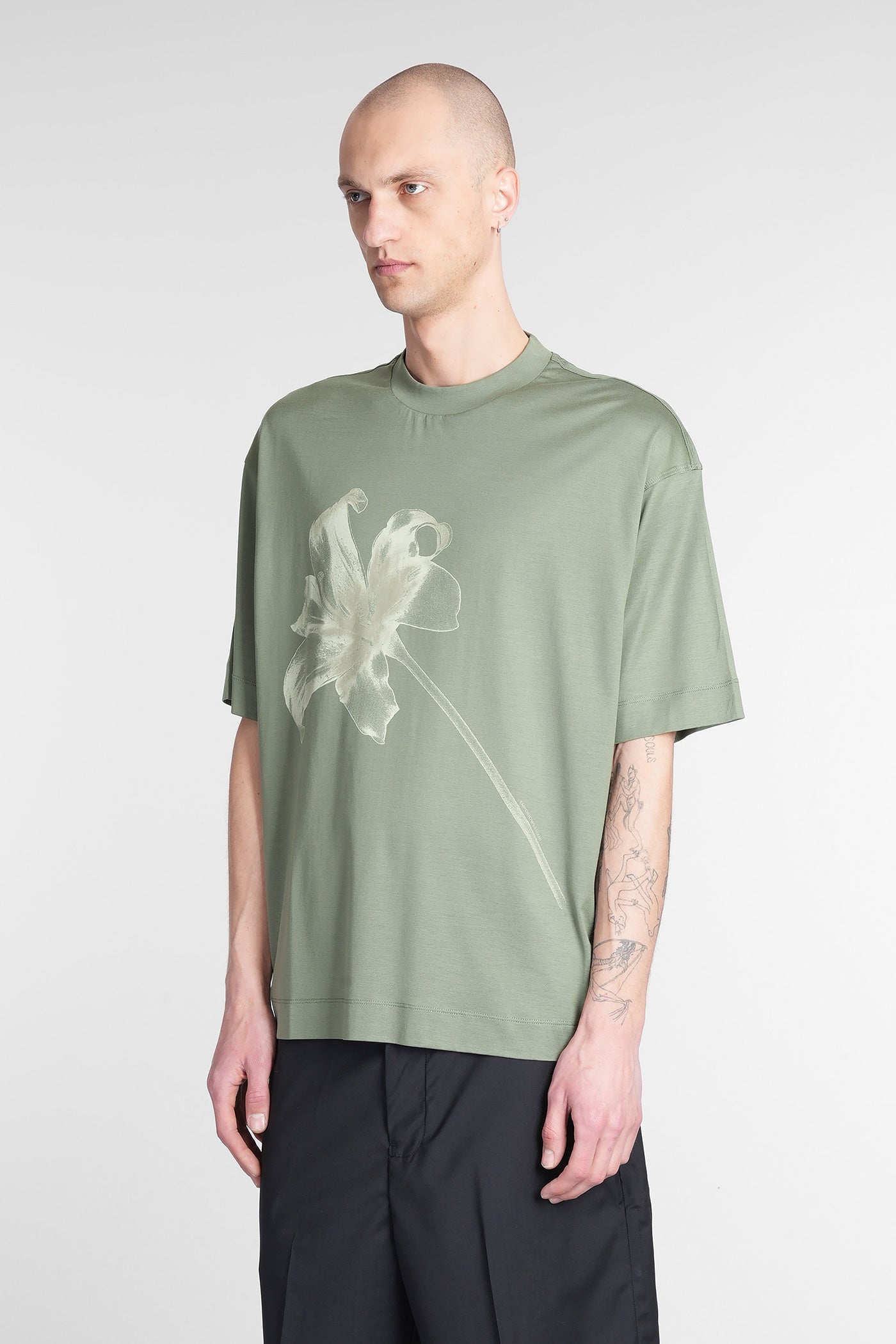 T-Shirt in green wool and polyester