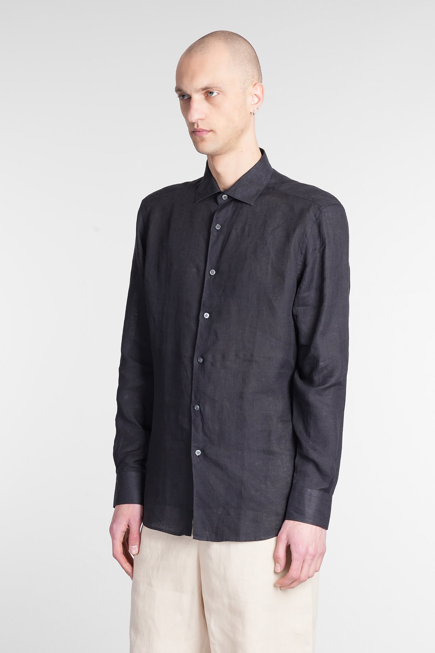 Shirt in black linen