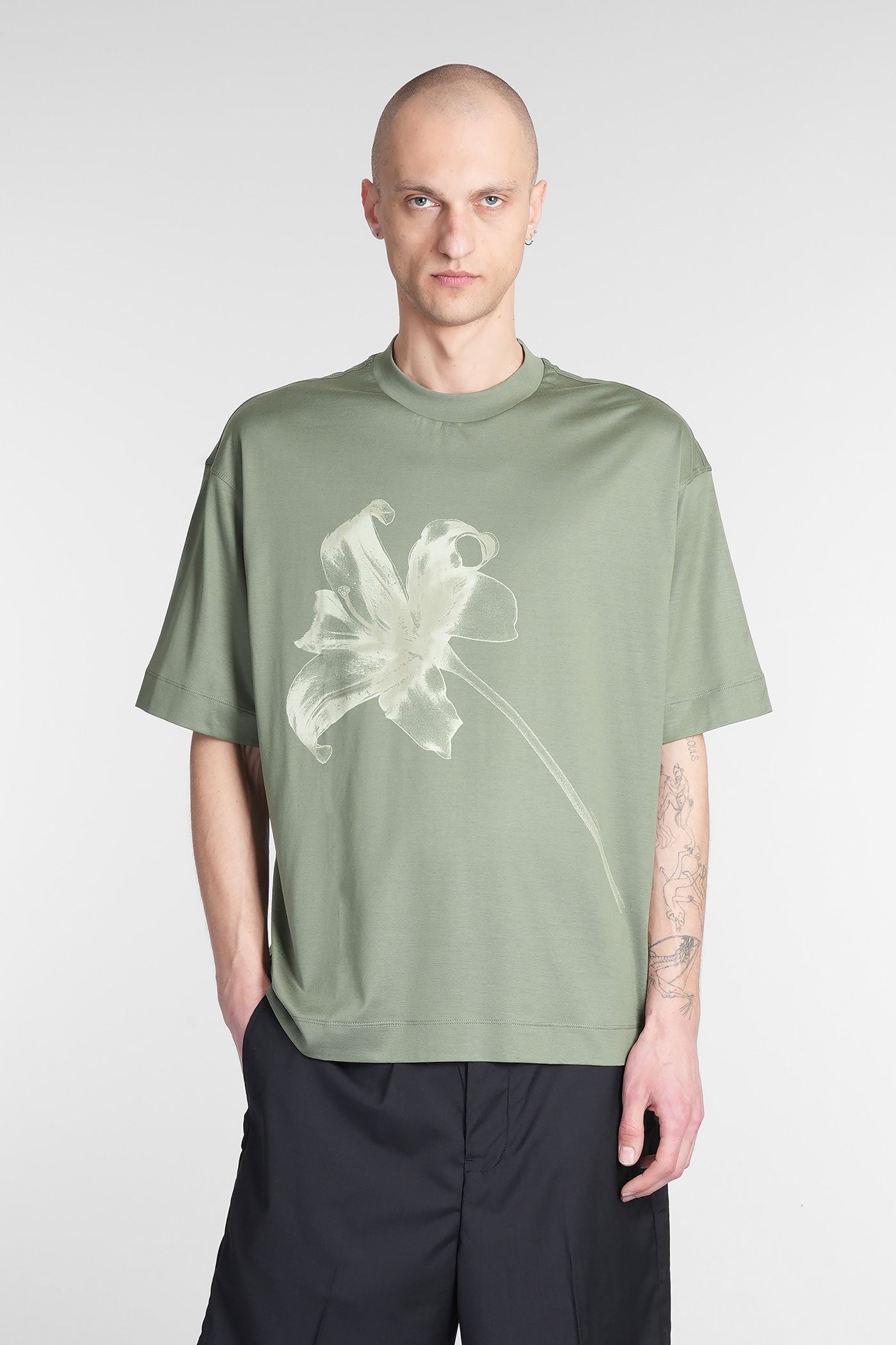 T-Shirt in green wool and polyester