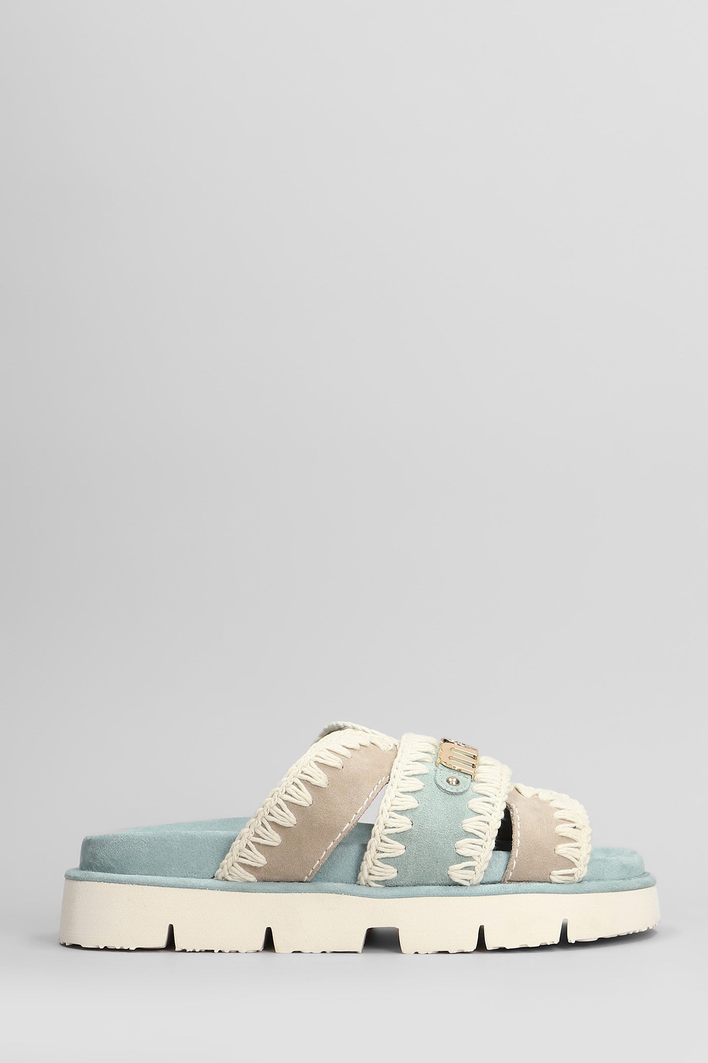 Bio sandal Flats in cyan suede