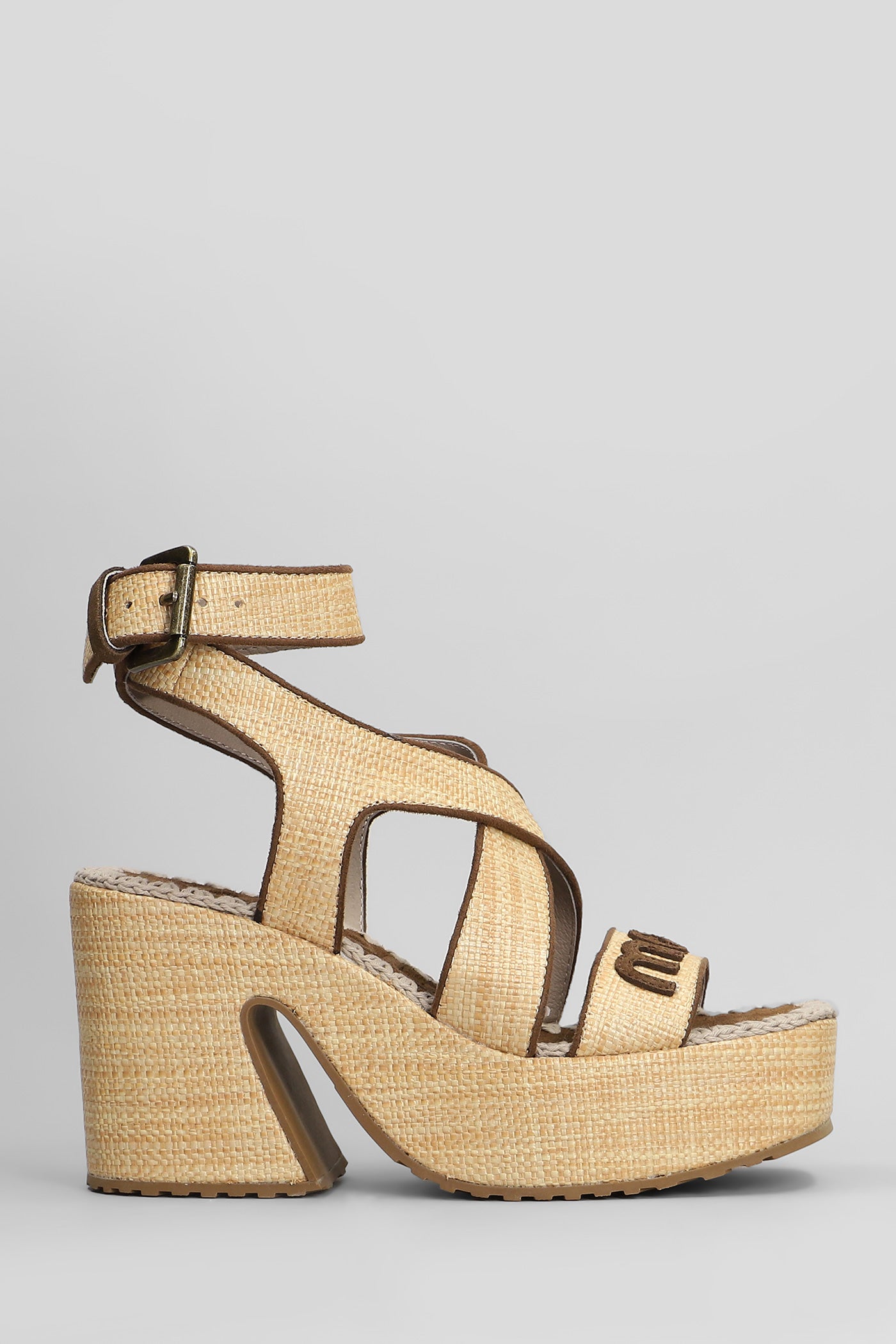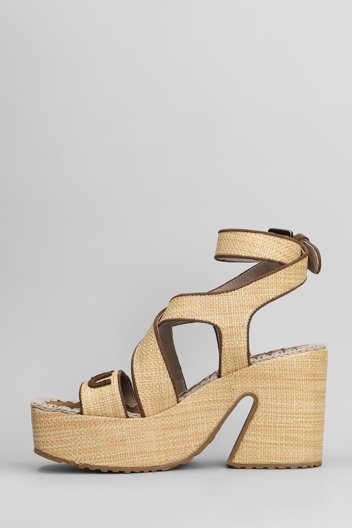 Raffia platform Sandals in beige raffia