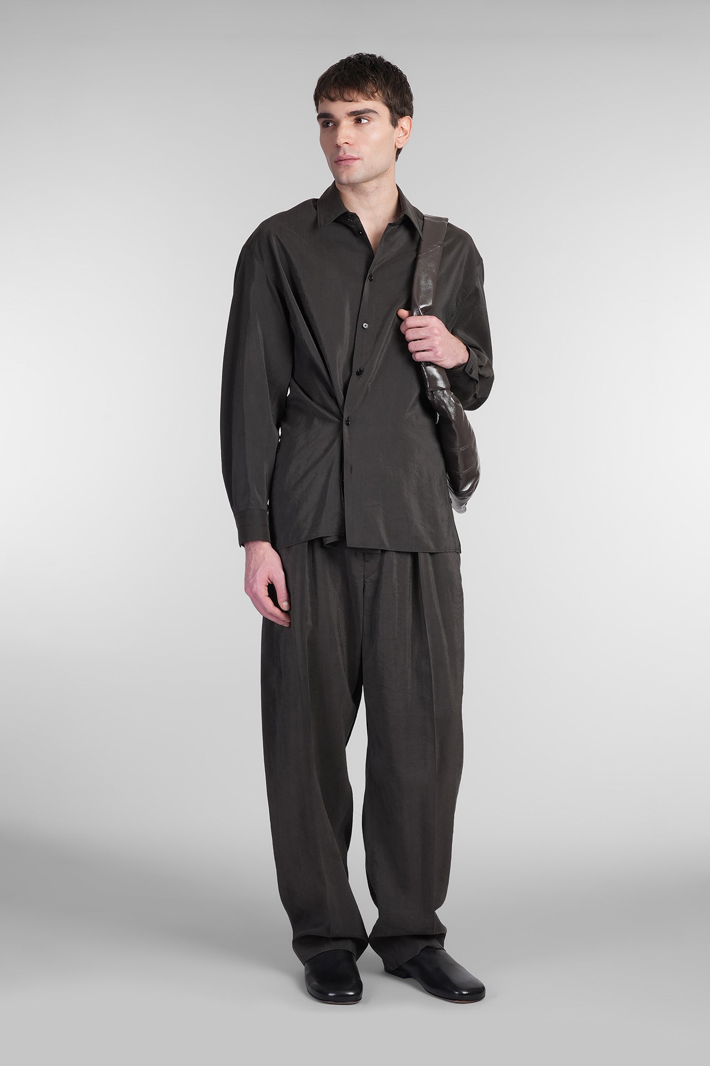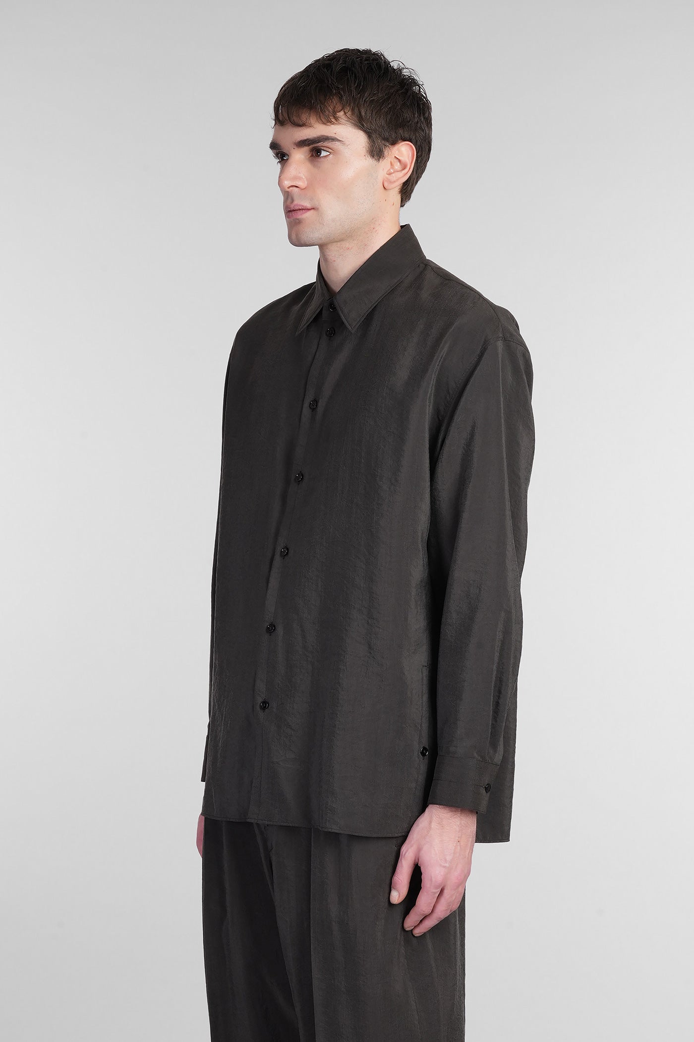 Shirt in brown silk
