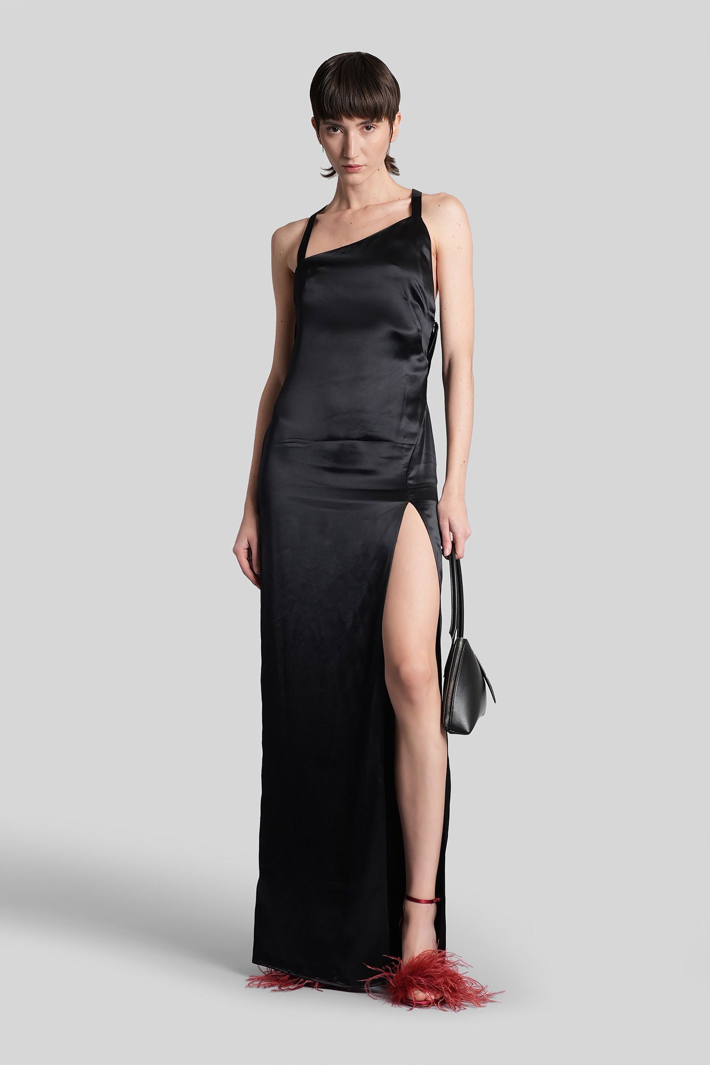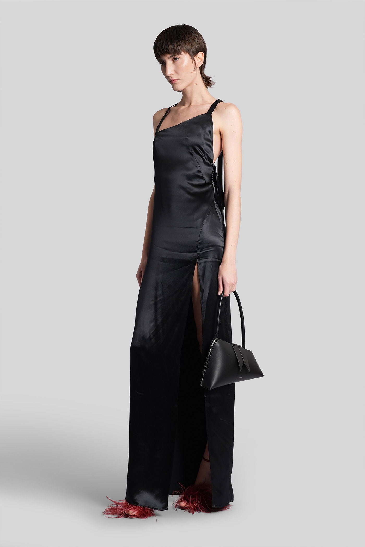 Long dress in black viscose