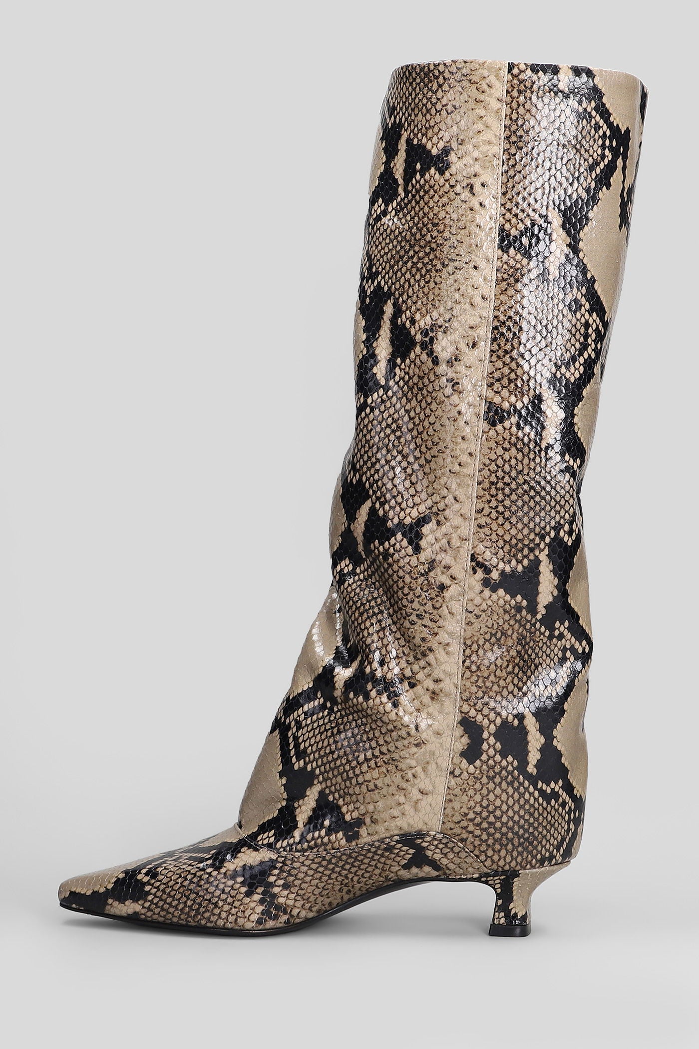 low heels boots in beige leather