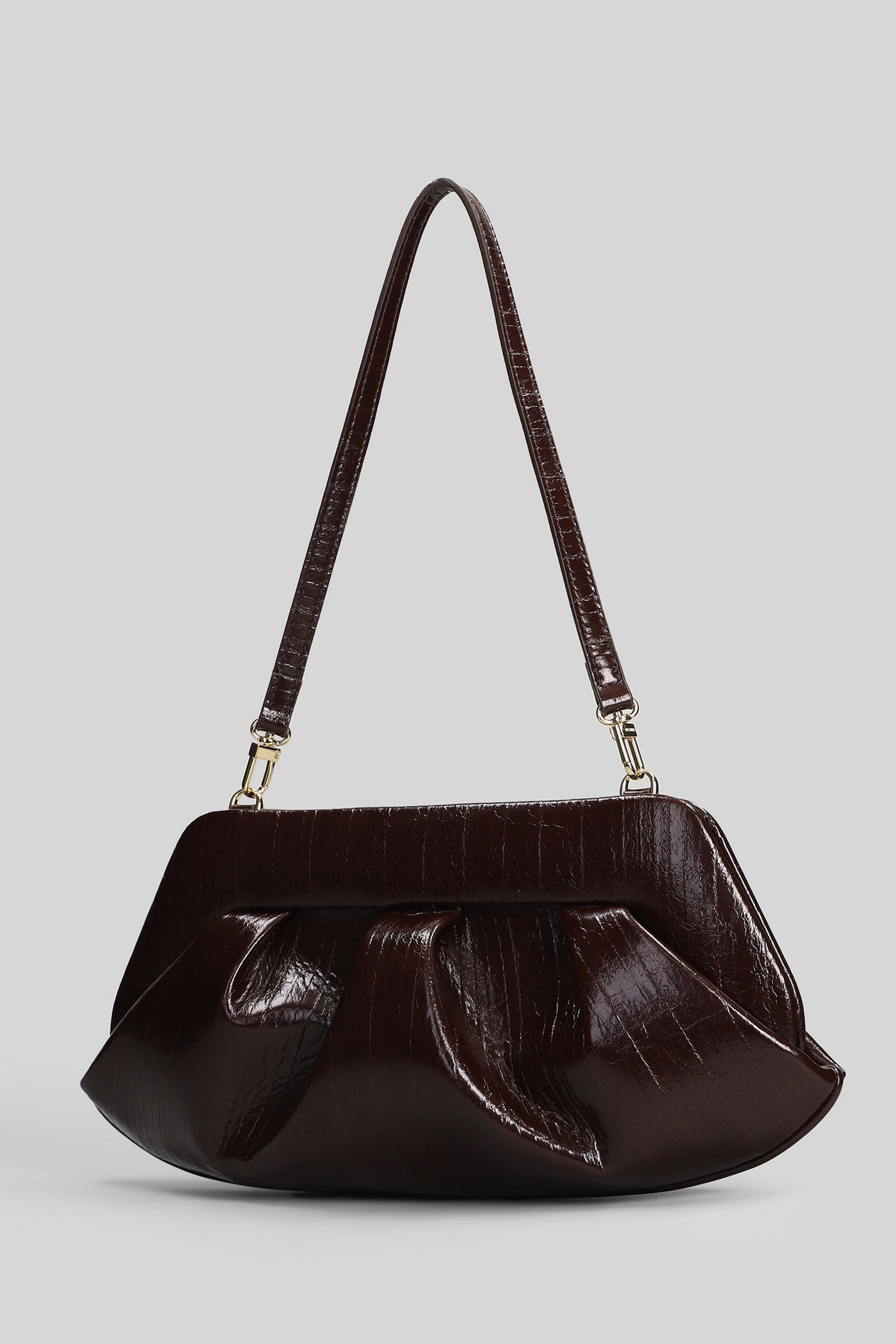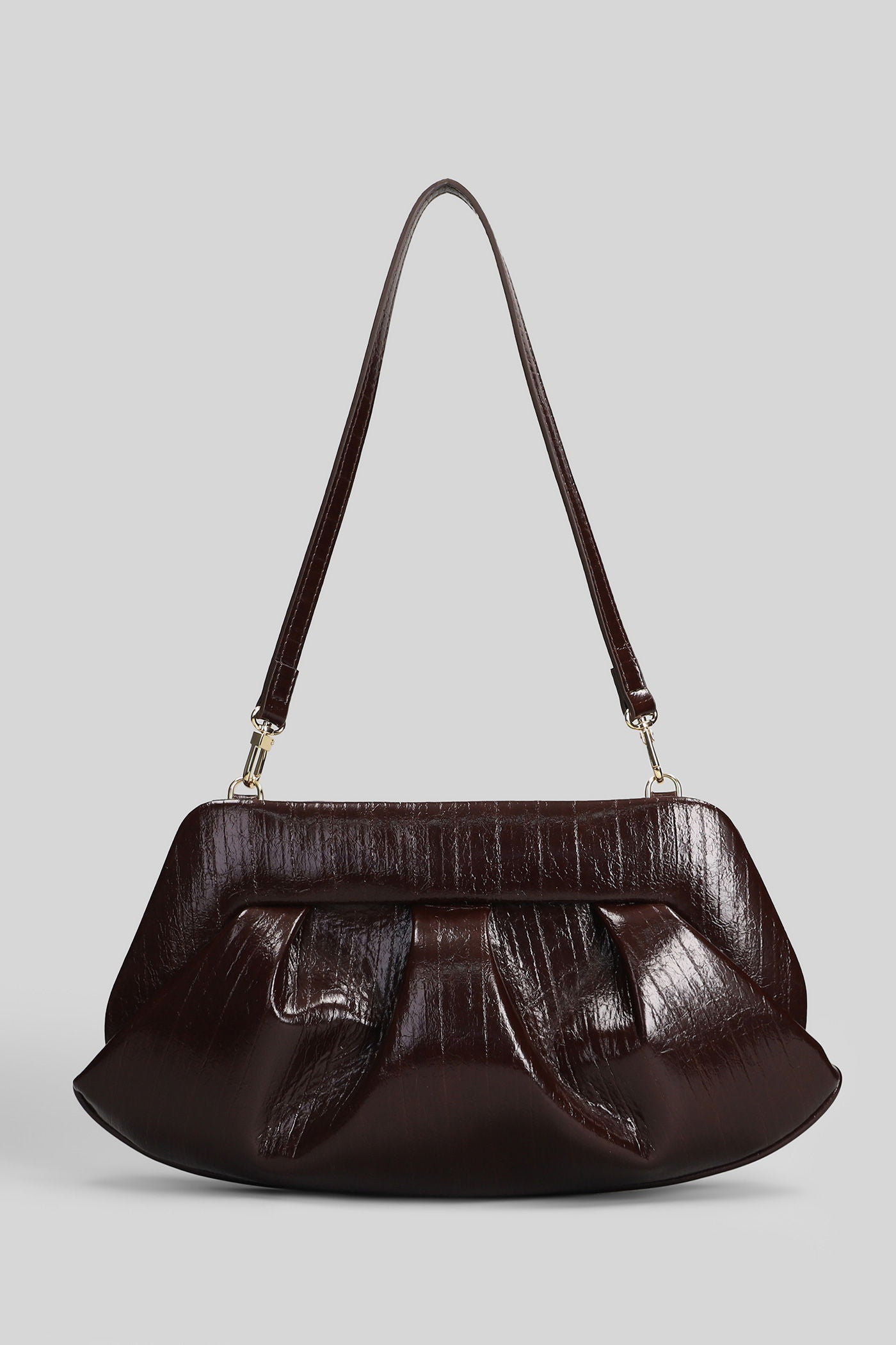 Bios Baguette Rigato Clutch in brown faux leather