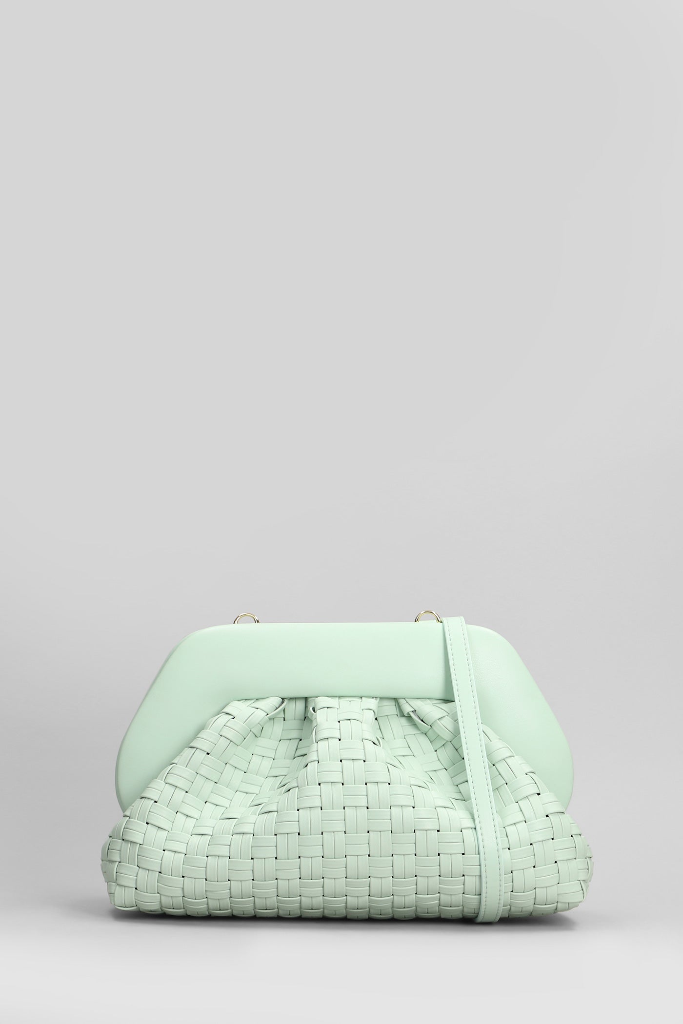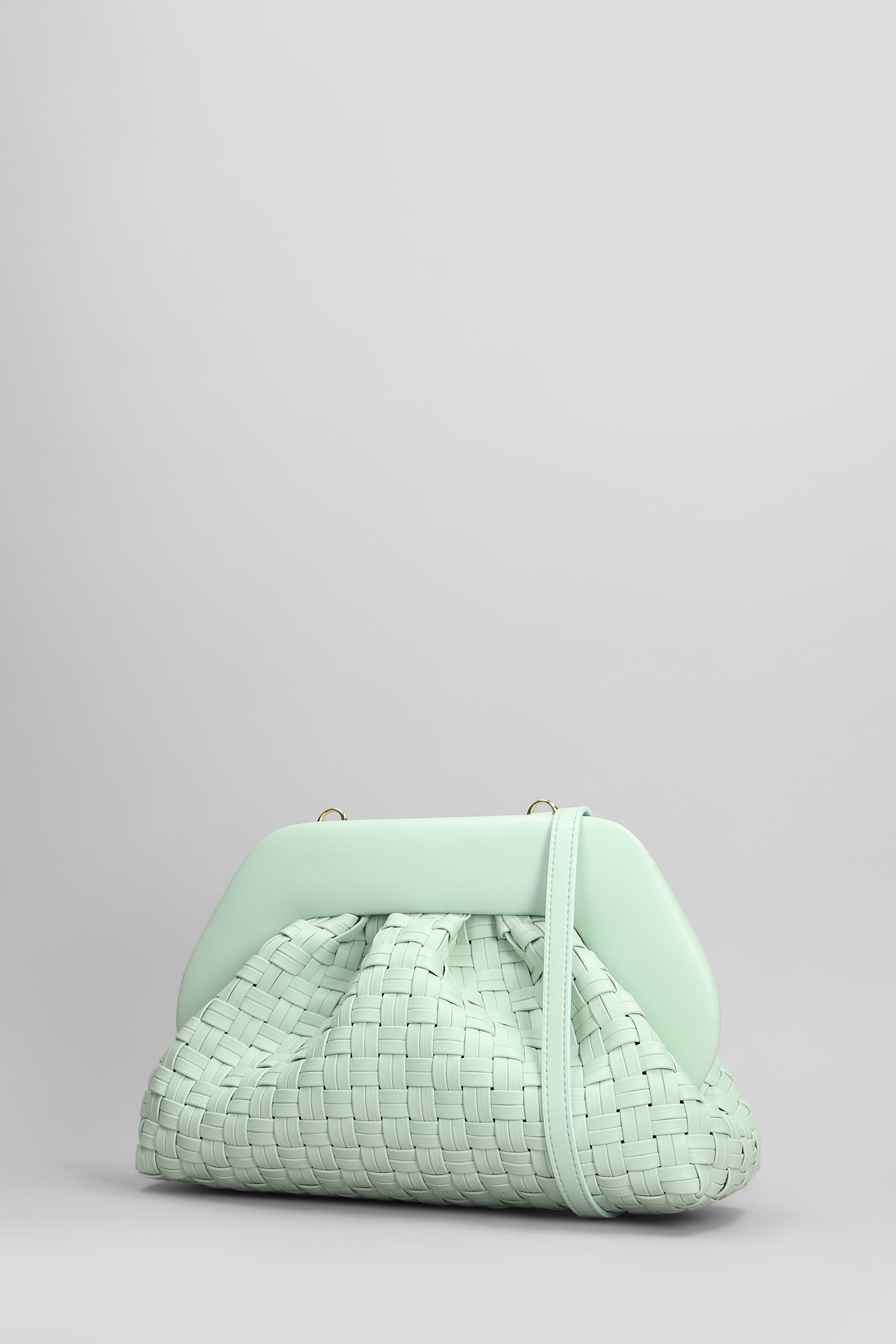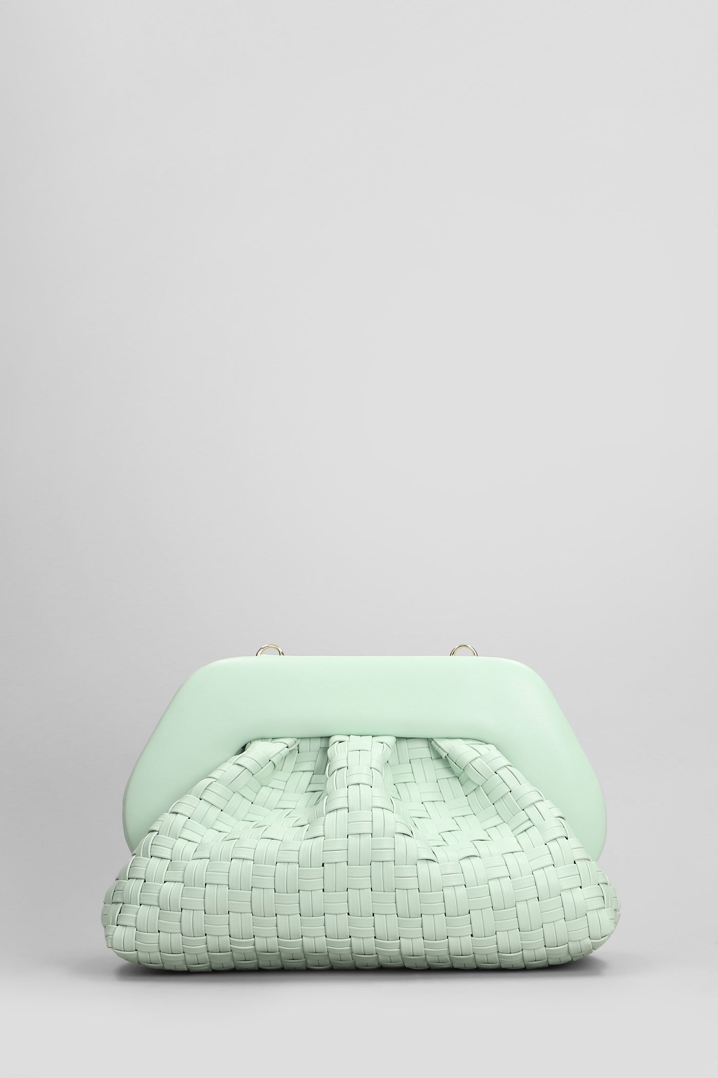 Tia Micro Weaved Clutch in green faux leather