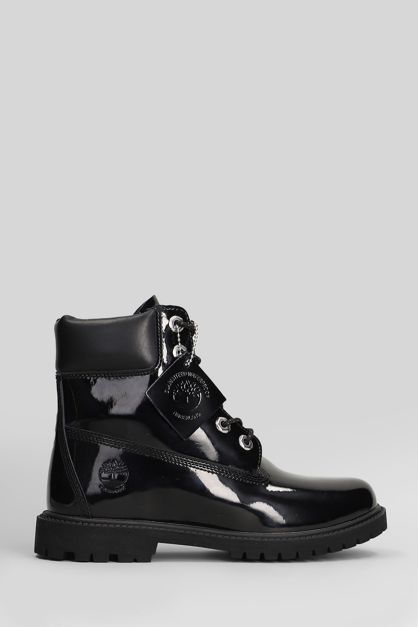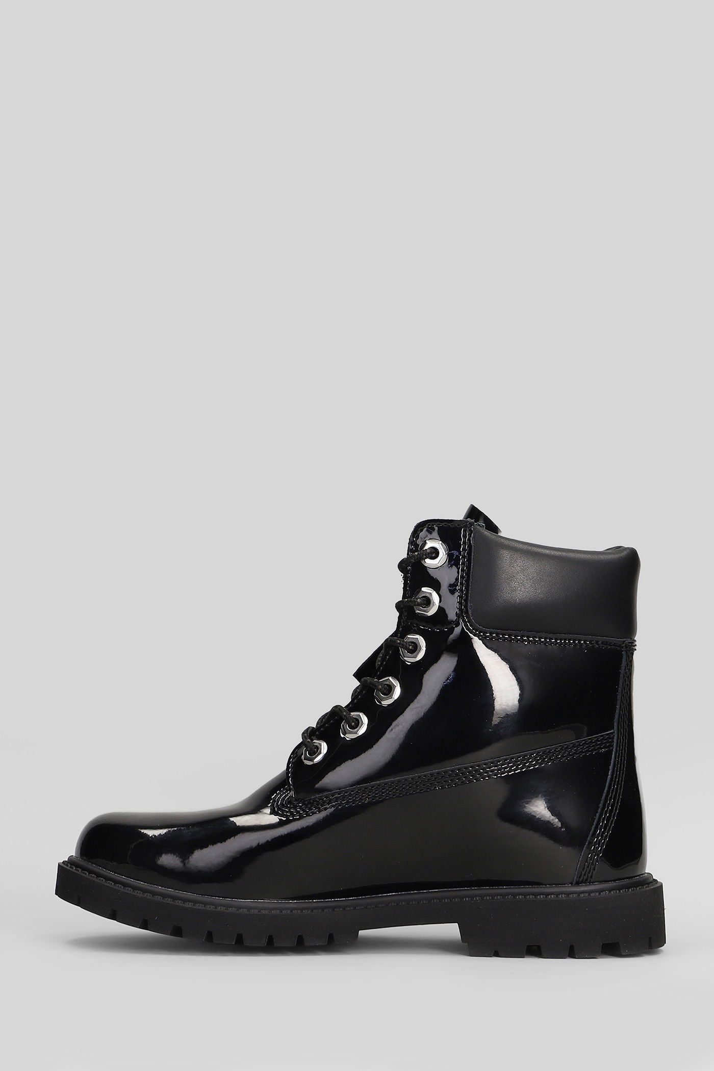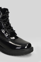 Premium 6 In Lace Combat boots in black patent leather