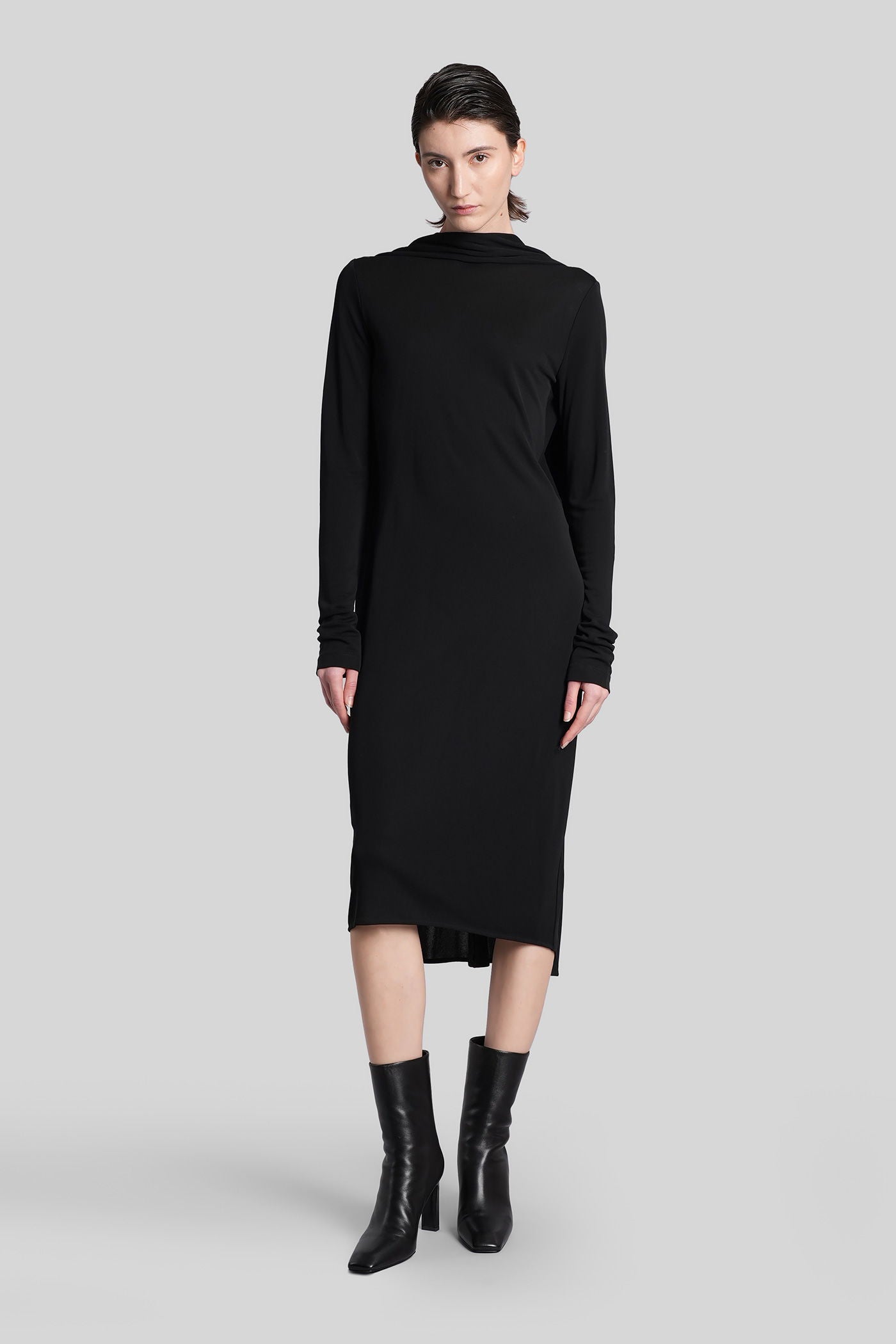 Long dress in black viscose