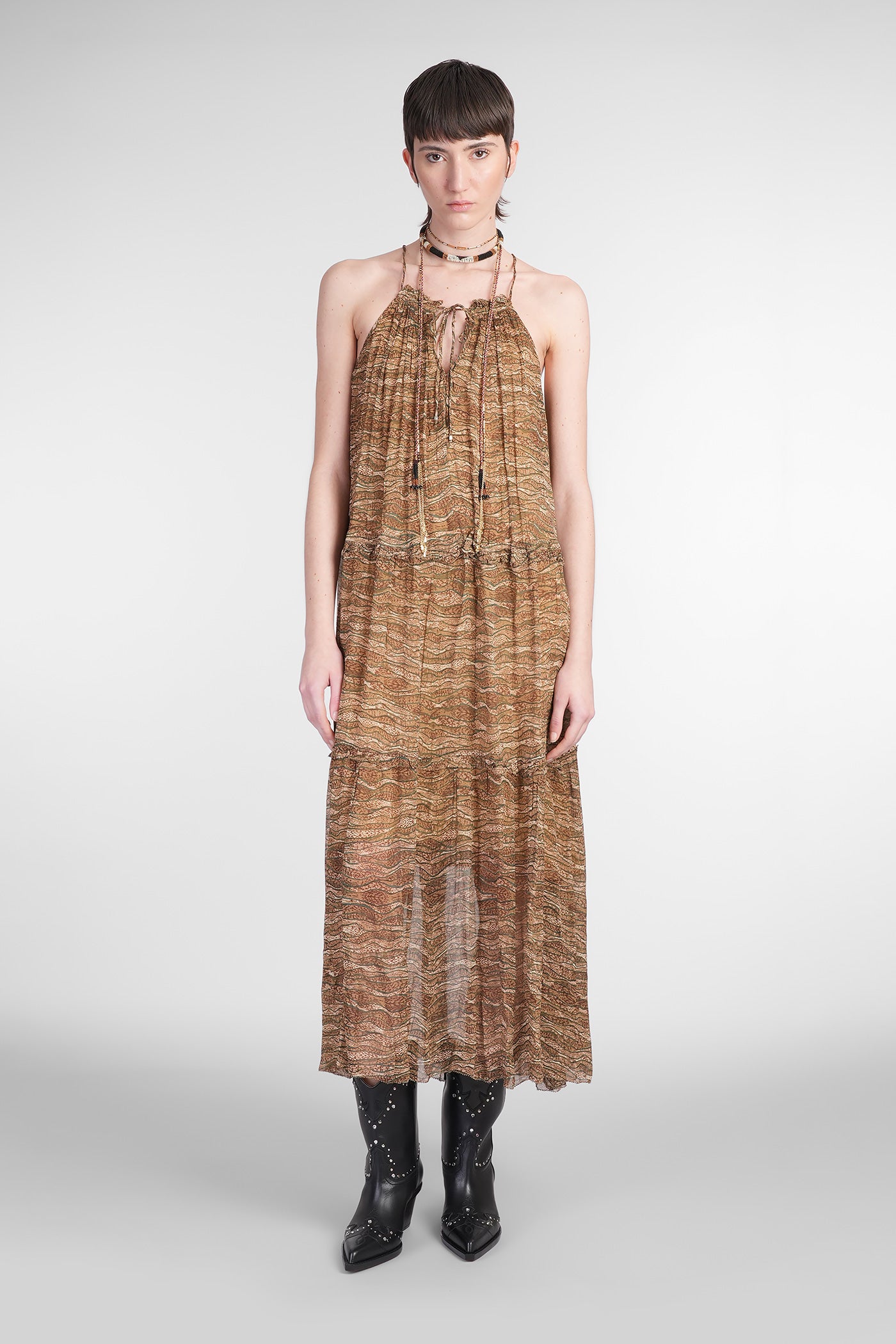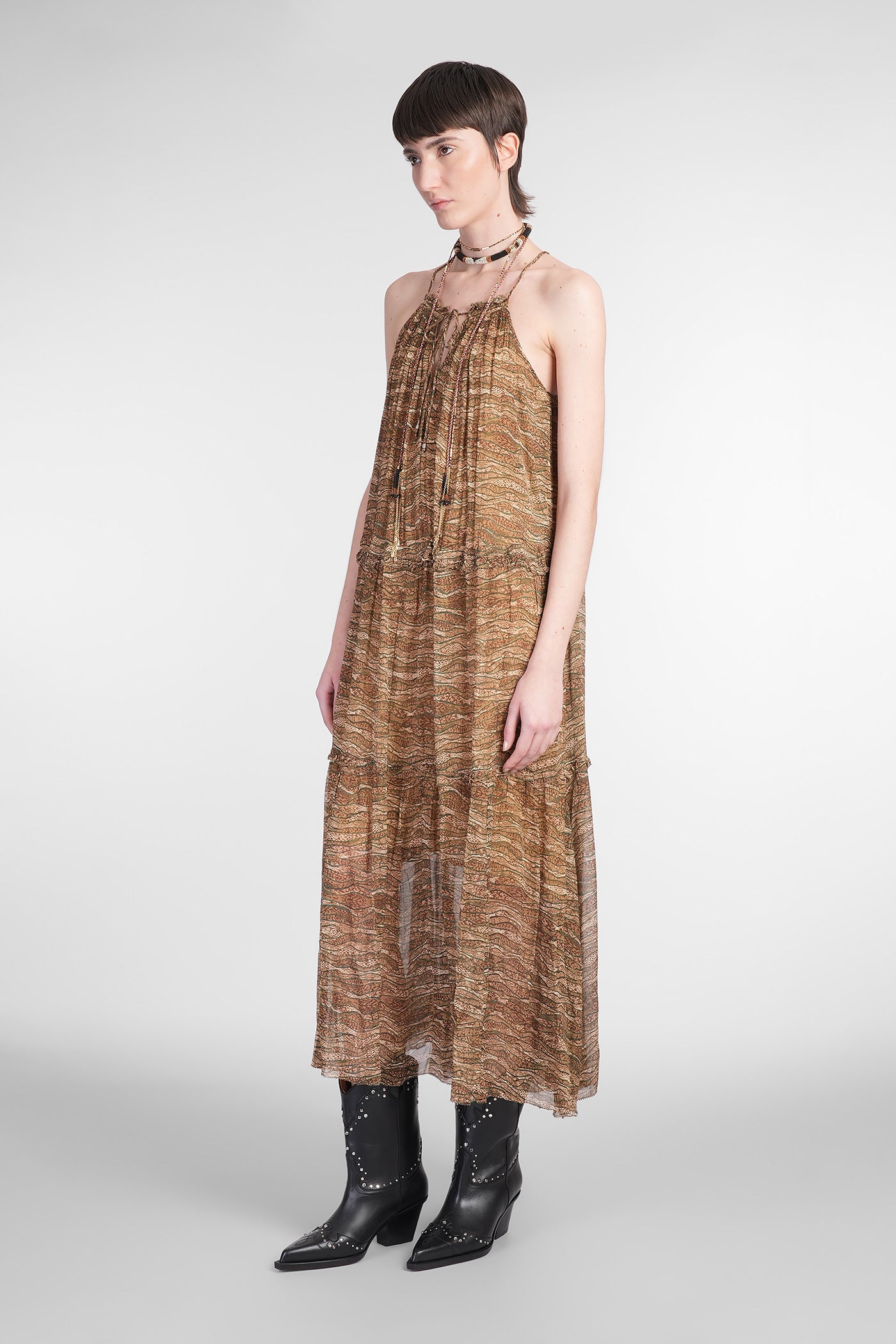 Alita Long dress in khaki viscose