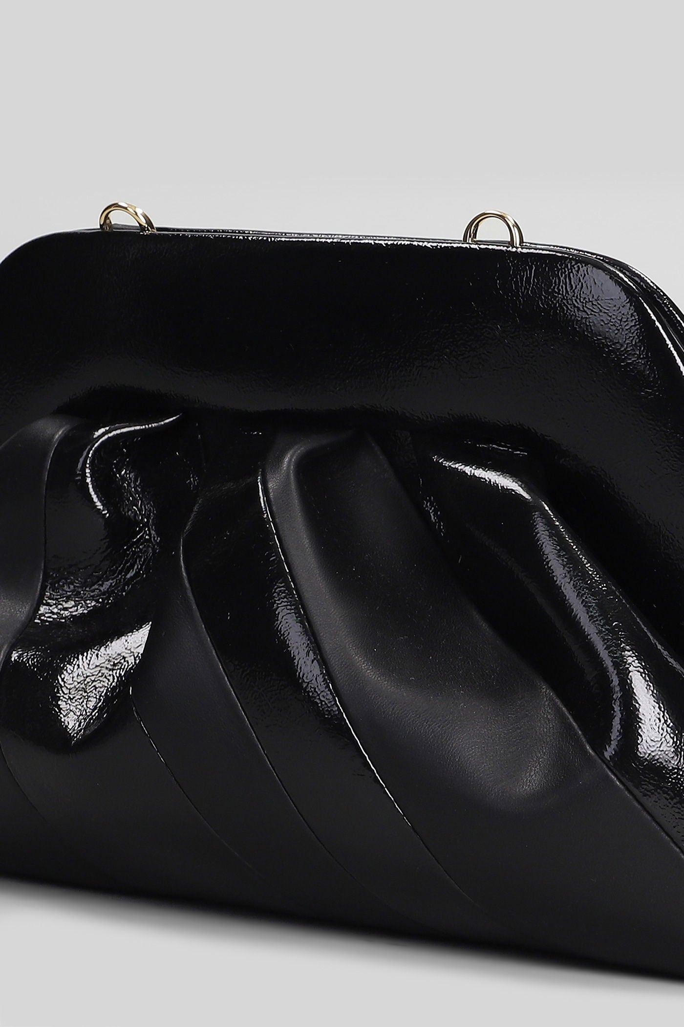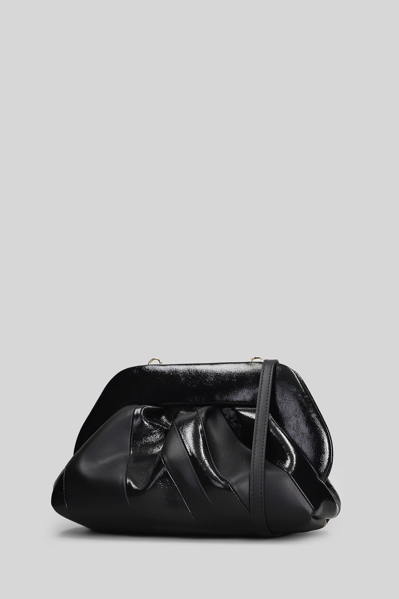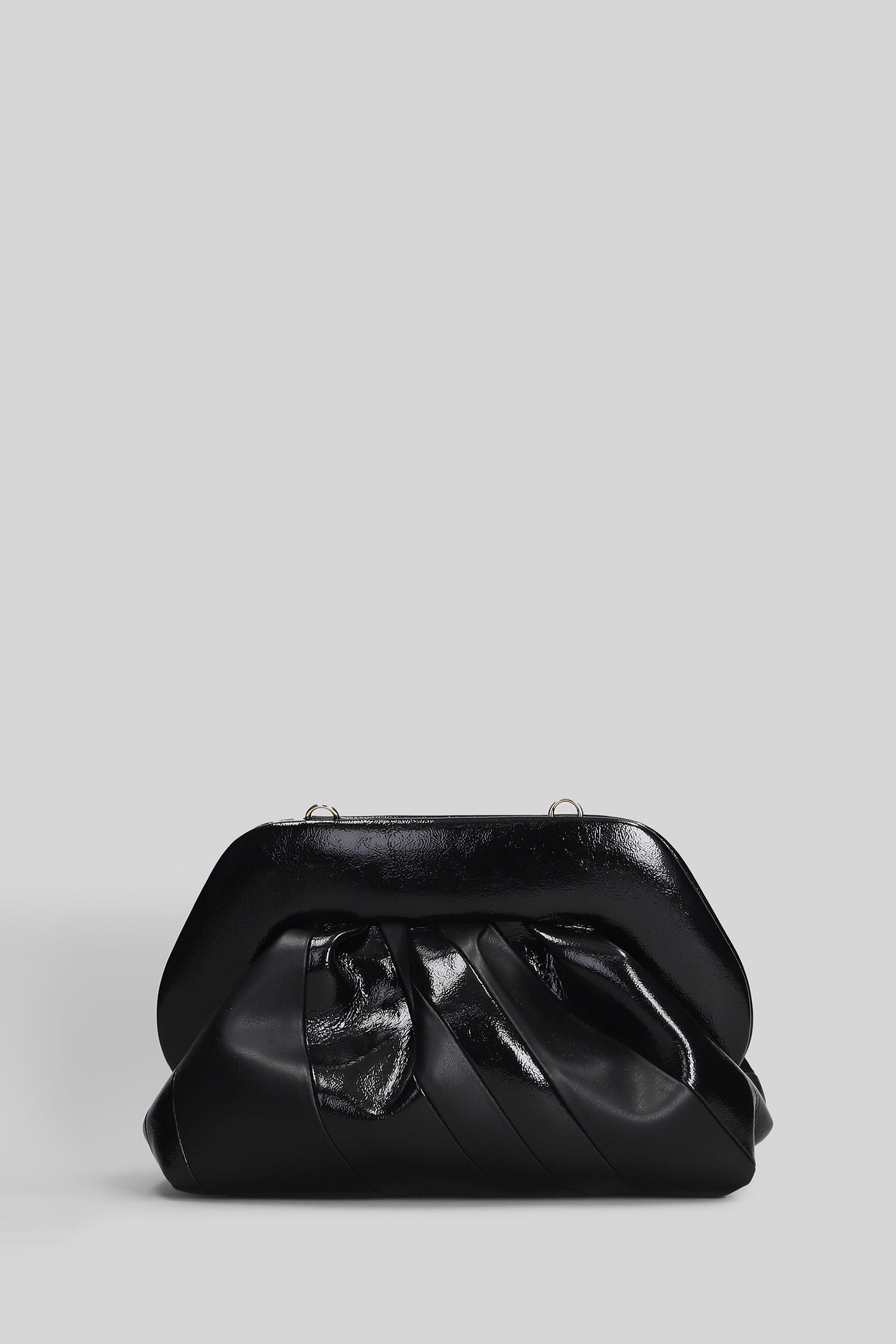 Tia Stripes Clutch in black faux leather
