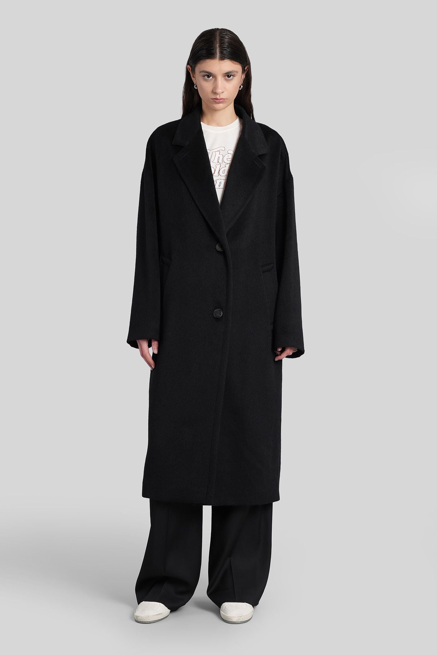 Cocoon Coat Coat in black wool