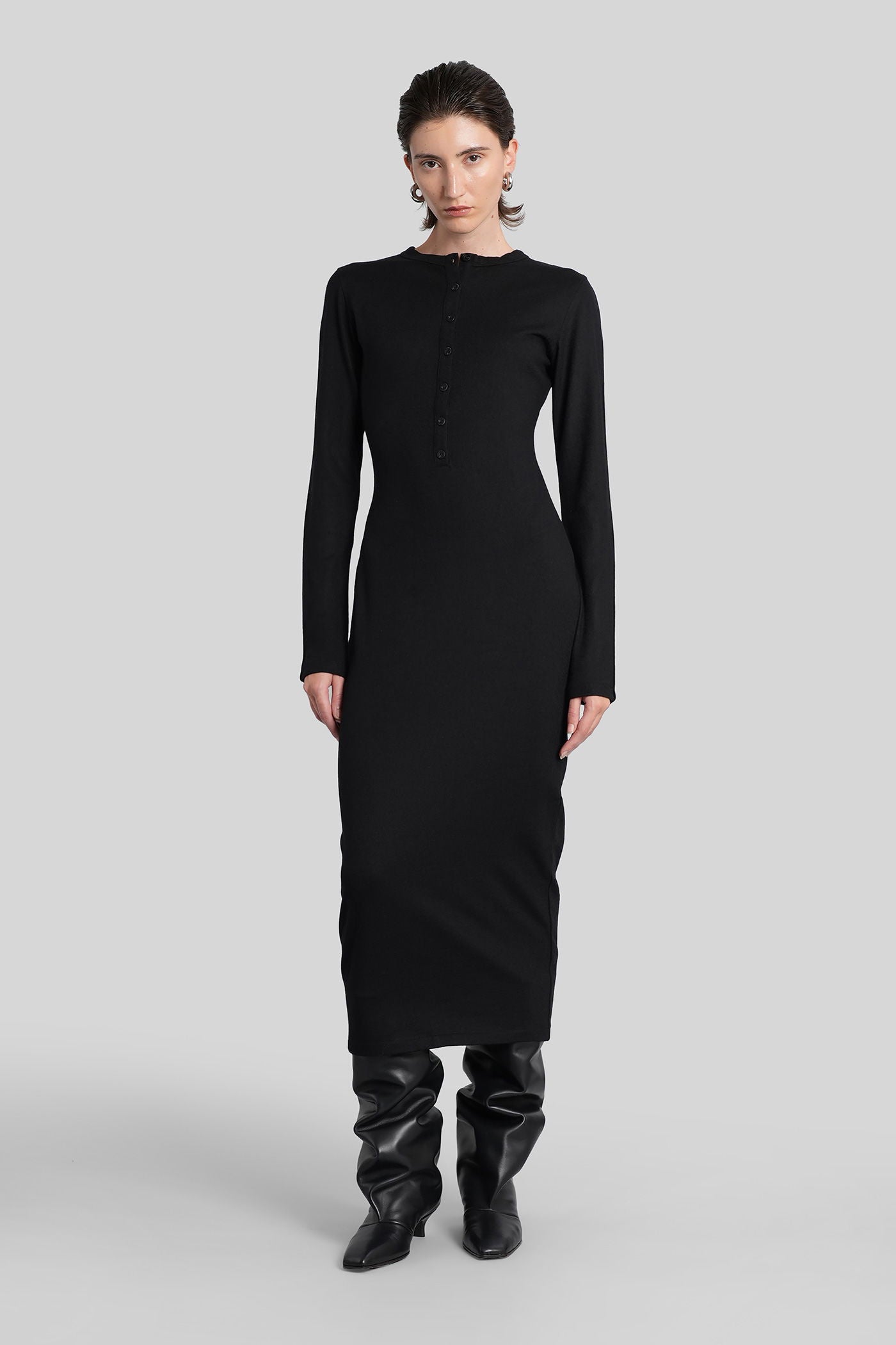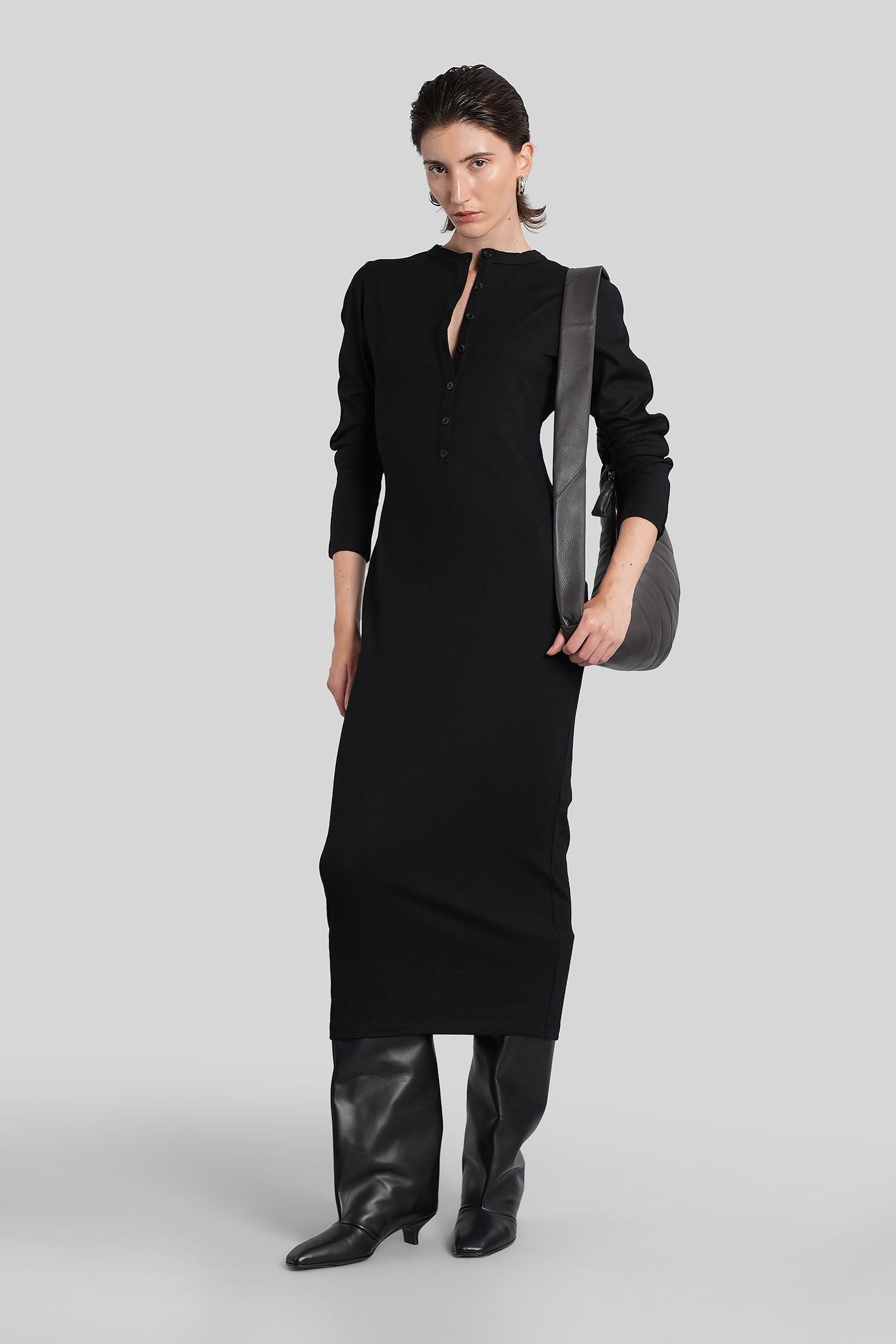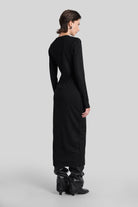 City wool Long dress in black wool