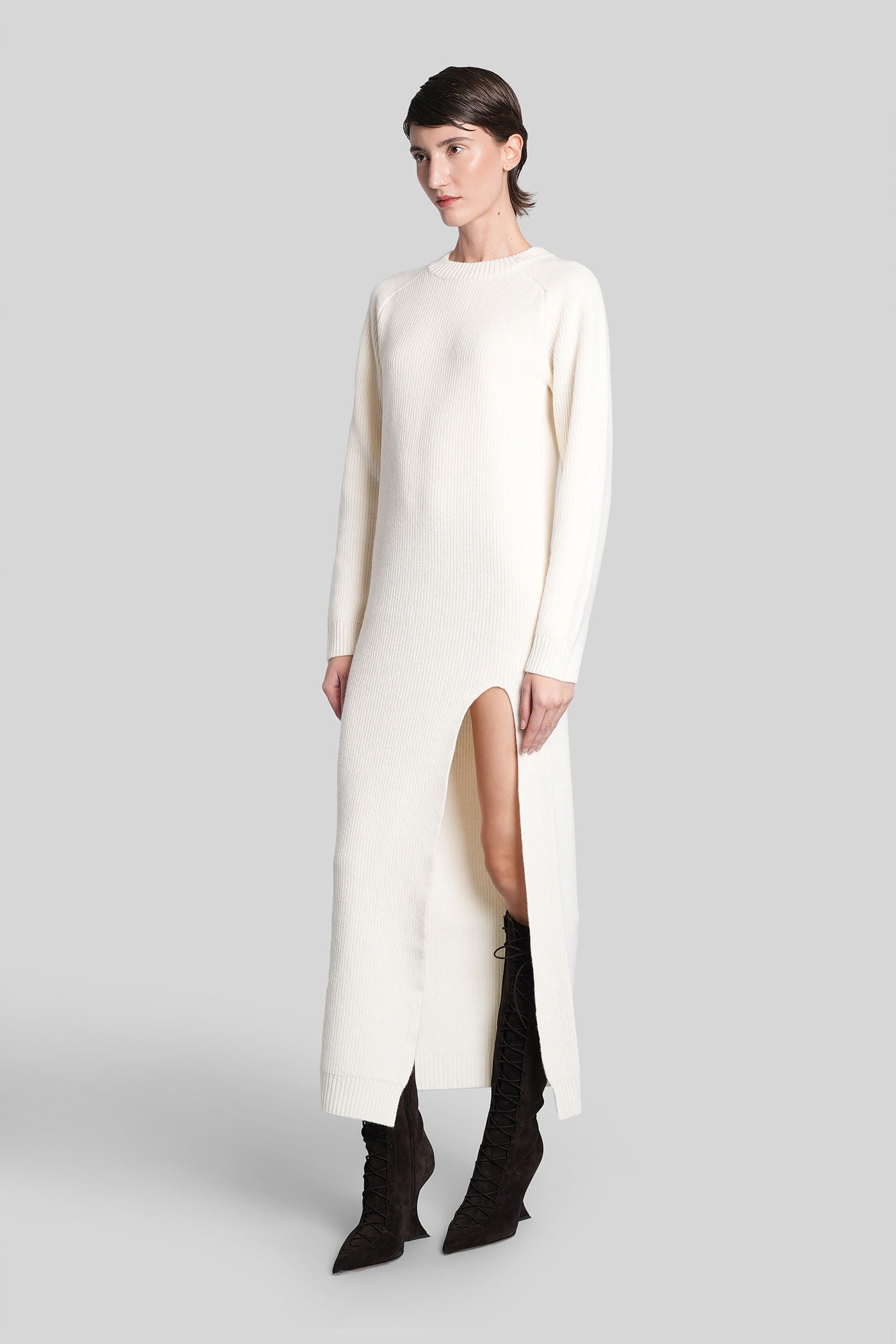Mini dress in beige wool