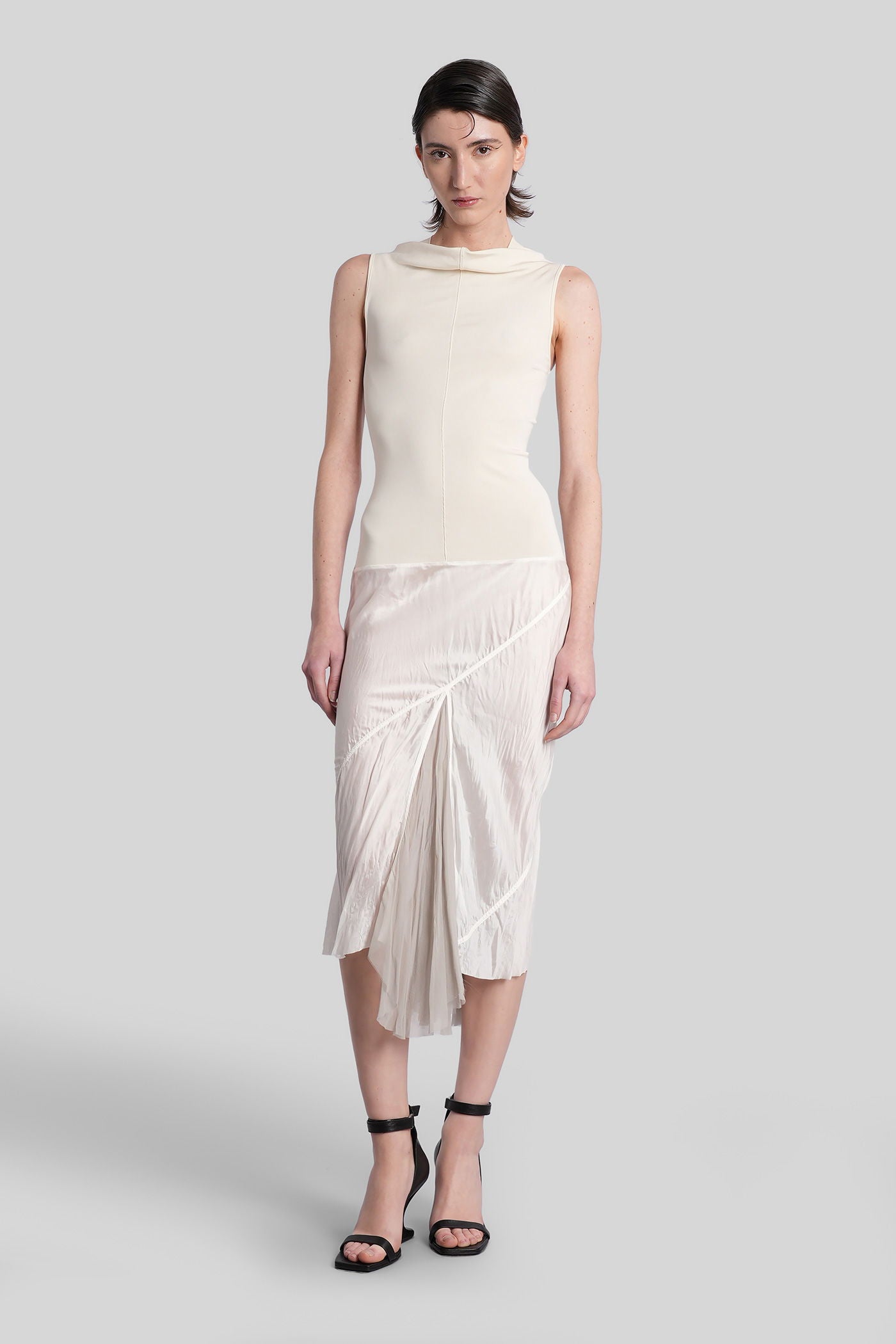 Sliced dress Long dress in beige viscose